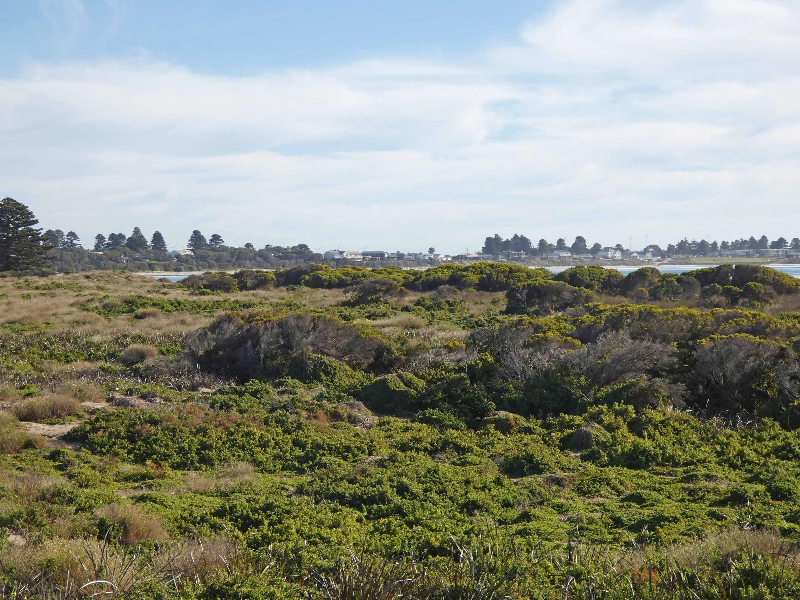 Am Morgen sind wir durch Port Fairy zur Griffiths Island, eine Halbinsel, gelaufen. Es hat in Port Fairy noch einige Häuser von der ersten Hälfte des 19. Jahrhunderts, aber auch von der ersten Hälfte des 20. Jahrhundert. Die Häuser sind in der Regel ein- oder höchstens zweistöckig. So bekommt der Ort eine gewisse Behäbigkeit.