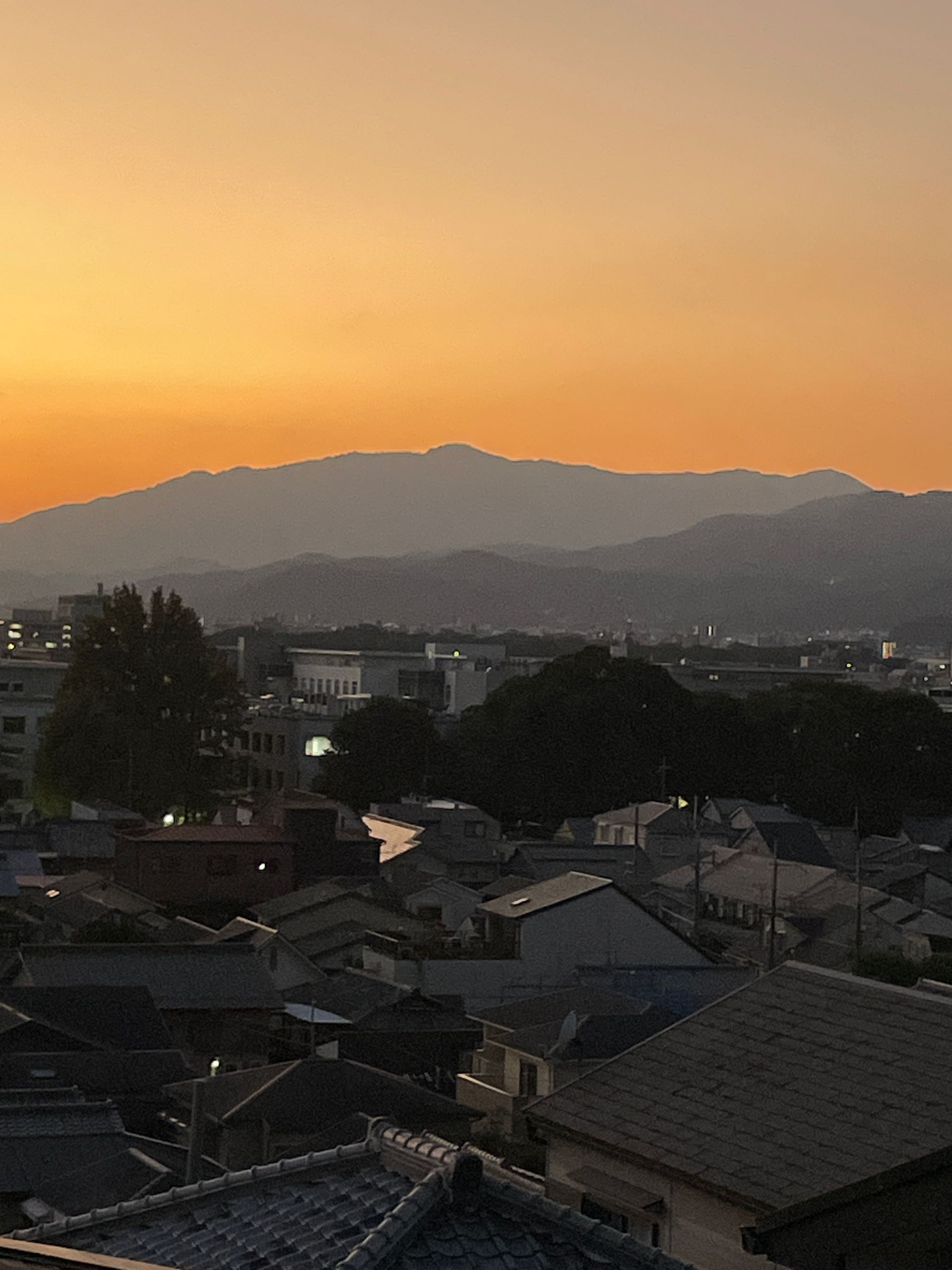 Ich bezog das Eckzimmer vorne im ersten Stock, in dem 2018/19 Johnny gehaust hat. Dieses Zimmer hat die beste Aussicht auf die herrlichen grünen Berge um Kyoto, es ist 6 Tatamis groß, hat nicht schließende Schiebefenster und außer einem flachen Tisch, dem Futon und einer elektrischen Wärmematte darunter und einem Wandschrank keine weitere Einrichtung. Auch alles andere im Haus ist unverändert, was mich sehr erfreut.