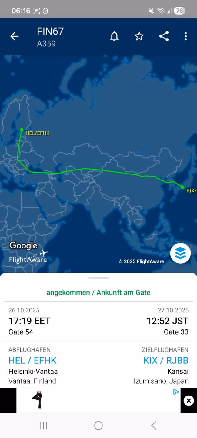 Das ganze Flugzeug war übrigens zur Hälfte mit Japanern und zur anderen mit deutschen Passagieren gefüllt, wahrscheinlich ist die Stecke über Helsinki noch immer günstig.