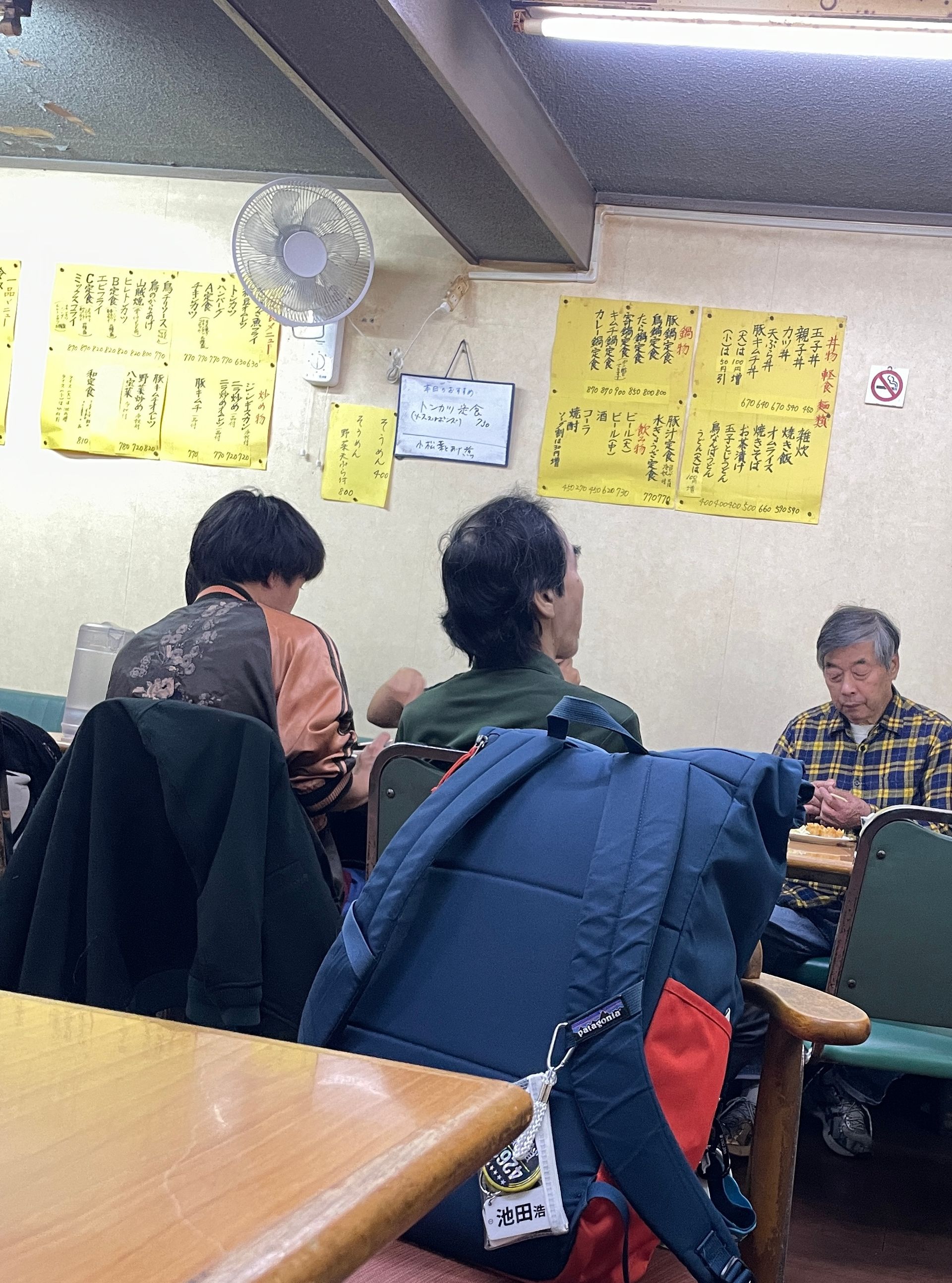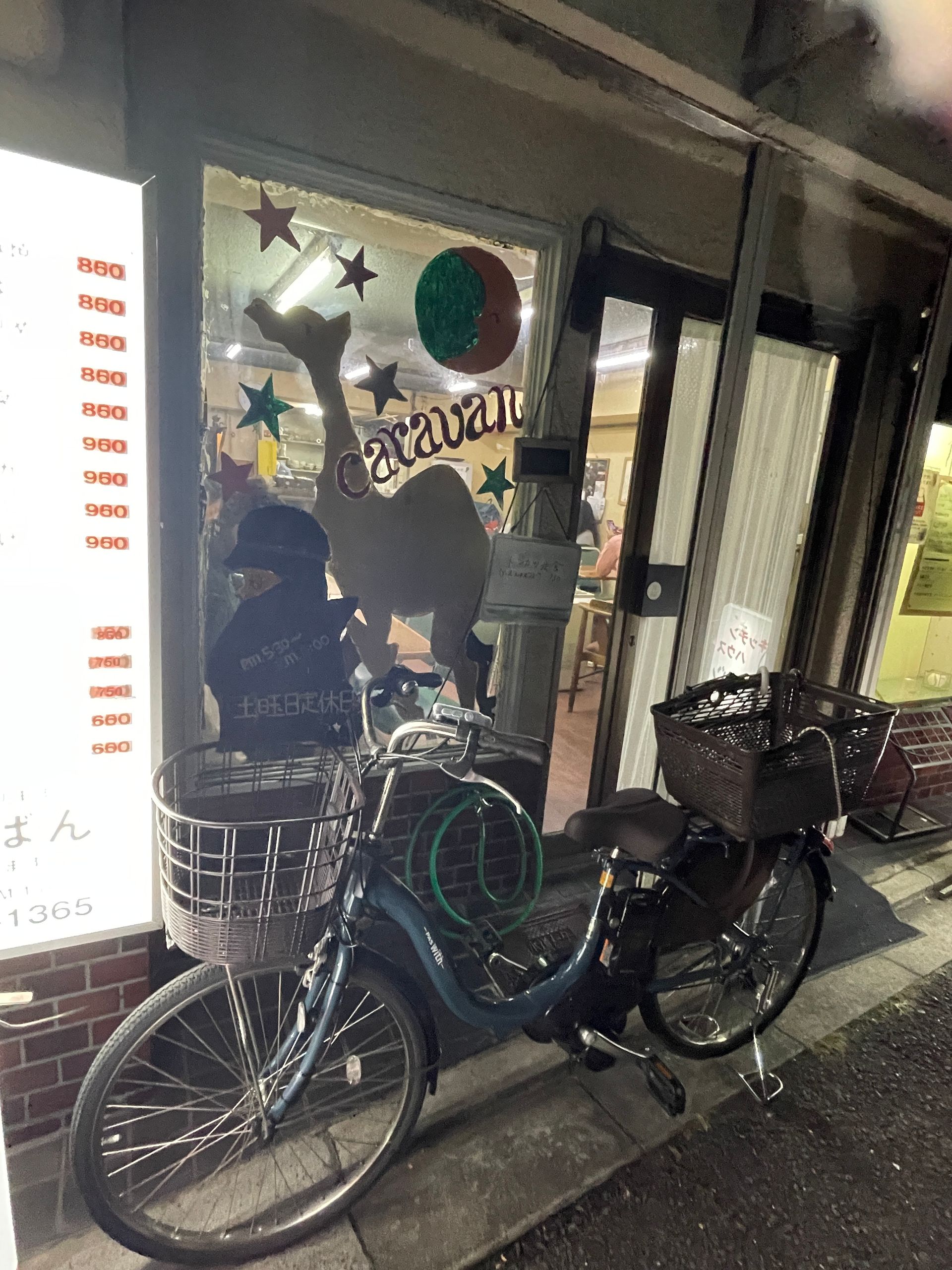 Den Rest des kurzen Tages (es wird schon gegen fünf dunkel) verbrachte ich mit einem Rundgang durch die nähere Nachbarschaft, um zu gucken, welche Lokale und Geschäfte noch da sind. Unser kleines Sento (heiße Bäder) um die Ecke werde ich morgen besuchen, der Konvini-Laden um die Ecke ist leider geschlossen, auch das Restaurant, wo es die guten ausgebackenen Teigkugeln mit Tintenfisch gab und wo der Besitzer Oktopusse in jeder Form und Größe aus allen möglichen Materialien herumzustehen und zu hängen hatte, habe ich noch nicht wiedergefunden, aber mein „Jazz und Whiskey“ mit den unendlich vielen Vinylplatten existiert noch, und in einem unserer Stammlokale, dem Caravan, wo vor allem Studenten und einsame alte Männer herumsitzen und Gegrilltes und Frittiertes zu sich nehmen und wo derselbe alte Wirt noch hinter der Theke steht und strahlt und die Tochter bedient, habe ich dann ein köstliches japanisches Abendessen verspeist mit Omelett, Gyoza, Miso-Suppe, Reis und gegrillter Makrele für insgesamt 4,50€! Ich war total glücklich, dass dieser Ort noch genauso wie vor Jahren aussieht und auch die Stimmung sich nicht verändert hat und bin jetzt richtig froh, dass ich mich getraut habe, wirklich auch alleine nach Japan zu reisen.