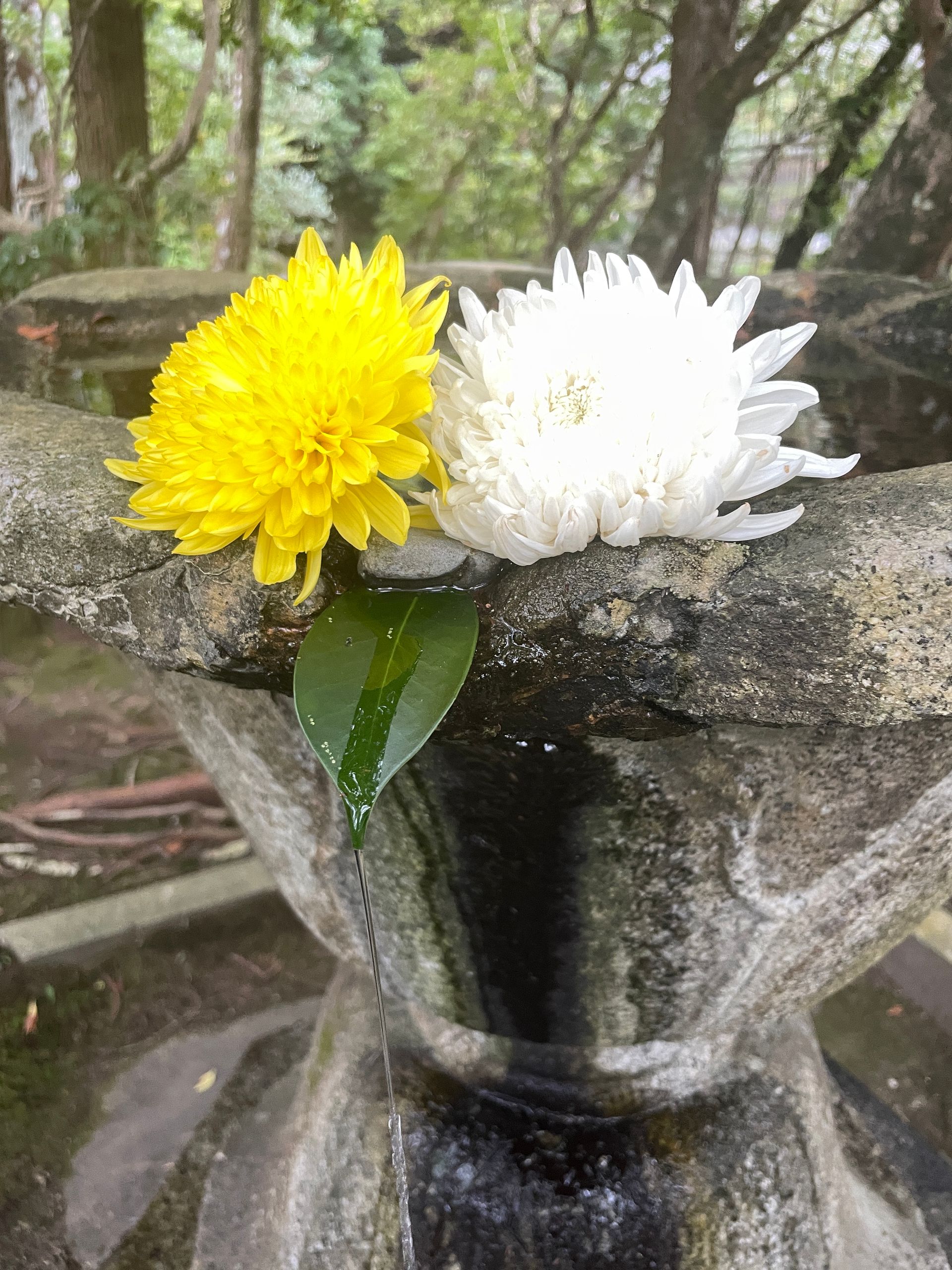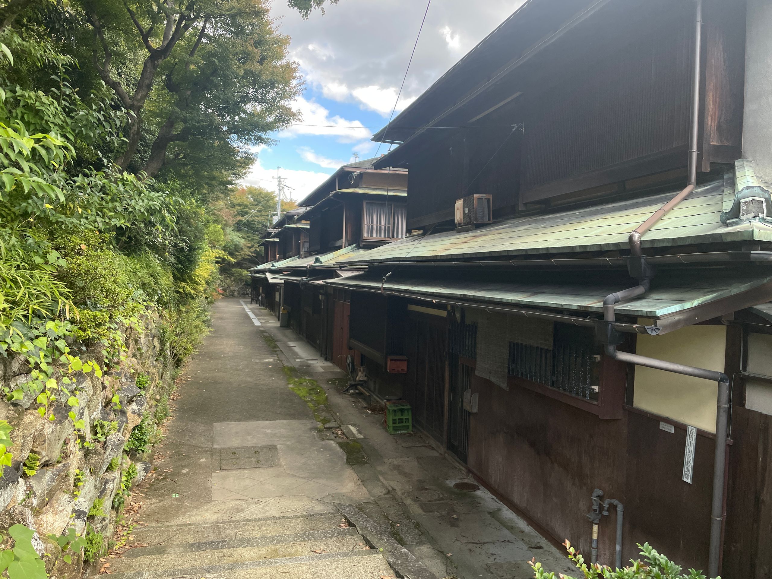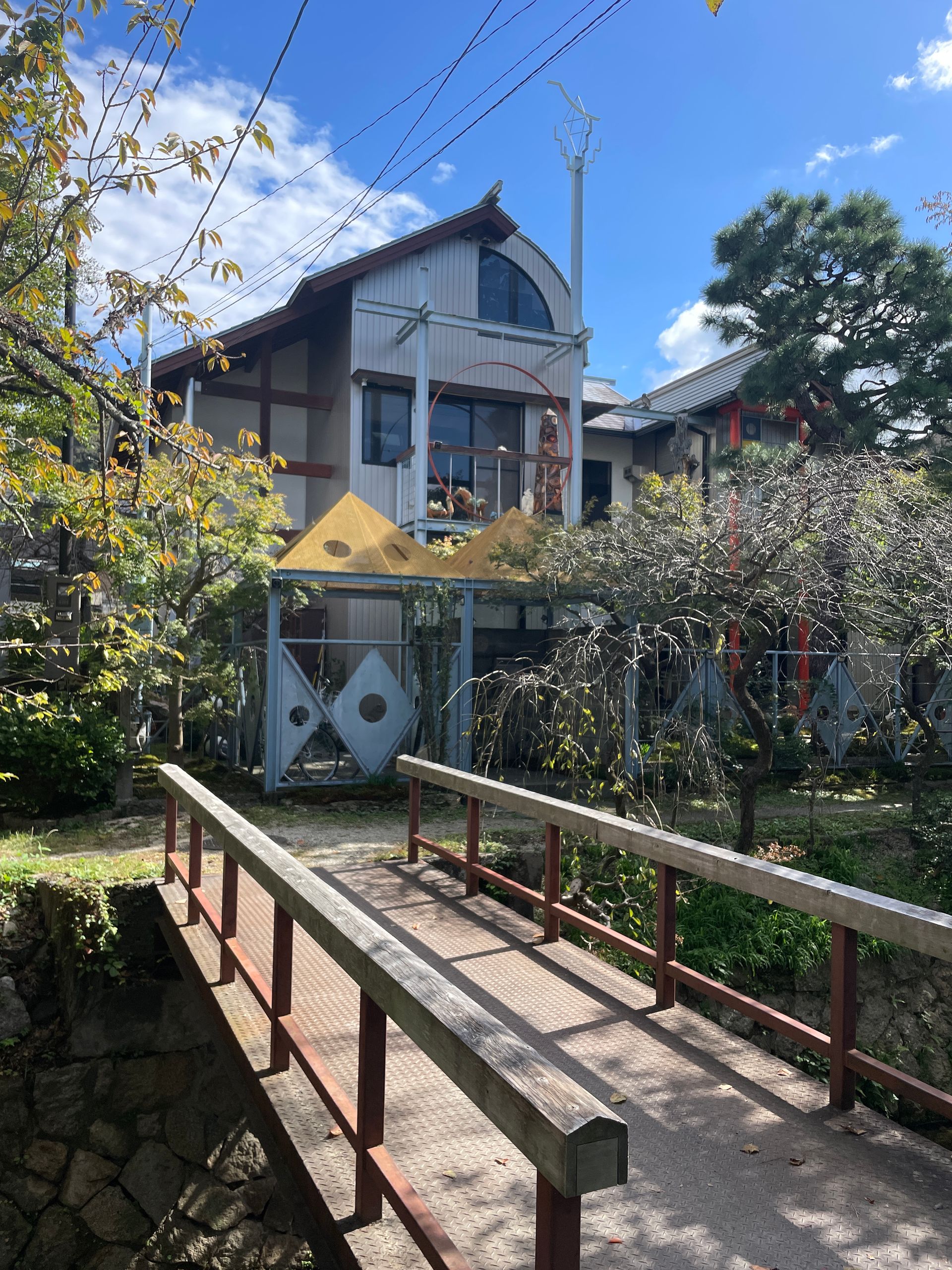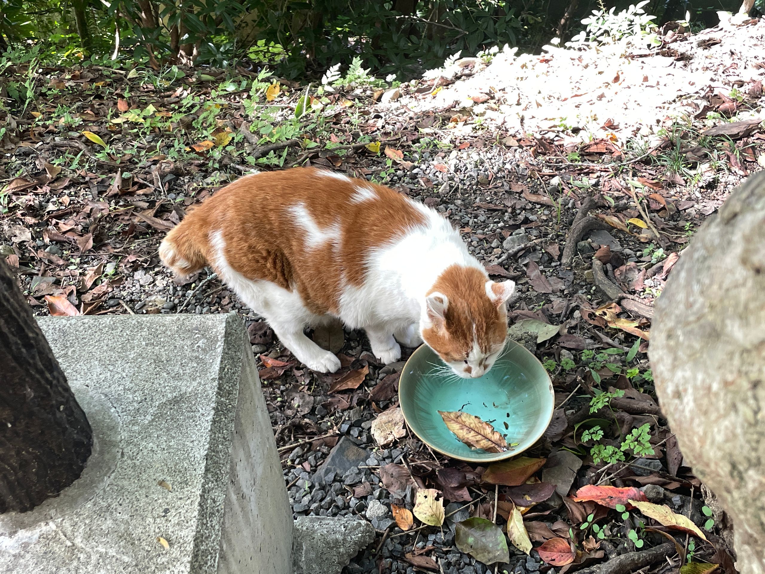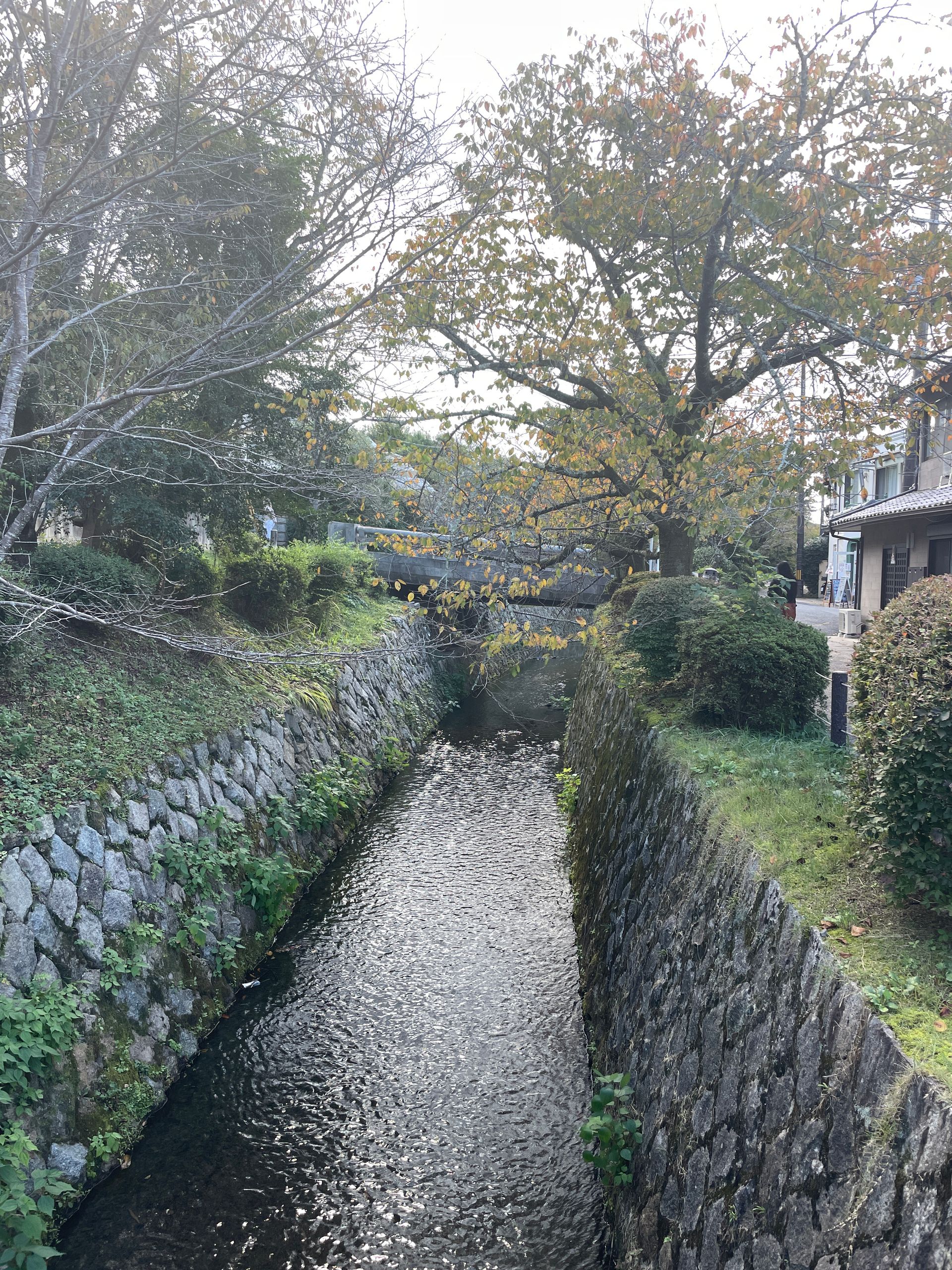 Also gleich nach dem Frühstück mit einem mit Thunfisch gefüllten Onigiri (das ist eine Art dreieckiger Reisball, der mit einem Nori-Algenblatt umwickelt und als Snack gegessen wird) und einer riesigen weichen Bämme, die Melonpan heißt, habe ich mich aufgemacht zum Philosophenpfad, einem der schönsten und märchenhaftesten Orte, die ich in meinem Leben gesehen habe. Ein Kanal mit flachem schnell fließenden glasklaren Wasser mit großen Fischen drin und Enten oben drauf schlängelt sich dahin zwischen alten Ufern voller Kirschbäume, japanischem Ahorn und Rhododendron, Steinbänke, auf denen ich ganze Tage verbringen könnte (und vermutlich werde), alte Maler sitzen zeichnend auf einer der zahlreichen Brücken, jemand spielt leise Musik auf einer Klangtrommel, mit dickem Moos bewachsene Metallrohre liegen zwischen den Ufermauern, mit großen Stachelkronen geschützt, damit keiner auf die Idee kommt, da rüberzubalancieren, Vögel singen trotz fortgeschrittenem Oktober, bunte Schmetterlinge fliegen zwischen den Kamelienblüten umher und riesige Wespen, vielleicht sogar Hornissen, versuchen noch etwas Blütenstaub aus den Rosen zu saugen. Hinter dem Fußweg stehen traumhafte alte dunkelbraune Holzhäuser mit dicken Keramikdächern und unzähligen Winkeln und Ecken. An einer Stelle sammeln sich die streunenden Katzen, denen alle eine Zacke im Ohr fehlt (manchen fehlt auch der halbe Schwanz), was ein Zeichen dafür ist, das Tierfreunde sie eingefangen und sterilisiert haben. Die Katzen sind alle gut genährt und ganz zahm, weil jeden Tag Menschen dort vorbeikommen und ihnen etwas zu fressen mitbringen. Auch ein sauberer Napf Wasser steht dort immer. Eine Dame mit großer Kamera, die dort anscheinend eine regelmäßige Besucherin ist, und ich haben ausgiebig gestreichelt.