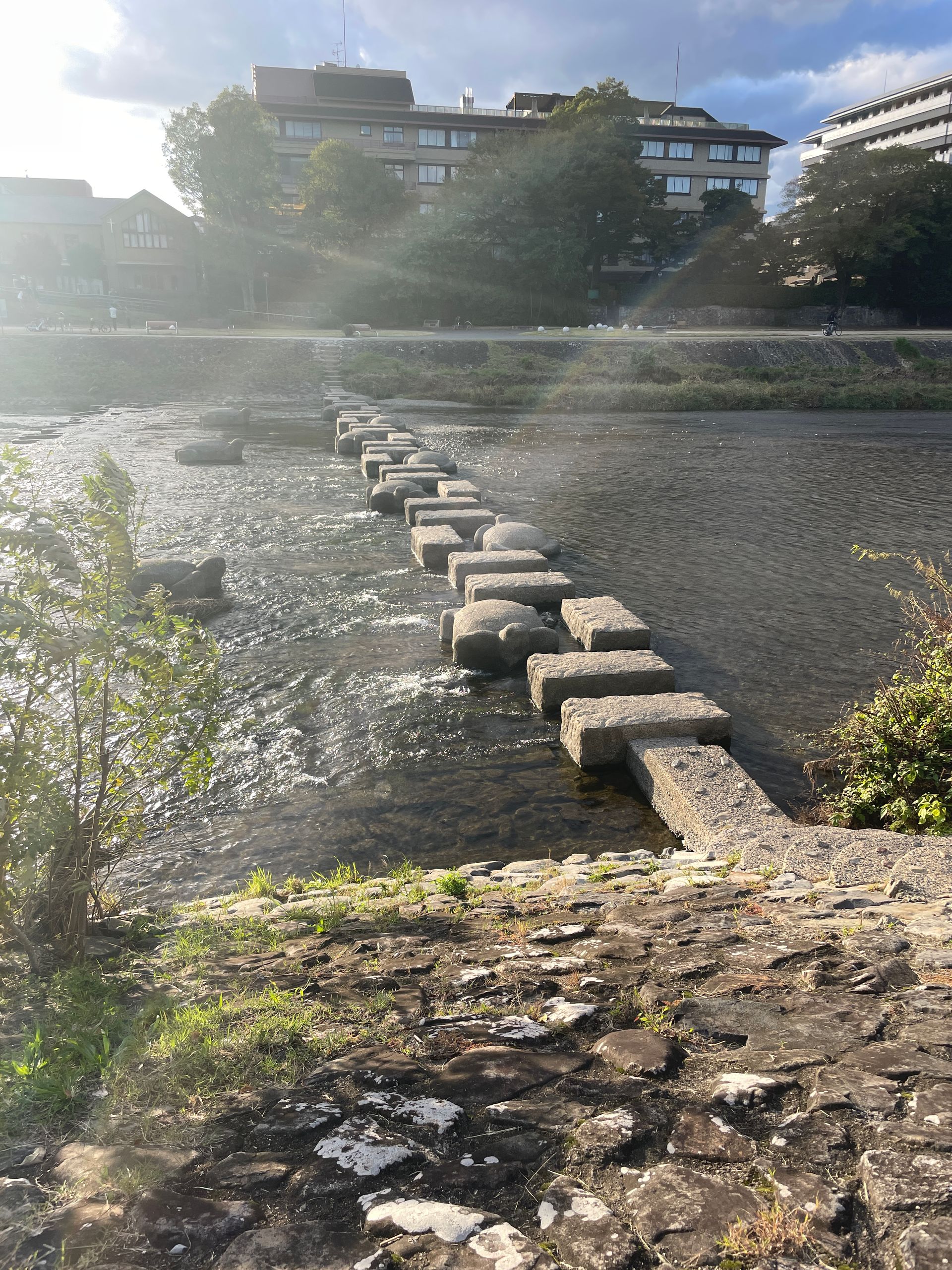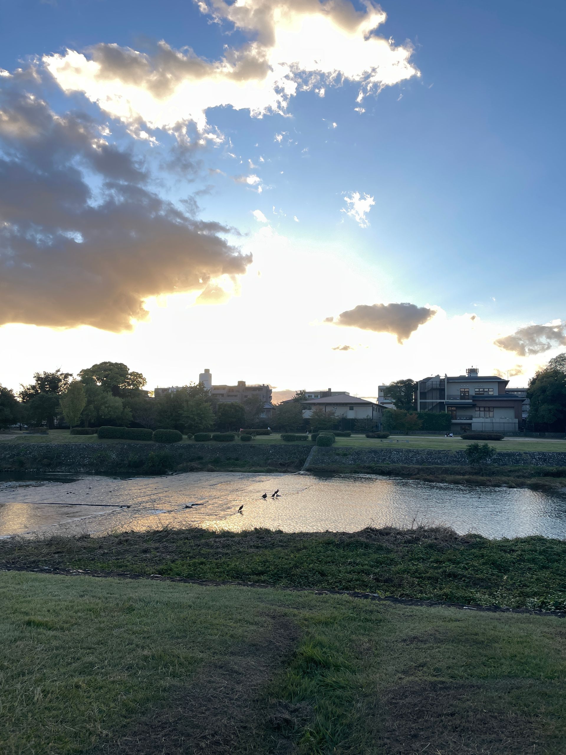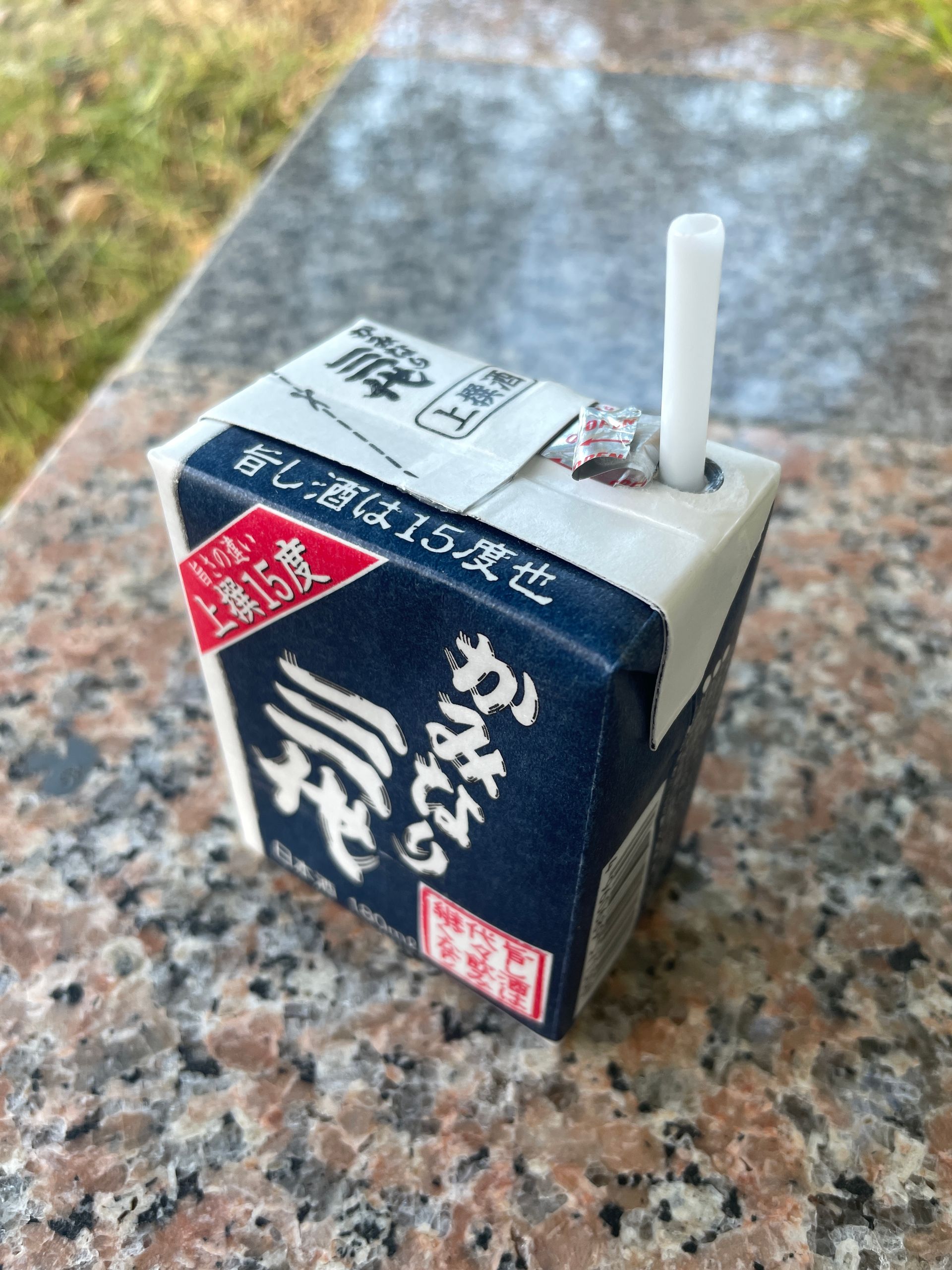 Später am Nachmittag bin ich dann noch an den Fluss gegangen und habe da ein kleines Picknick bei Sonnenuntergang gemacht, aus Nostalgie mit einem kleinen Tetrapack Sake mit Strohhalm, obgleich ich Sake überhaupt nicht mag! Aber das fanden Johnny und ich vor 6 Jahren so komisch, dass wir das ausprobieren wollten. Hat mir immernoch nicht geschmeckt, aber musste sein!