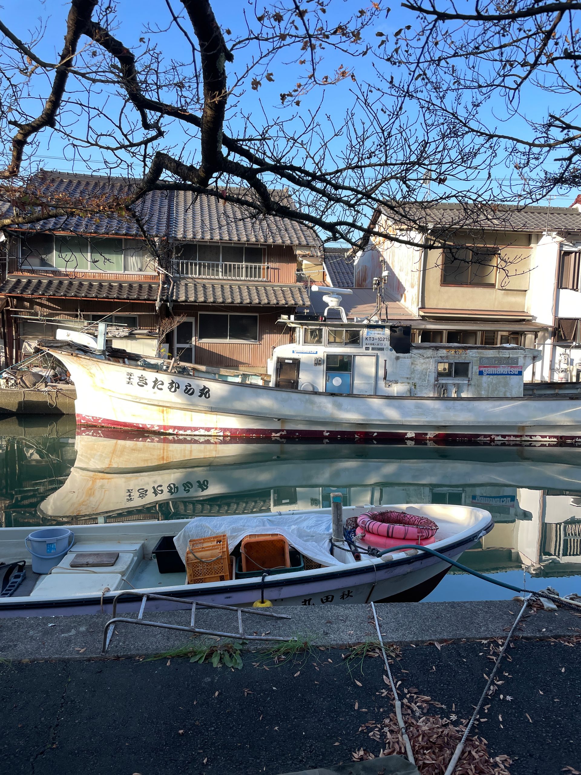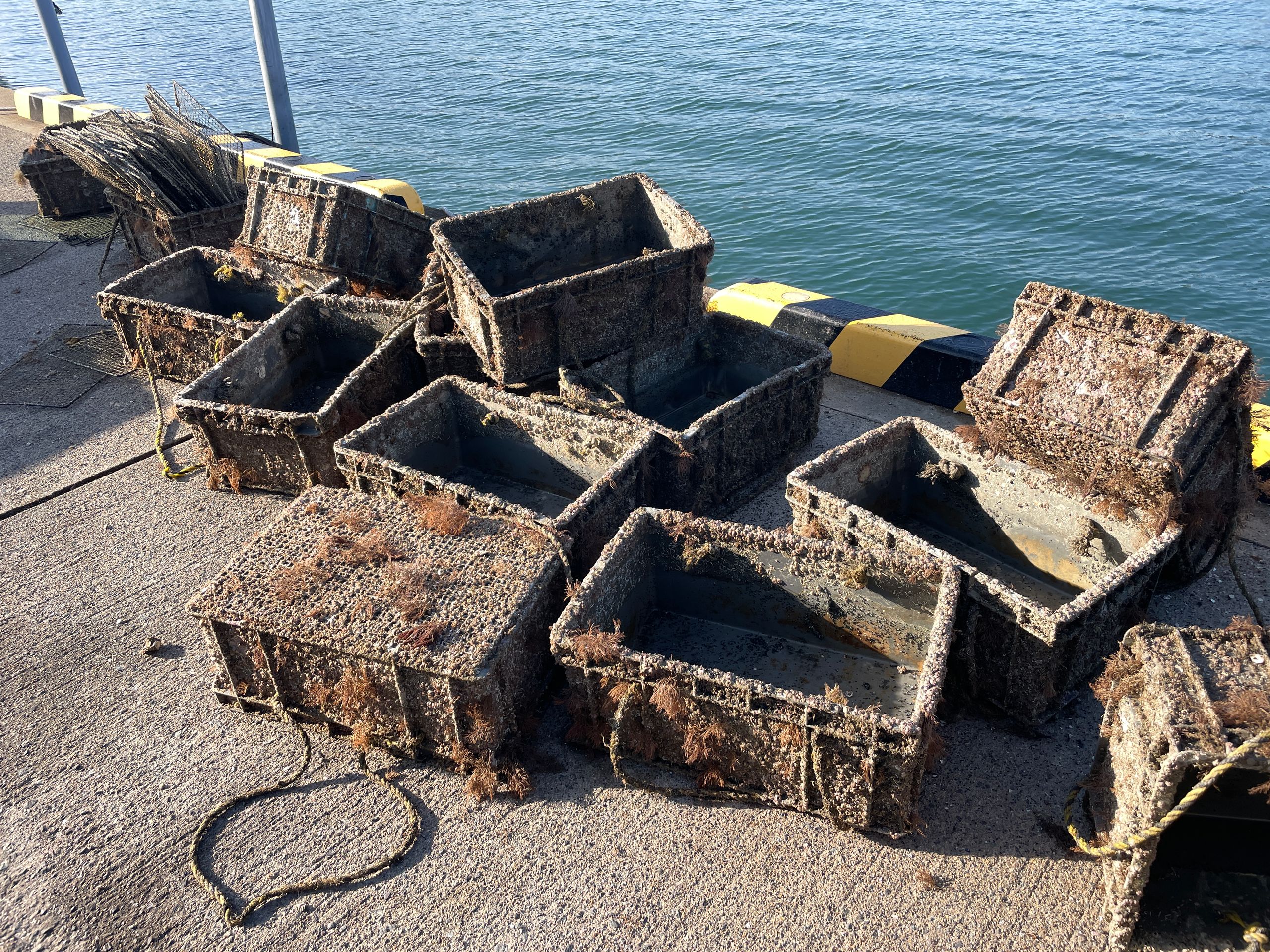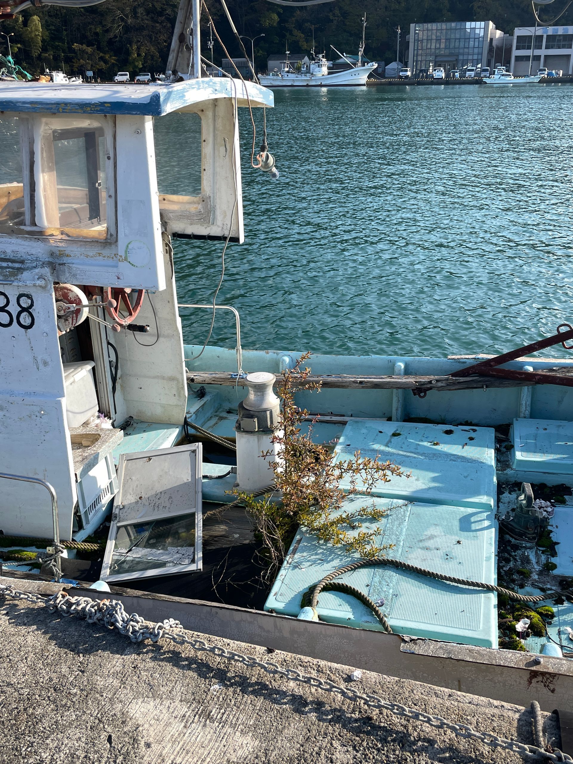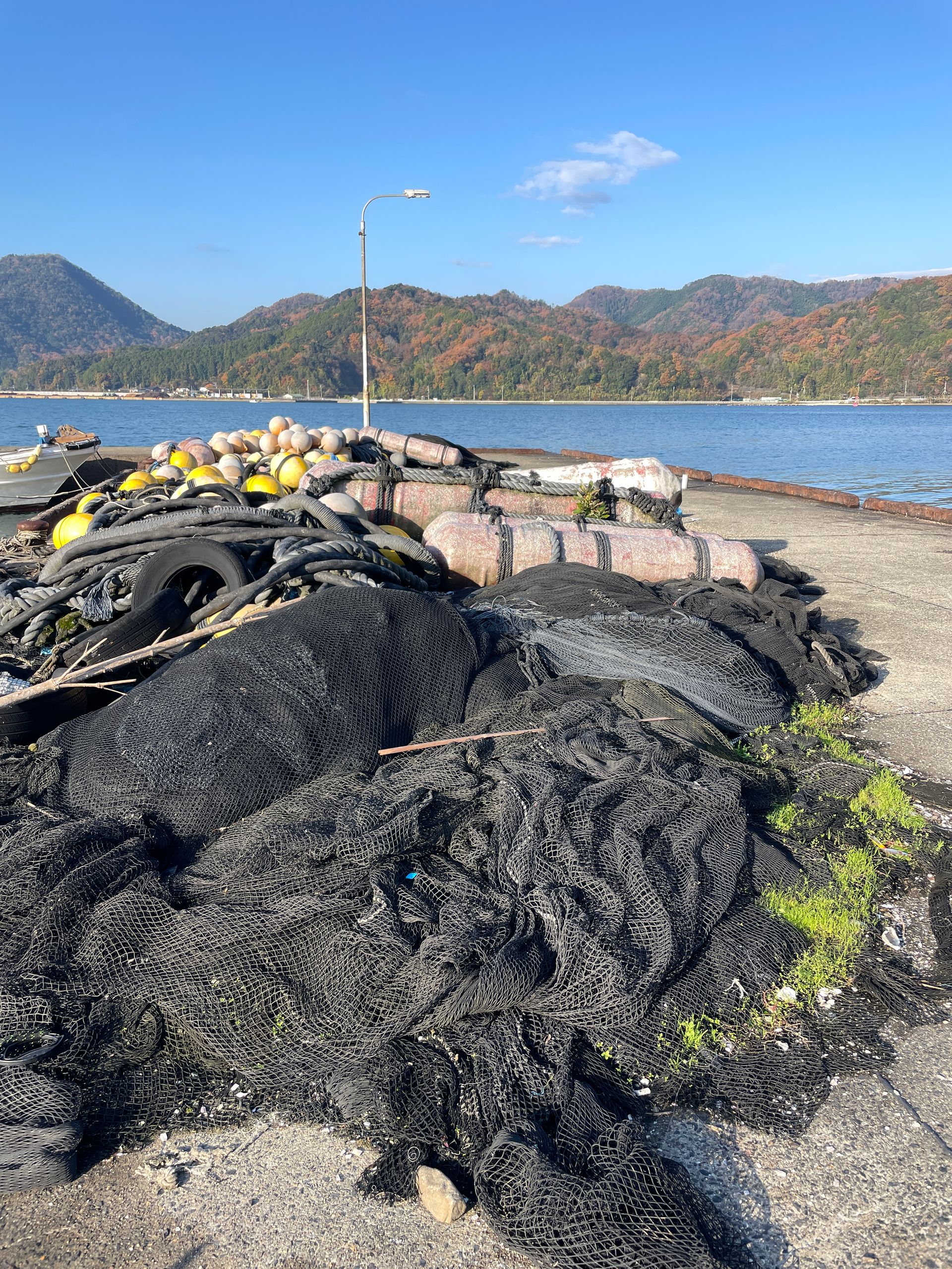Früh am Morgen mache ich einen langen Spaziergang zu dem einen Hafen, der von Fischerbooten, meist kleinen und sehr alten, gefüllt ist, viele Netze und Bojen auf der Hafenmauer, bemooste Kisten und Metallgitter, alles sehr pittoresk. Ich hatte vor, ein Frühstückscafé auf dem Weg zu finden, aber so etwas gibt es hier nicht.