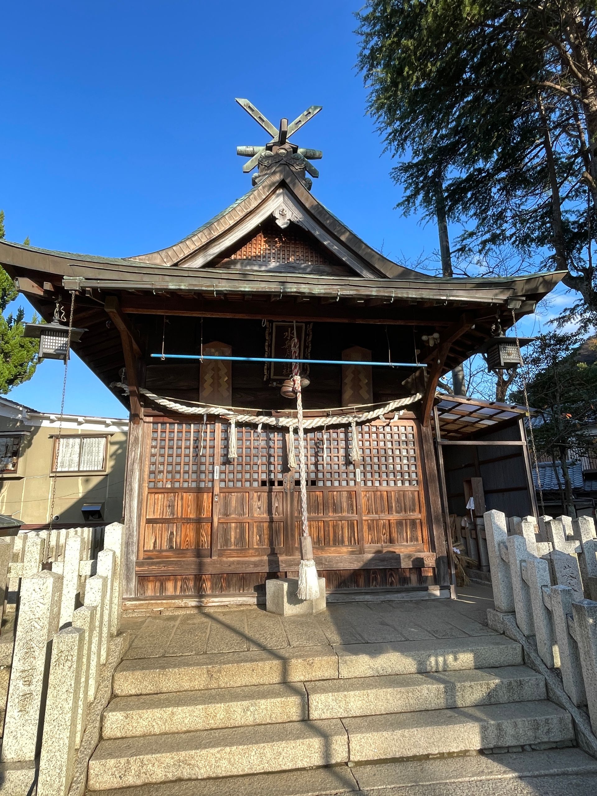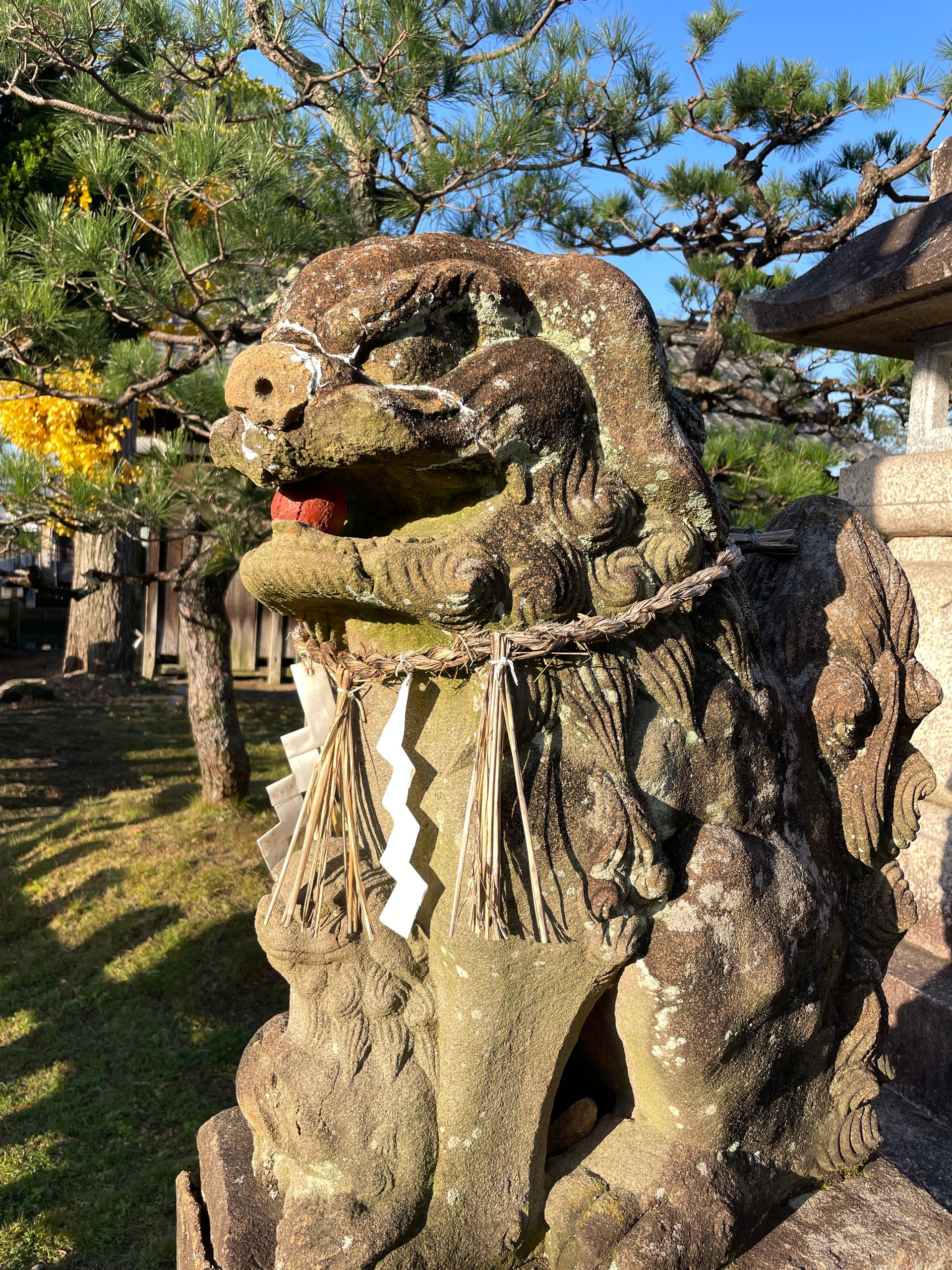 Hier liegt auch ein kleiner versteckter Schrein, und weil nun wirklich niemand in der Nähe ist, wage ich es, das dicke Tau mit Glocken oben dran etwas zu schütteln, um die Götter aufzuwecken, klatsche, wie ich es bei den Japanern beobachtet habe, zweimal in die Hände, um ihre Aufmerksamkeit zu erhaschen, und sende ein kurzes Stoßgebet für unser aller Gesundheit zu den shintoistischen Gottheiten, klatsche nochmal zweimal und verbeuge mich, sieht ja keiner! Irgendwann auf der Reise habe ich auch eine Kerze gespendet, aber das war glaube ich bei den Buddhisten. Kann ja nicht schaden….