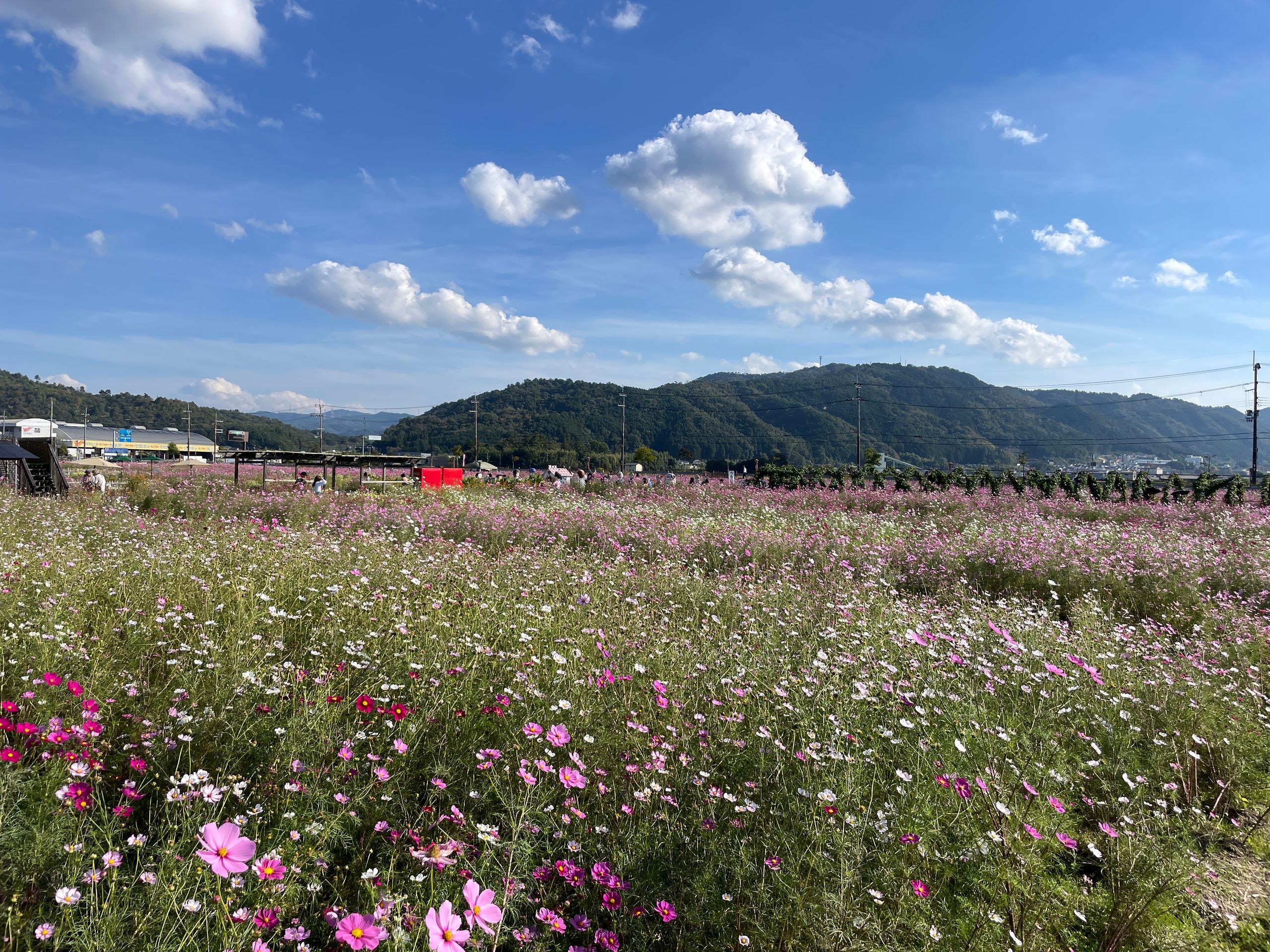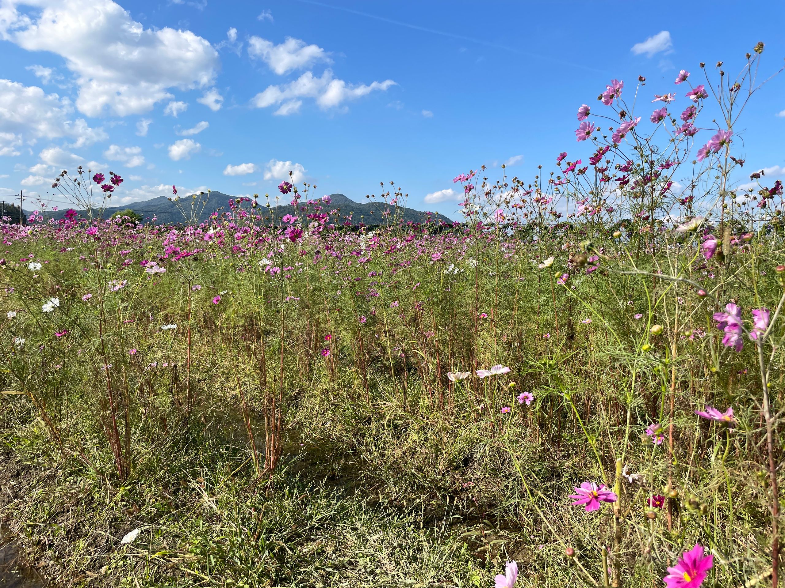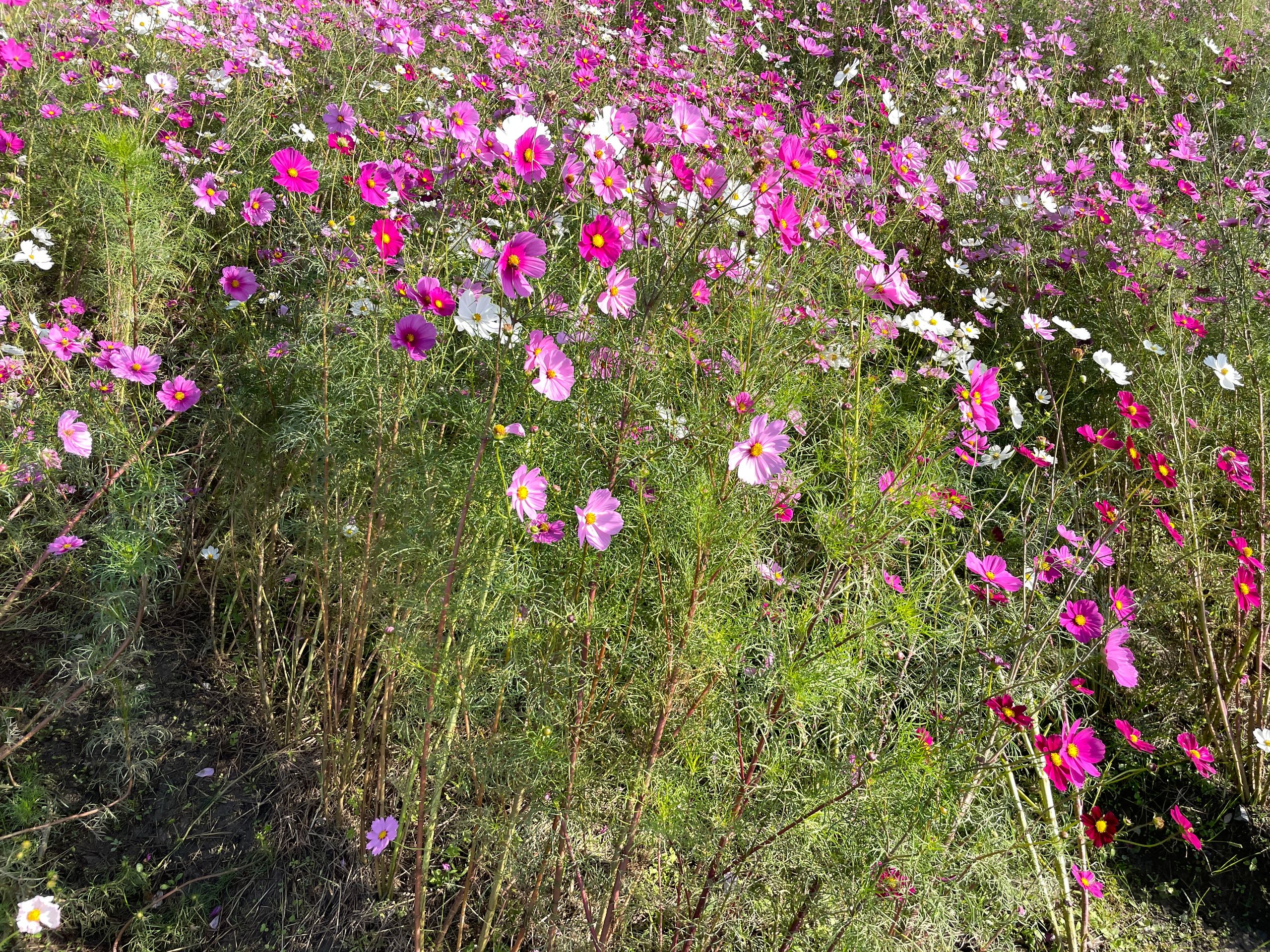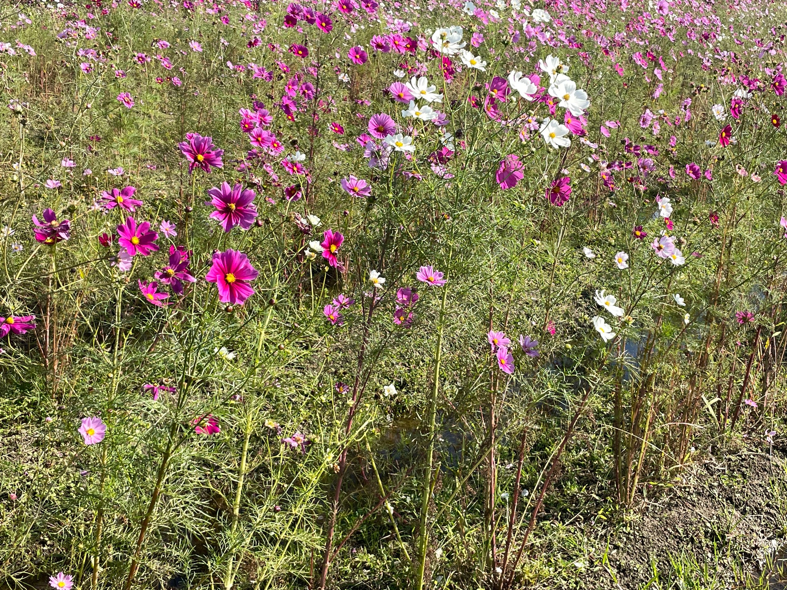 Der Yume Cosmos Flower Garden blüht auf 4,2 Hektar mit ca.8 Millionen Cosmos-Blumen in allen Farben, 20 verschiedene Sorten, es nimmt kein Ende! Aber nur im Oktober. Die Blumen selber sind sehr zart und in dieser leichtfüßigen Masse völlig überwältigend, man schwebt selber ein bisschen über dem Boden.