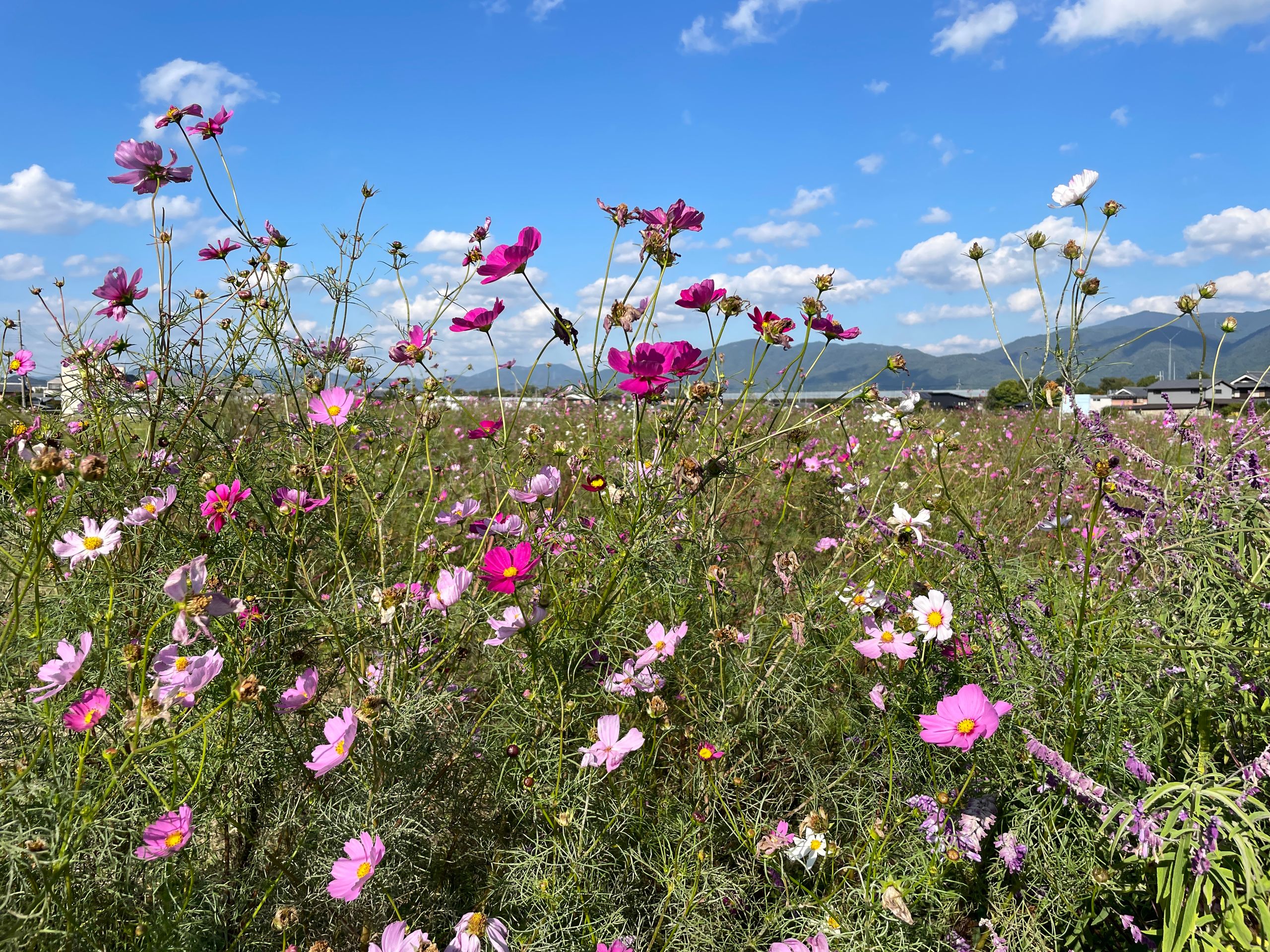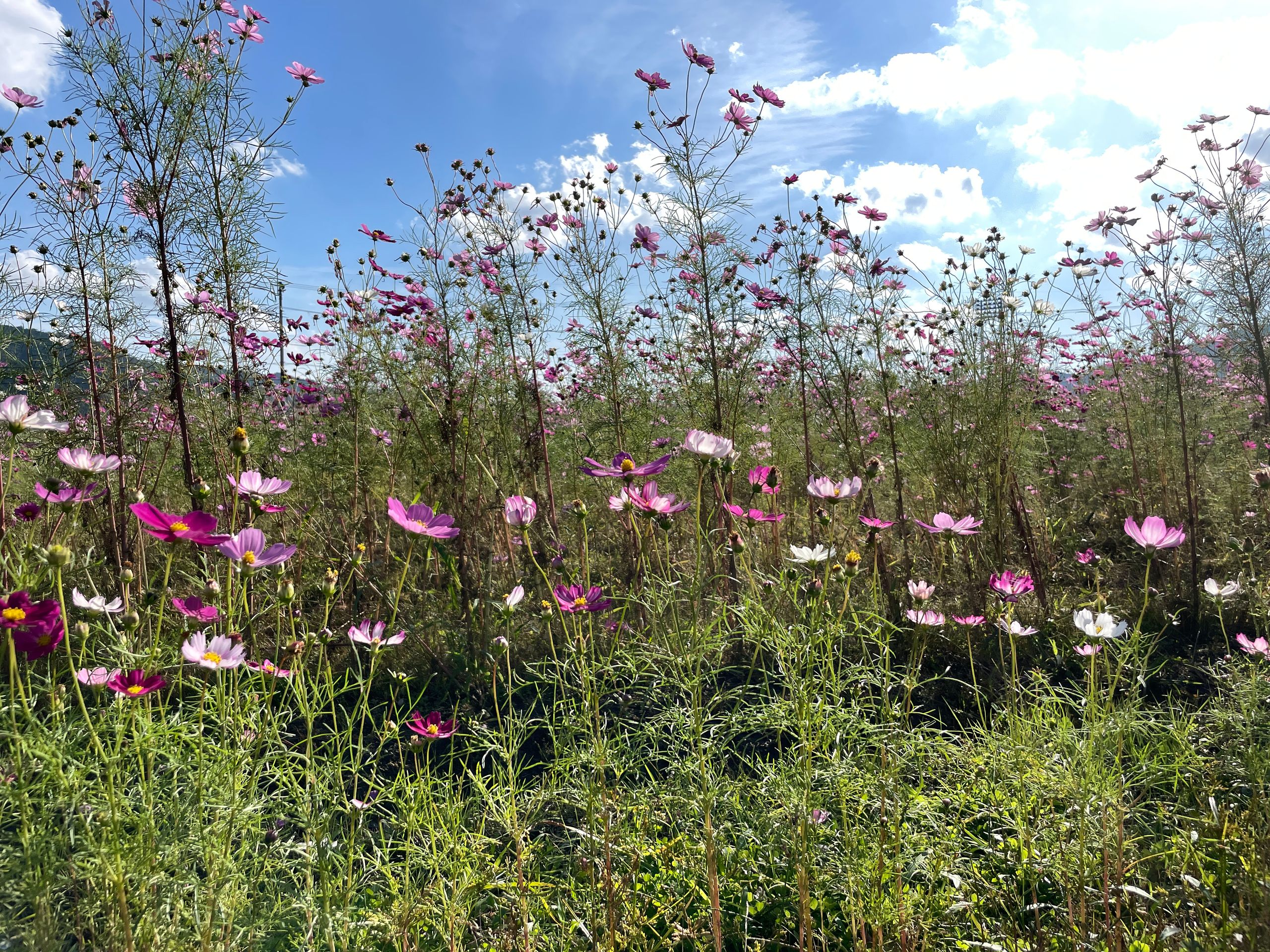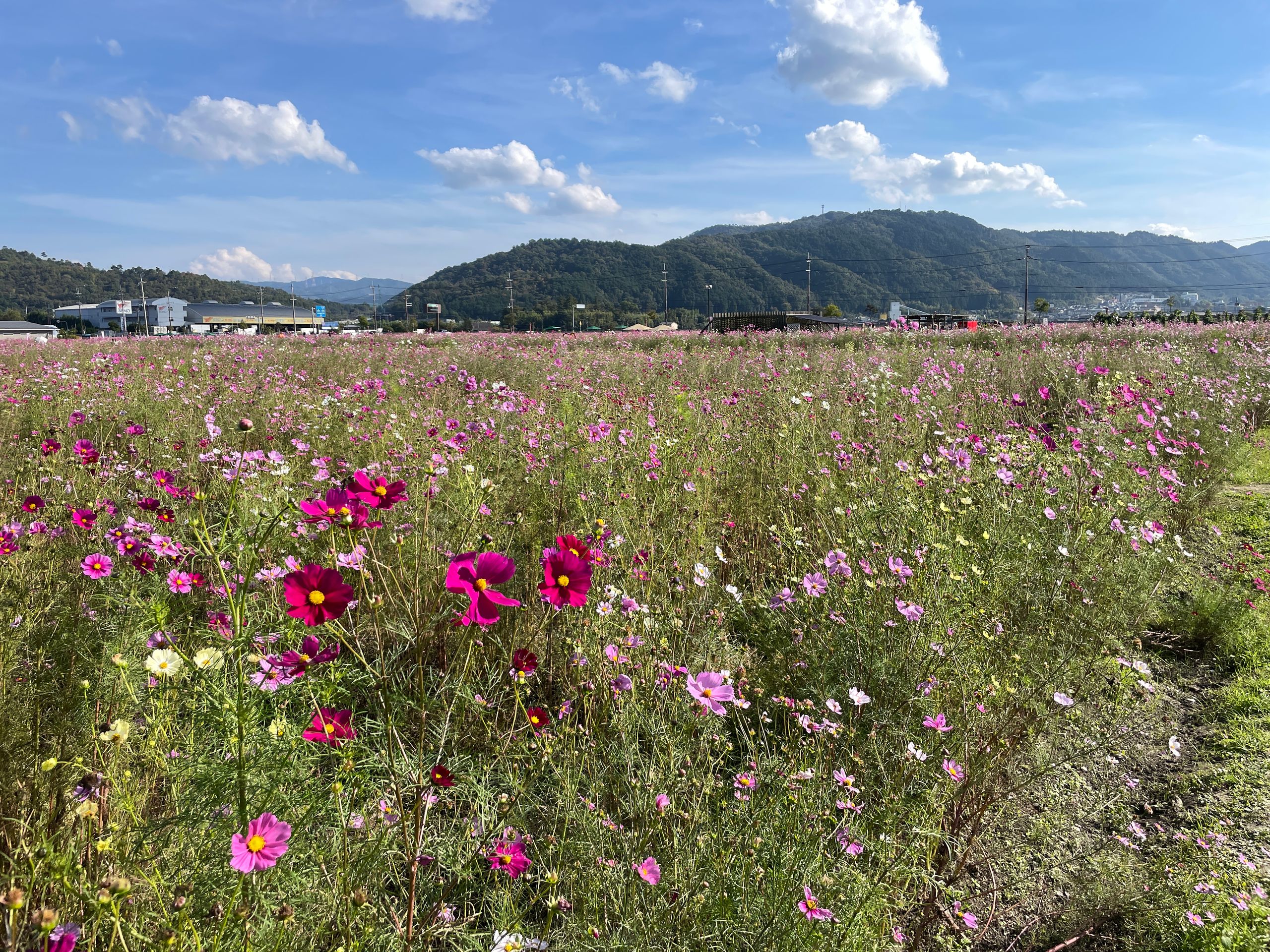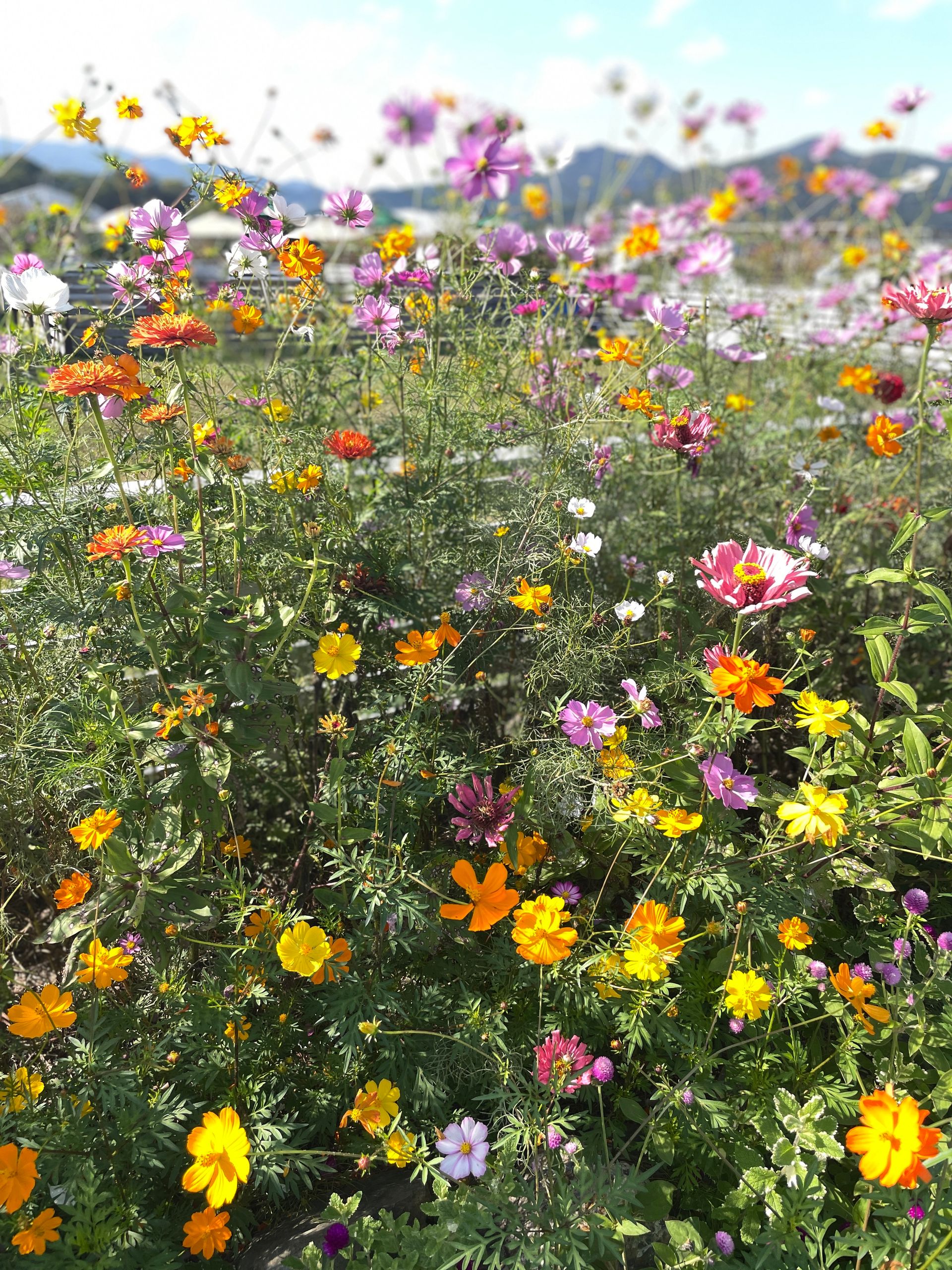 Der Yume Cosmos Flower Garden blüht auf 4,2 Hektar mit ca.8 Millionen Cosmos-Blumen in allen Farben, 20 verschiedene Sorten, es nimmt kein Ende! Aber nur im Oktober. Die Blumen selber sind sehr zart und in dieser leichtfüßigen Masse völlig überwältigend, man schwebt selber ein bisschen über dem Boden.