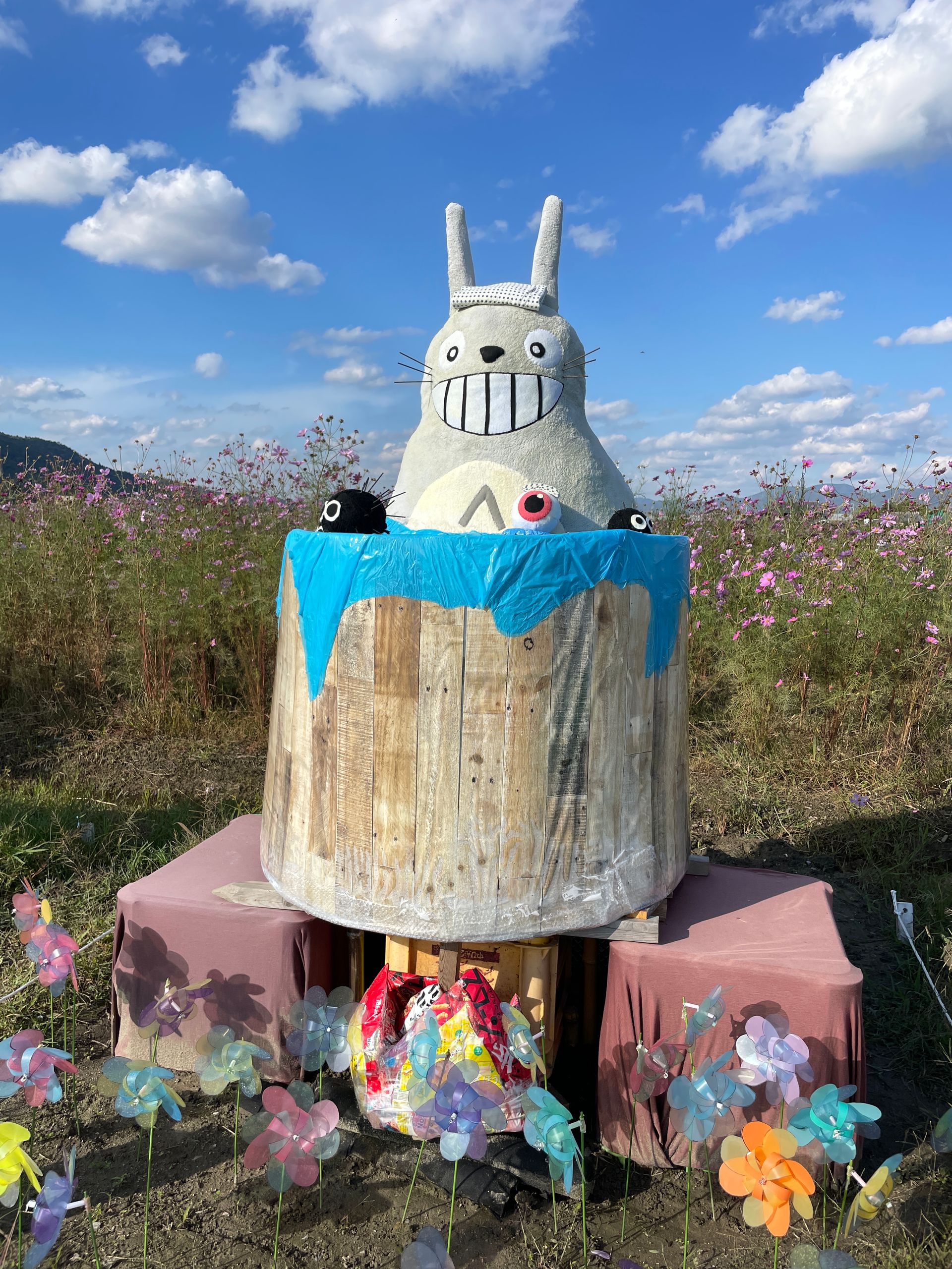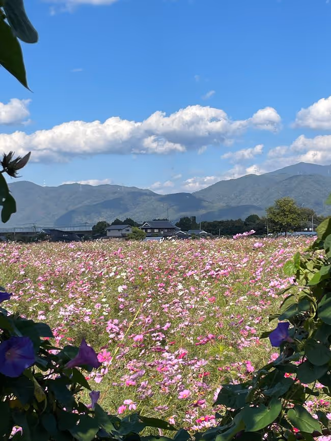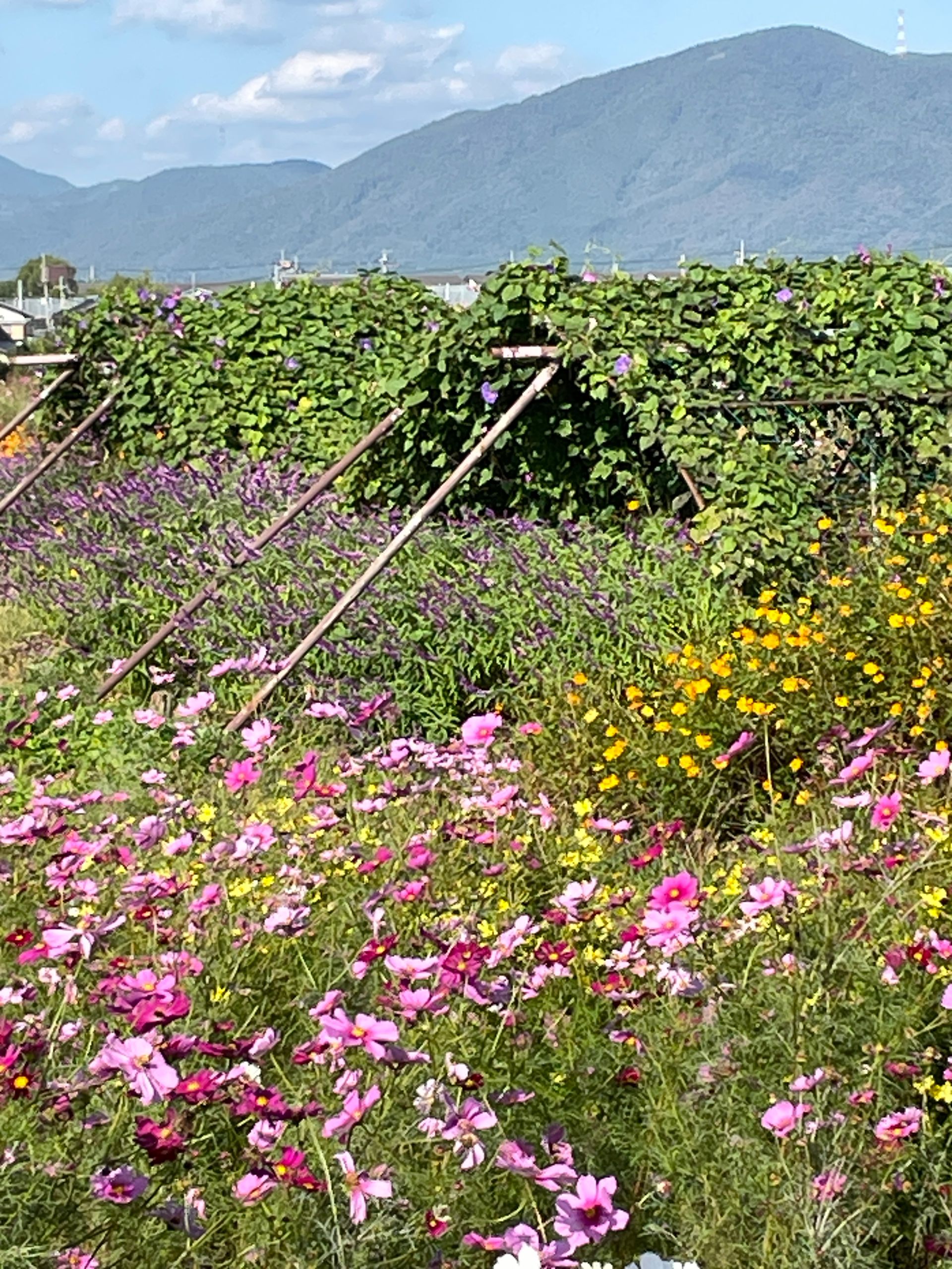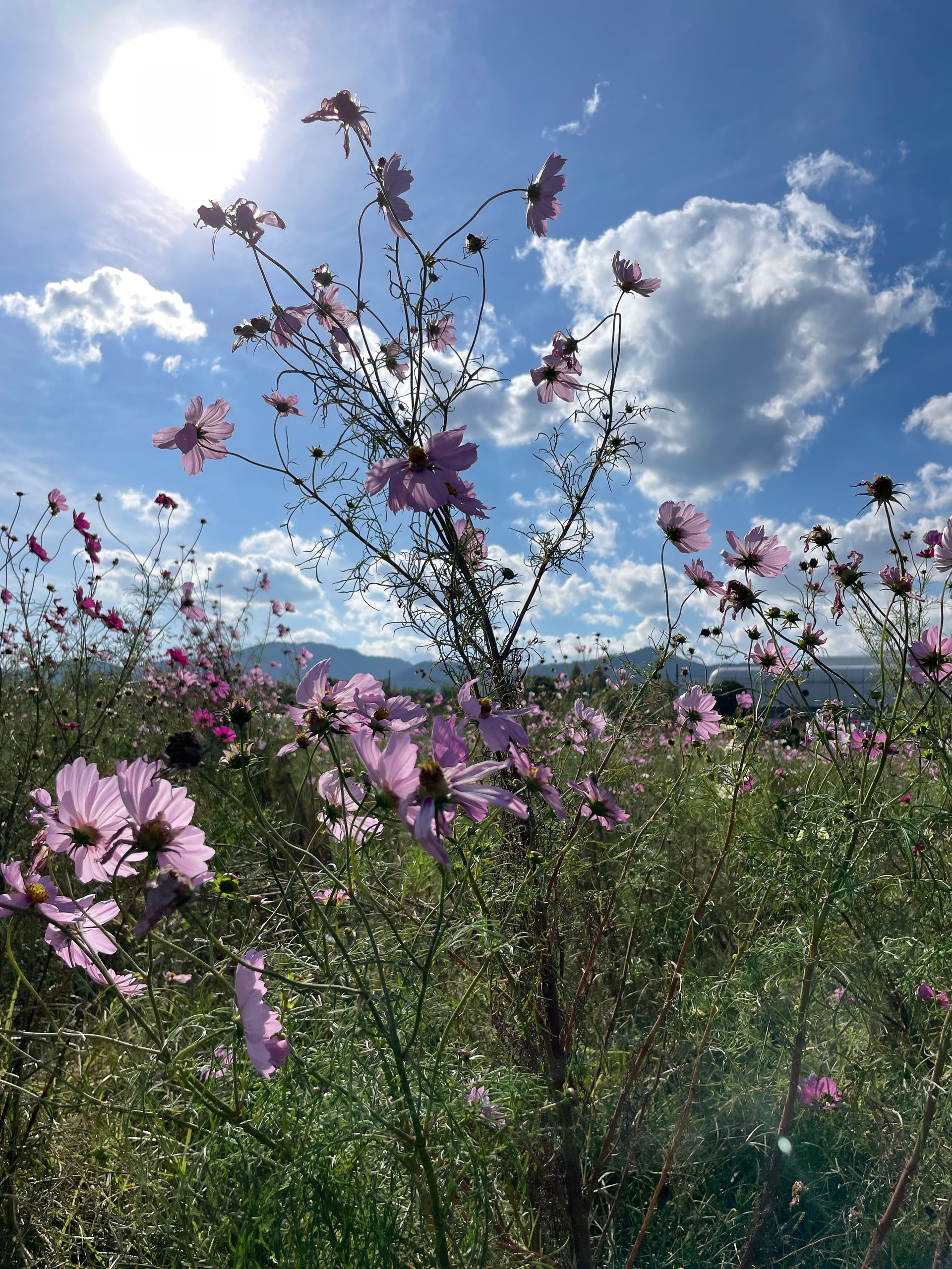Der Yume Cosmos Flower Garden blüht auf 4,2 Hektar mit ca.8 Millionen Cosmos-Blumen in allen Farben, 20 verschiedene Sorten, es nimmt kein Ende! Aber nur im Oktober. Die Blumen selber sind sehr zart und in dieser leichtfüßigen Masse völlig überwältigend, man schwebt selber ein bisschen über dem Boden.