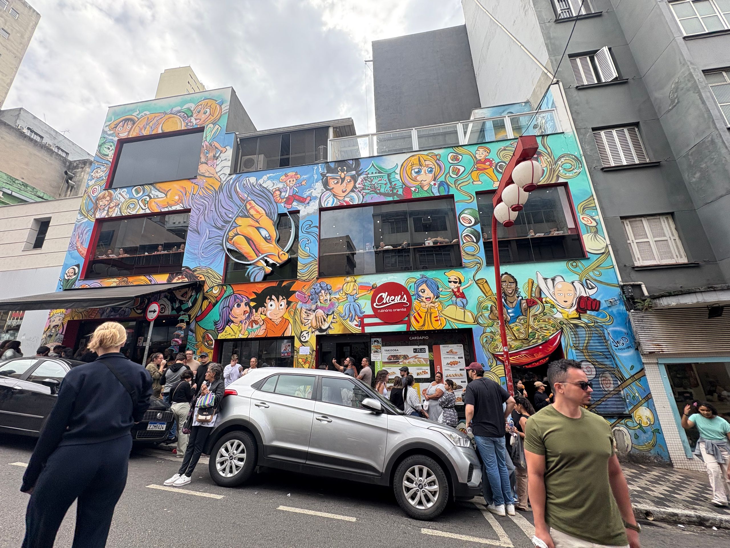 Weil Linchen noch geschlummert hat, bin ich ins Gym gegangen. Später sind wir in die Stadt gefahren zum Beco de Batman, einem sehr schönen Graffiti Viertel mit sehr vielen Künstlern. Anschließend waren wir im Chaos höchst persönlich, das japanische Viertel. Dort gab es sehr leckere Matcha und Cookies. Durch den Tod von Papst waren wir noch fix im Gottesdienst, echt viel los gewesen. Da leider kein Wein ausgeschüttet wurde, sind wir in unsere Unterkunft gefahren. Auf unserer Dachterasse haben wir noch den erhofften Wein getrunken und paar organisatorische Dinge erledigt.