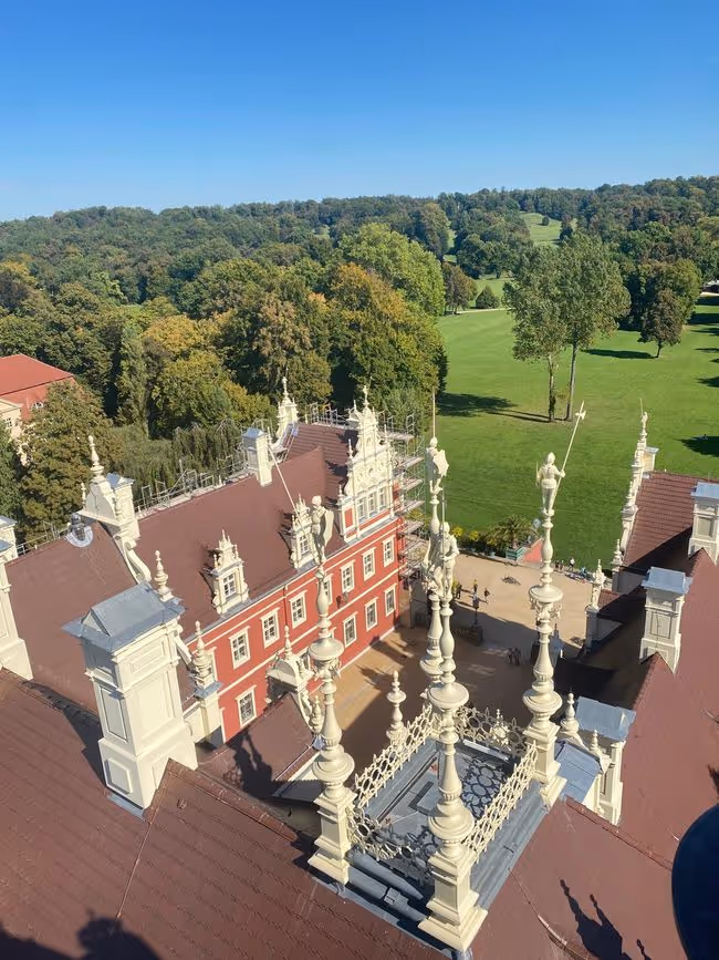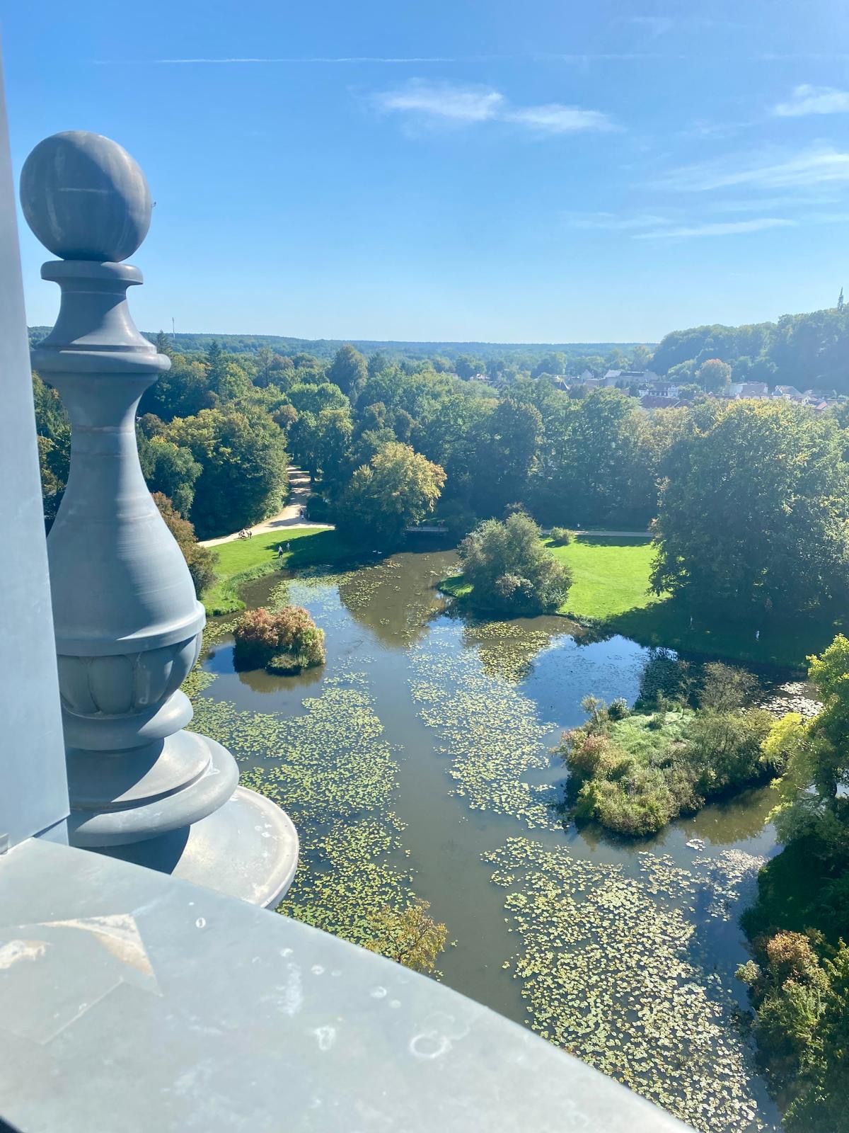 Der Aufstieg auf den Schlossturm ist nichts für schwache Waden. 125 Stufen, eng und steil – aber oben wartet die Belohnung: ein Blick über die Parkanlage, der einem kurz den Atem raubt. Nicht nur wegen der Höhe, sondern wegen der schieren Größe und Schönheit des Parks.