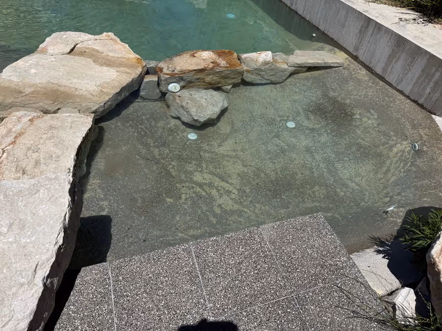 Wir haben tatsächlich einen Bereich, den ich nicht so recht interpretieren kann. Sollte das mal ein Whirlpool werden? Oder vielleicht doch eher ein Planschbecken für Kinder? Oder so eine Art "Ruhebereich"?
