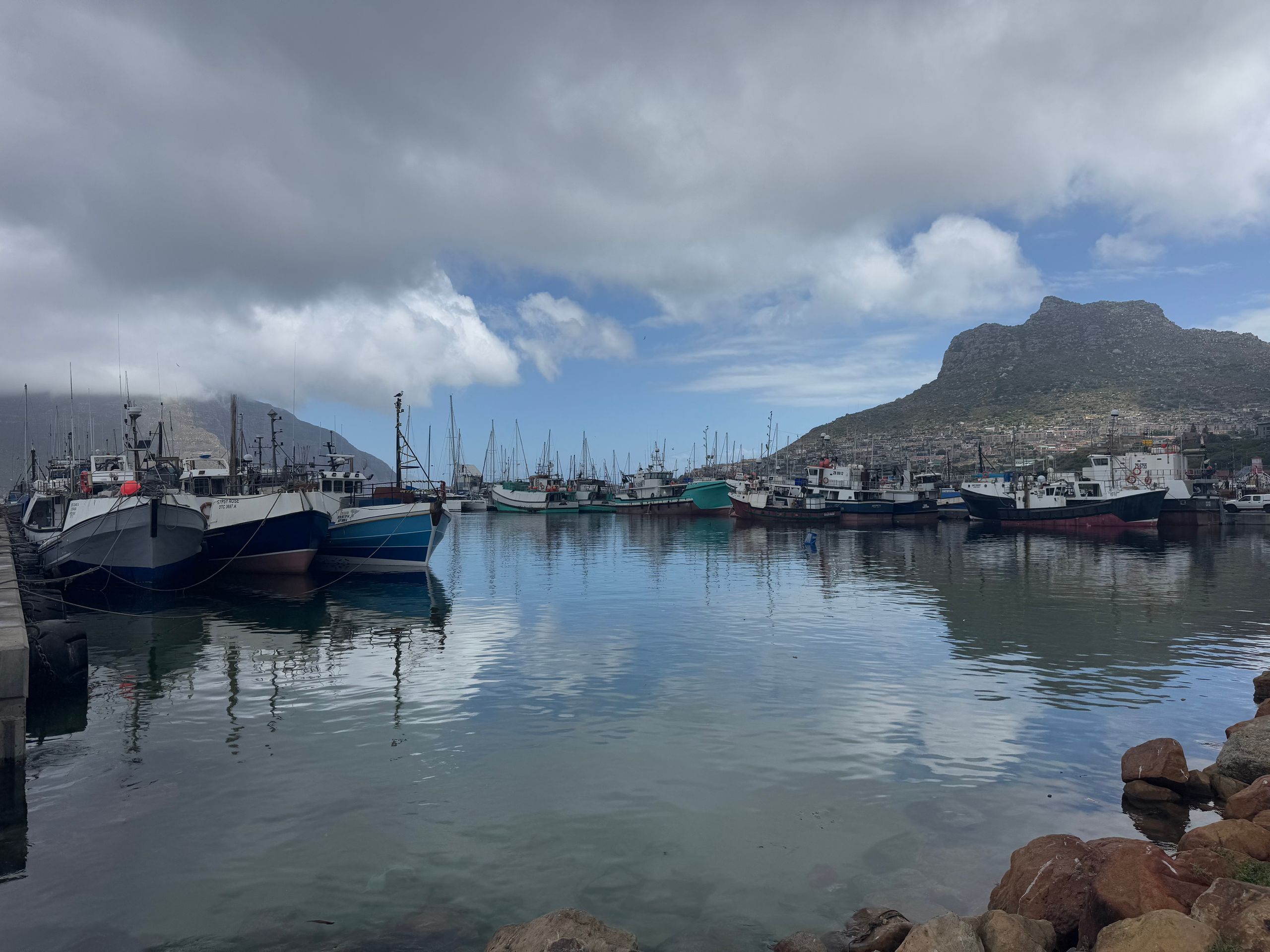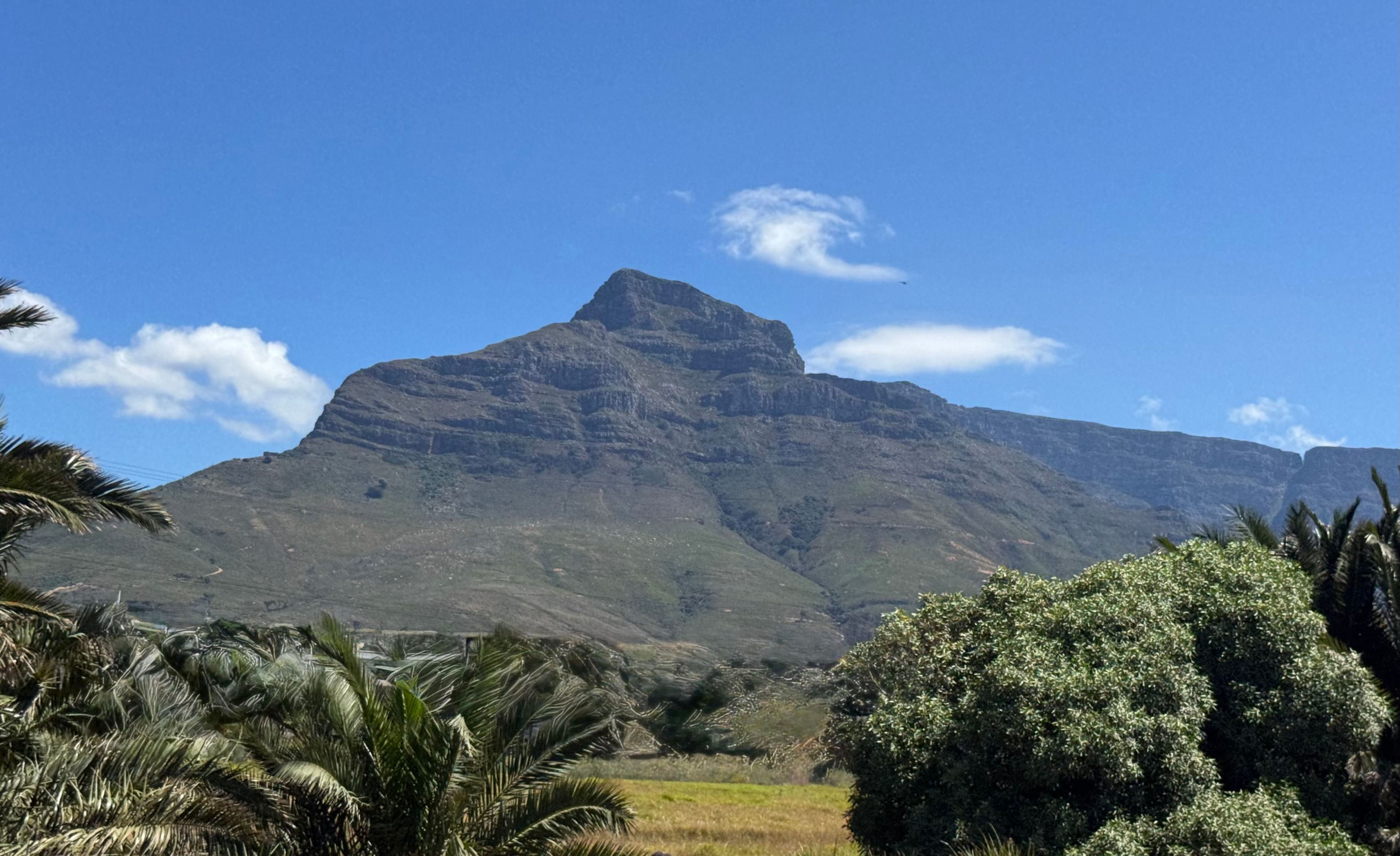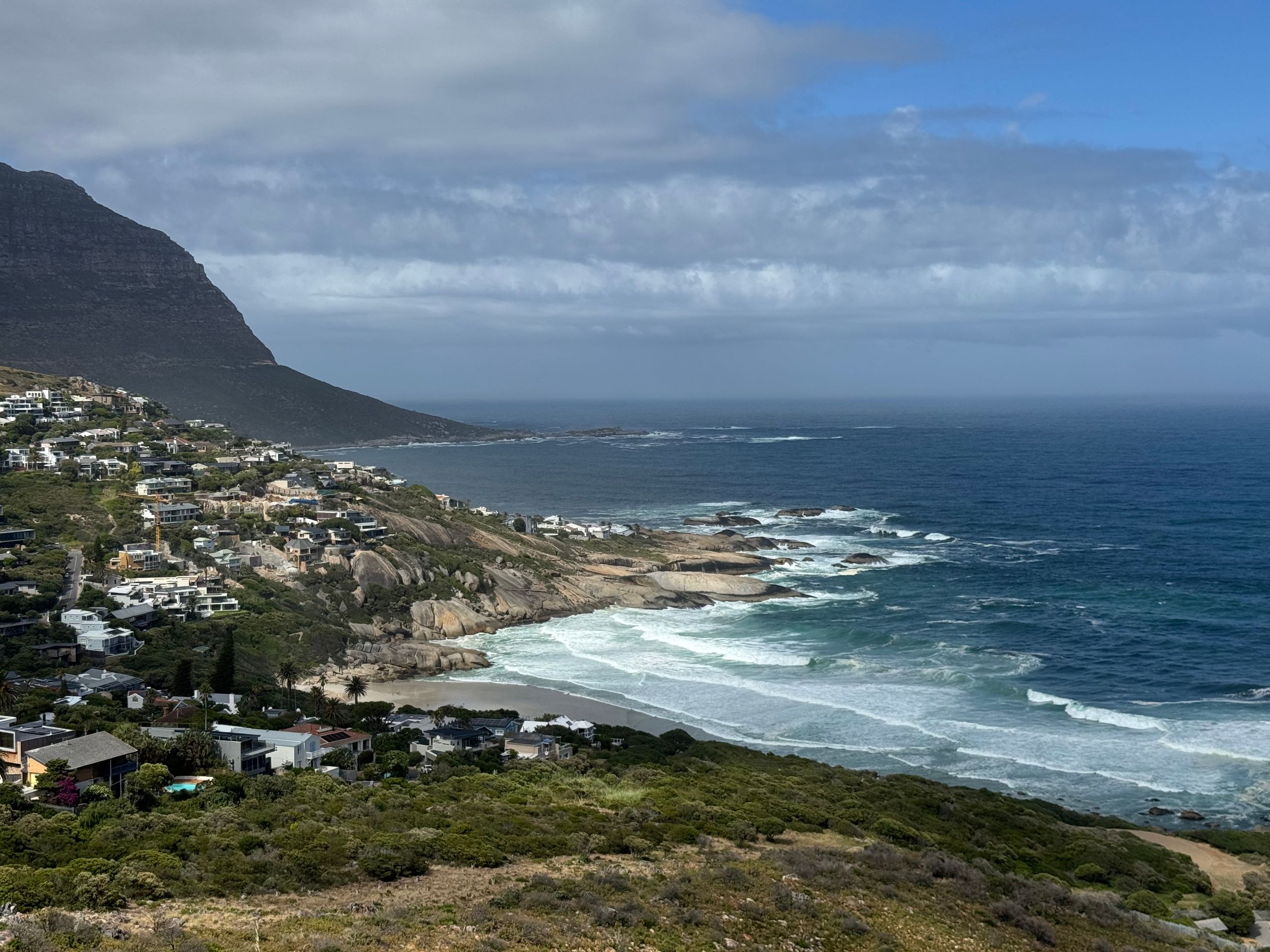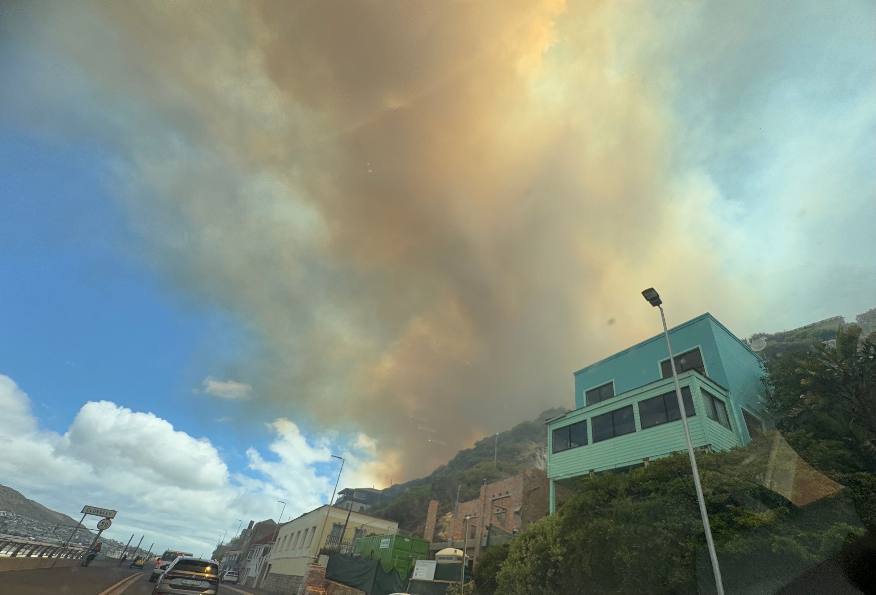 Hinter Kalkbay müssen wir aufgrund eines Buschfeuers leider umdrehen und zurück über die Berge zum Chapmans Peak Drive fahren.