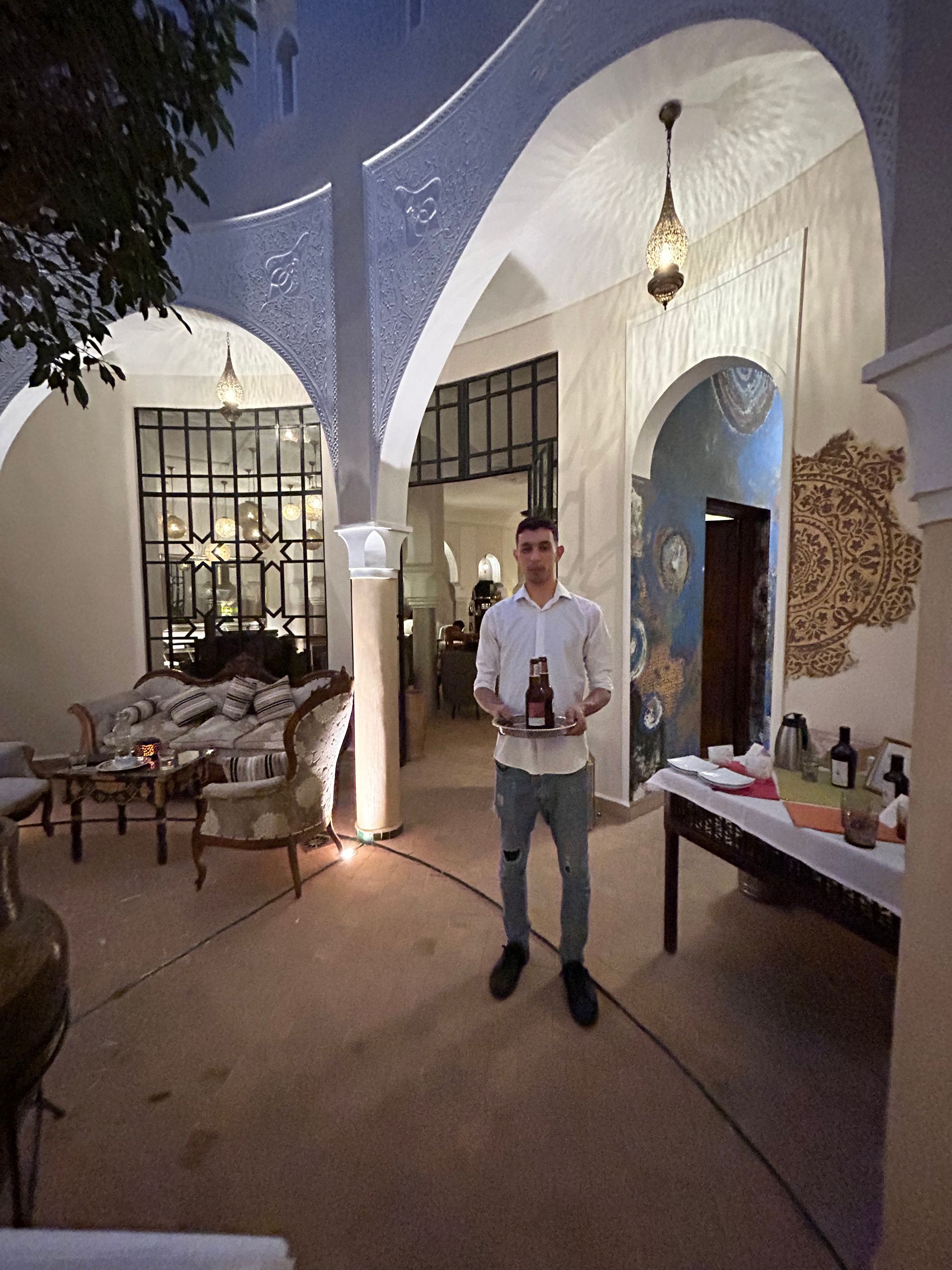 Ich fragte nach alkoholfreiem Bier, was leider nicht vorhanden war. Wenig später stand Younes mit genau diesem in der Lobby, wo auch immer er es in kurzer Zeit besorgt hatte.