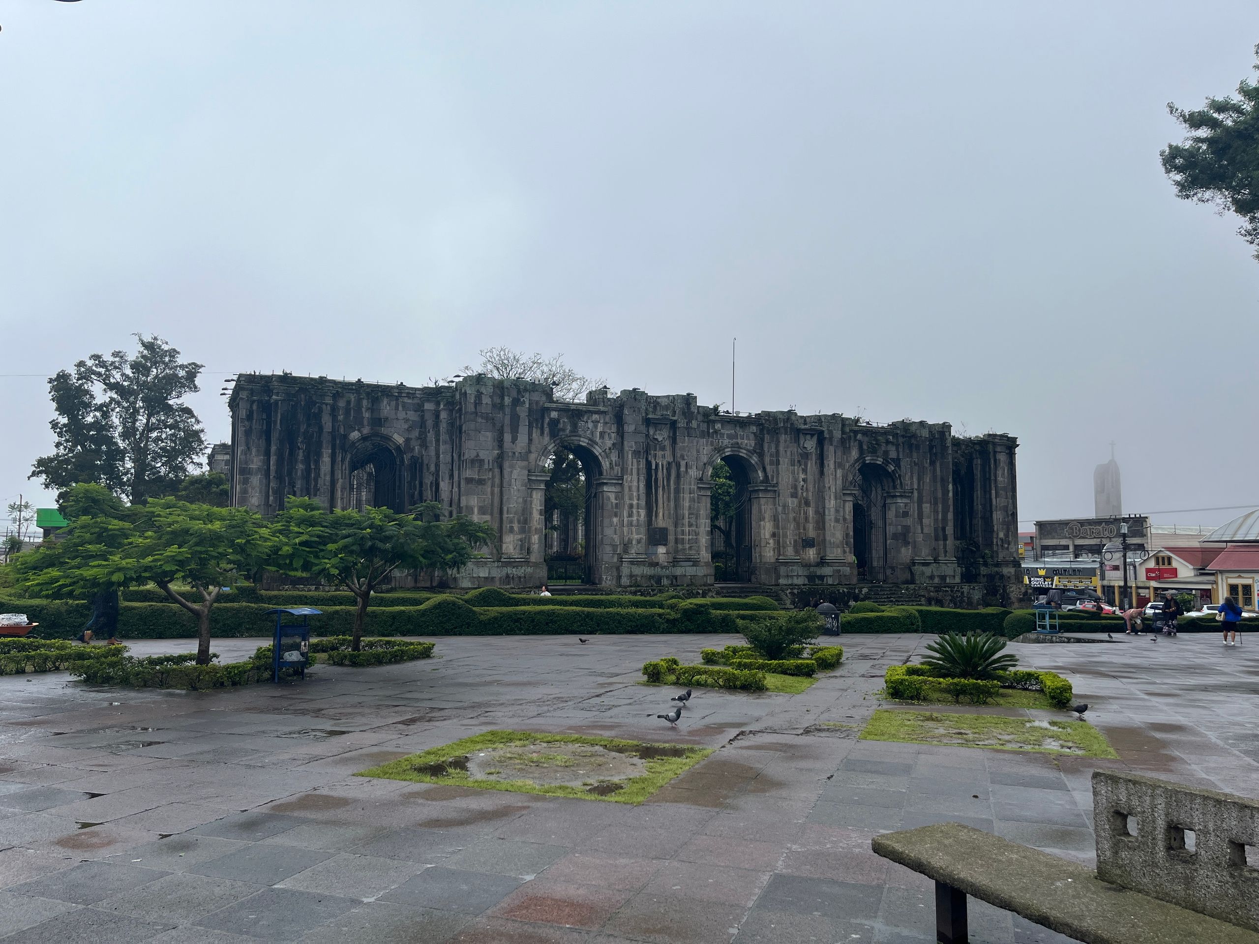 Mittwoch, 5.11.: Genieße gerade die Sonne nach einem vollkommen verregneten Tag. Und ausgerechnet an dem Tag (gestern) sind wir nach Cartago gefahren (ehemalige Hauptstadt, 1500 m hoch). Eine Stunde Autofahrt, viel Verkehr (die Straßen sind eigentlich immer voll), schlechte Straßen, viel Regen. In Cartago waren wir erst in einem Café, um uns aufzuwärmen, und haben uns dann noch die berühmte Kathedrale angesehen. Dann ging es wieder zurück in den dichten Verkehr. Das Ganze hätten wir uns sparen können.