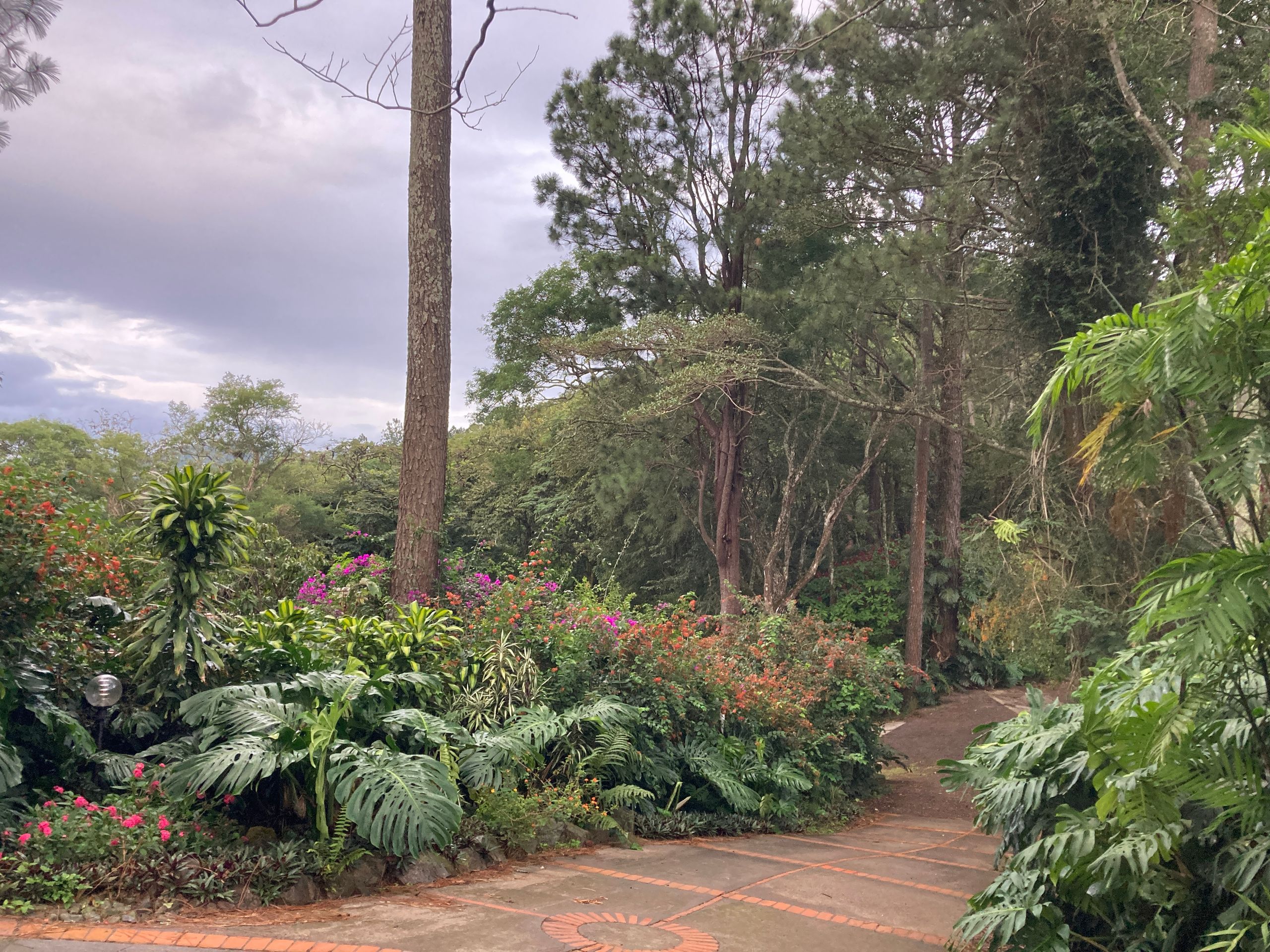 Am Donnerstag besuchten wir eine Frau, die aus Bremen stammt und hier seit ihrem Architekturstudium lebt und Unglaubliches aufgebaut hat. Sie wohnt auf dem Berg wie in einem kleinen Urwald, den sie ebenfalls selbst mit ihrem Mann pflanzen ließ. Dort hatte sie vor Jahrzenten ein großes Grundstück erschlossen (nur grüne Wiese) und ein ganzes Condominio gebaut, d.h. viele Villen, die von prächtigen Gärten umgeben sind. Sie hat sich hier in San José richtig einen Namen gemacht. Das ganze Areal ist abgesichert und man kommt nur herein, wenn man angemeldet ist und die Passnummer hinterlässt. Es waren nur 14 km bis dorthin, die Fahrzeit hin und zurück hat aber über zwei Stunden gedauert. Besonders zurück und leider auch im Dunkeln gab es einen riesigen Stau. Dennoch möchten wir diese Begegnung nicht missen.