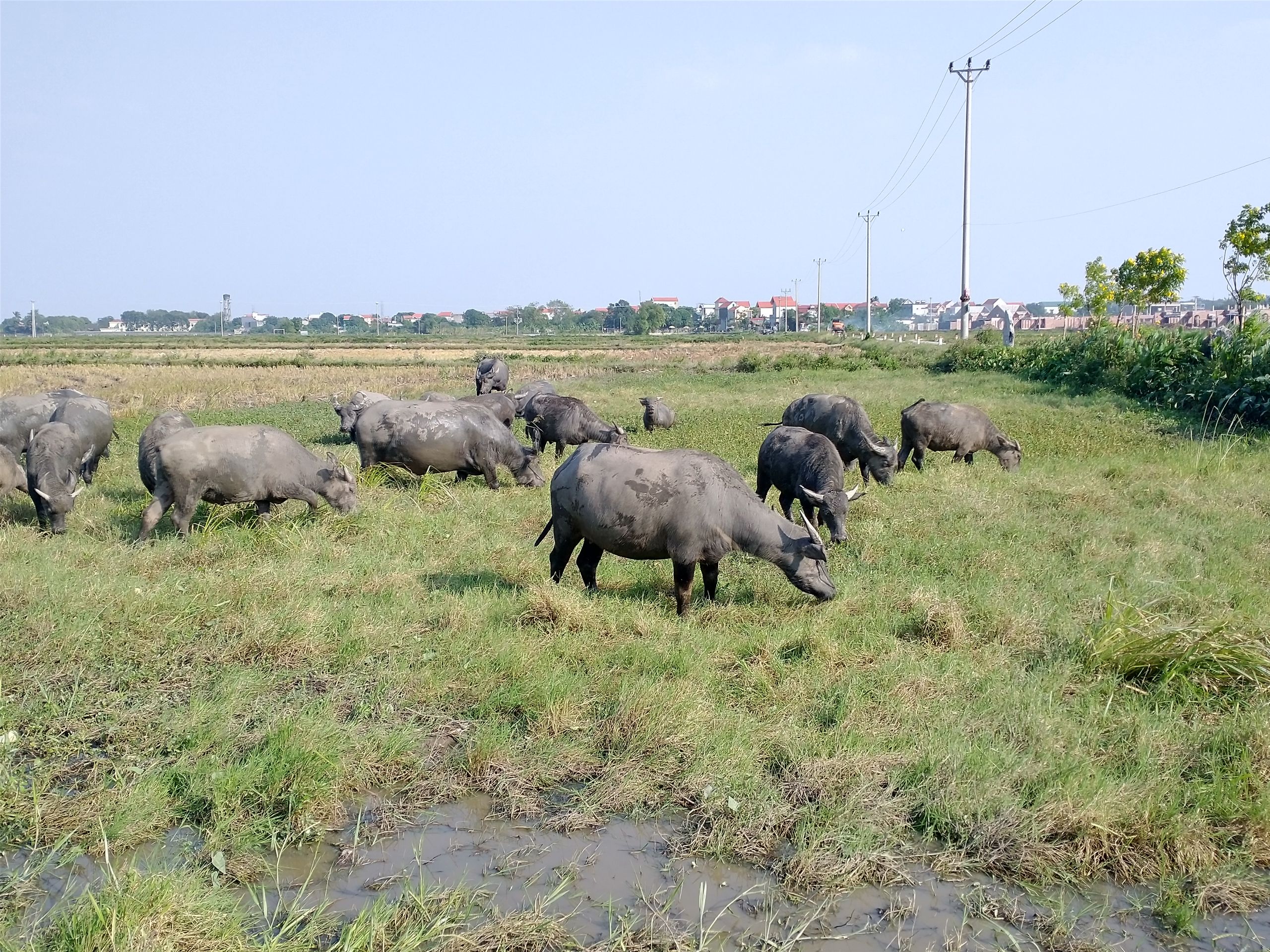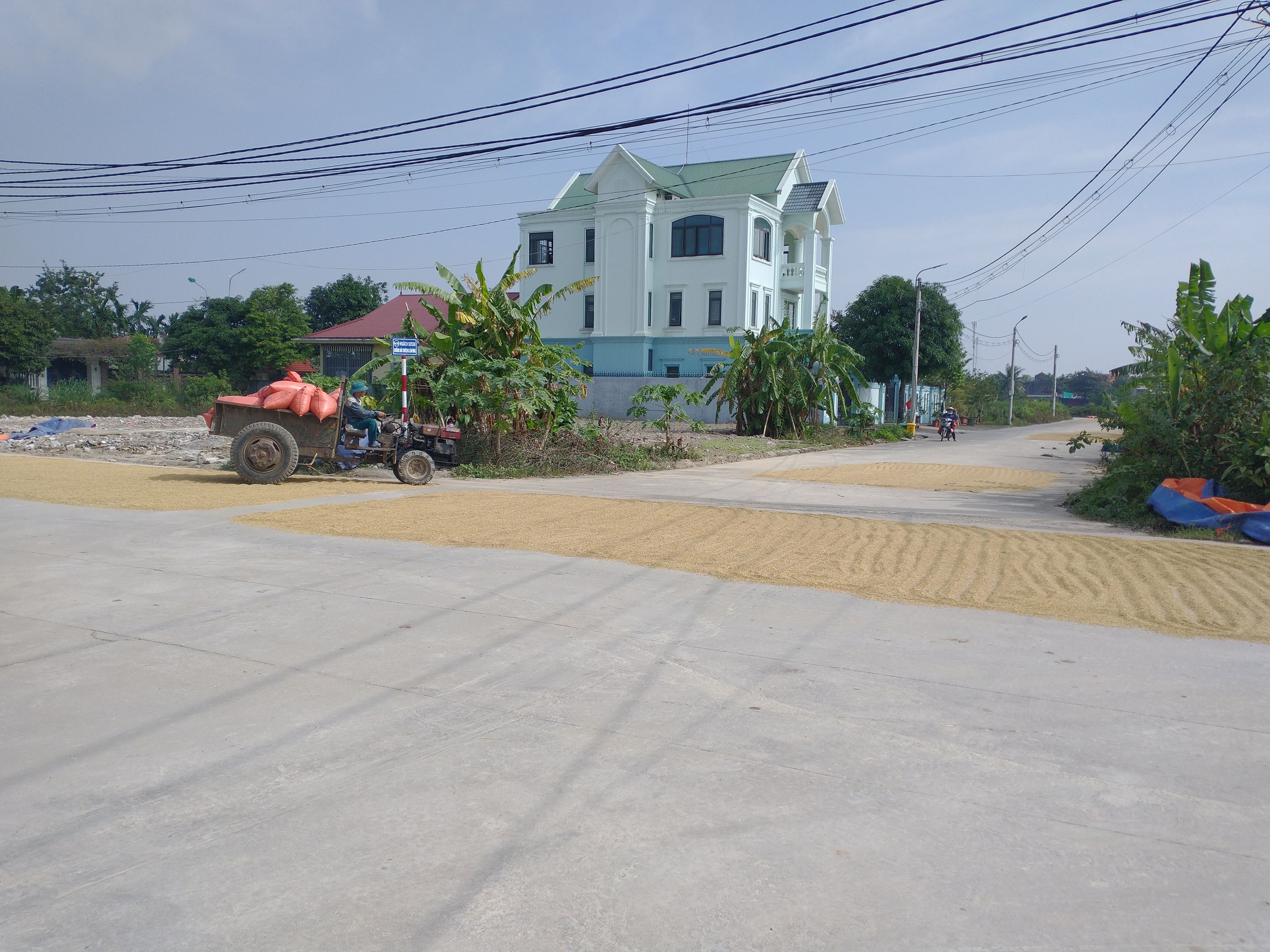 Nächster Tag, ich miete ein Fahrrad, wieder keine Gangschaltung. Viel Sonne, also eincremen und Schutzkleidung tragen, auch wenn es nicht sehr modisch ist. Ich muss sagen, Regen hat auch Vorteile. Kein Eincremen, weniger Staub und Abgase, weniger Schwitzen. Ich radele entlang eines kleinen Flusses in Richtung der ersten Hauptstadt Vietnams, Hua Lo. Auf dem Weg sind Dutzende Homestays und Restaurants, jeder hier eröffnet eines. Jede freie Fläche wird genutzt um Reis zu trocknen. Bestimmt ist das staatlich gefördert. Überall kaum Gäste zu sehen. Hua Lo ist über 1000 Jahre alt. Stadt ist aber übertrieben, es gibt zwei Tempel aus dem 17. Jahrhundert, ein paar Ausgrabungen und eine Pagode auf einem Berg, Stufen ohne Ende. Frankreich hat sich hier wieder von der besten Seite gezeigt und ein paar Bomben reingeworfen. Die Geschichte der ersten Stadt ist schnell erzählt. Einer von 13 Warlords hat die anderen besiegt und die Chinesen nach 1000 Jahren vertrieben. Zum Dank wurde er König und die anderen Warlords wurden als Verräter gebrandmarkt. Wie überall auf der Welt: Sieger schreiben Geschichte. Dort gibt es auch eine Friedhof, der geflutet ist. Scheint aber normal zu sein, alle Gräber ist erhöht und mit dem Boot zu erreichen.