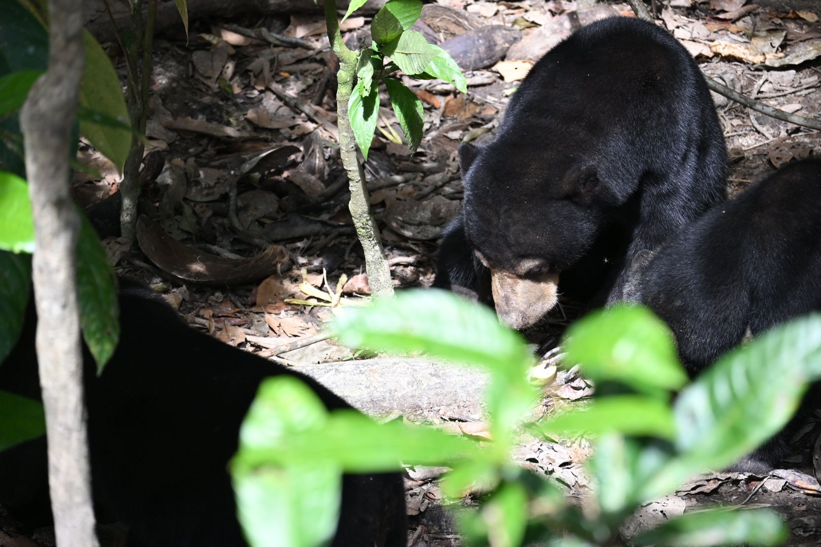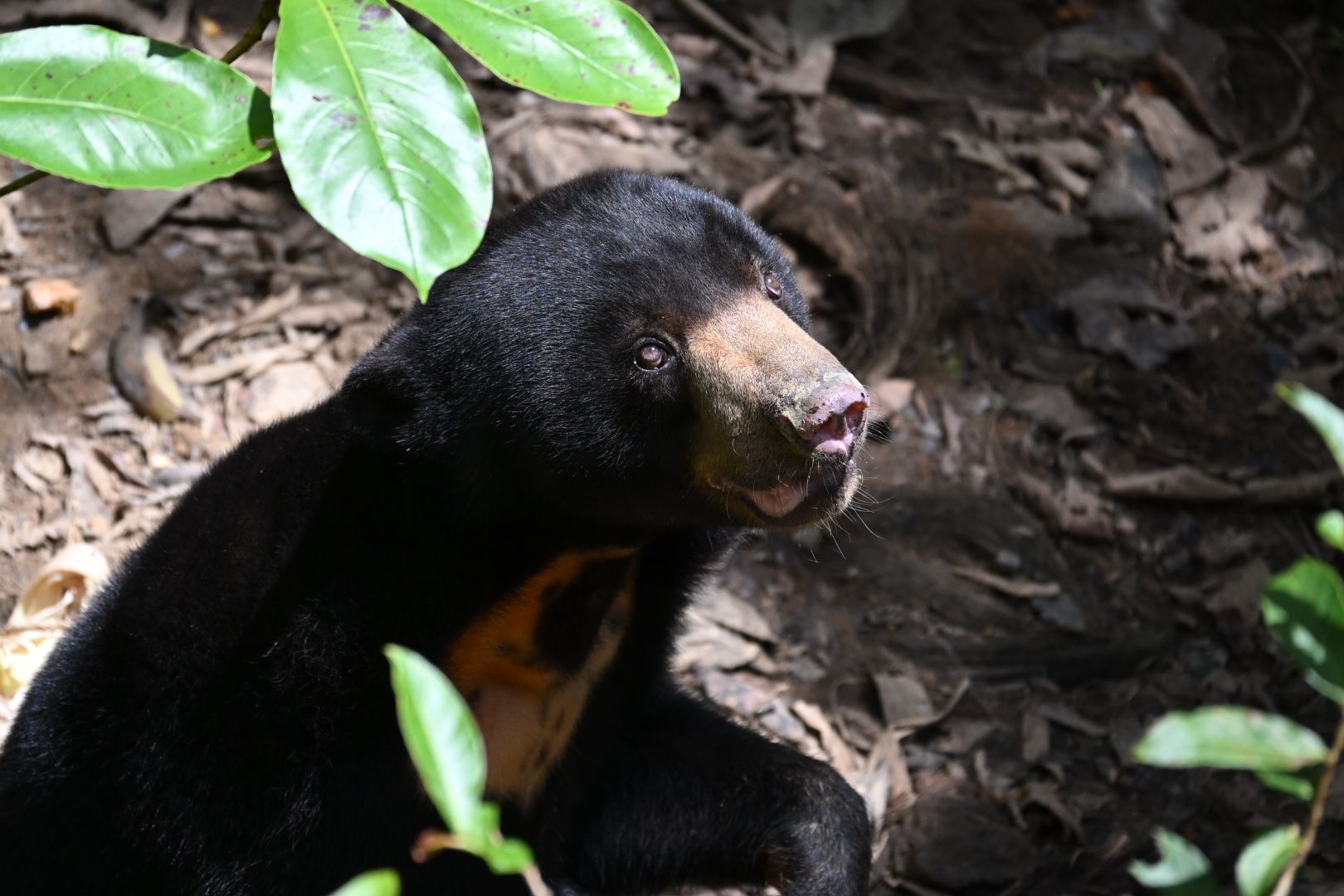 Der malaysische Sonnenbär hat eine Zunge, die 25-30cm lang ist. Mit ihr schleckt er Termiten und Honig auf.