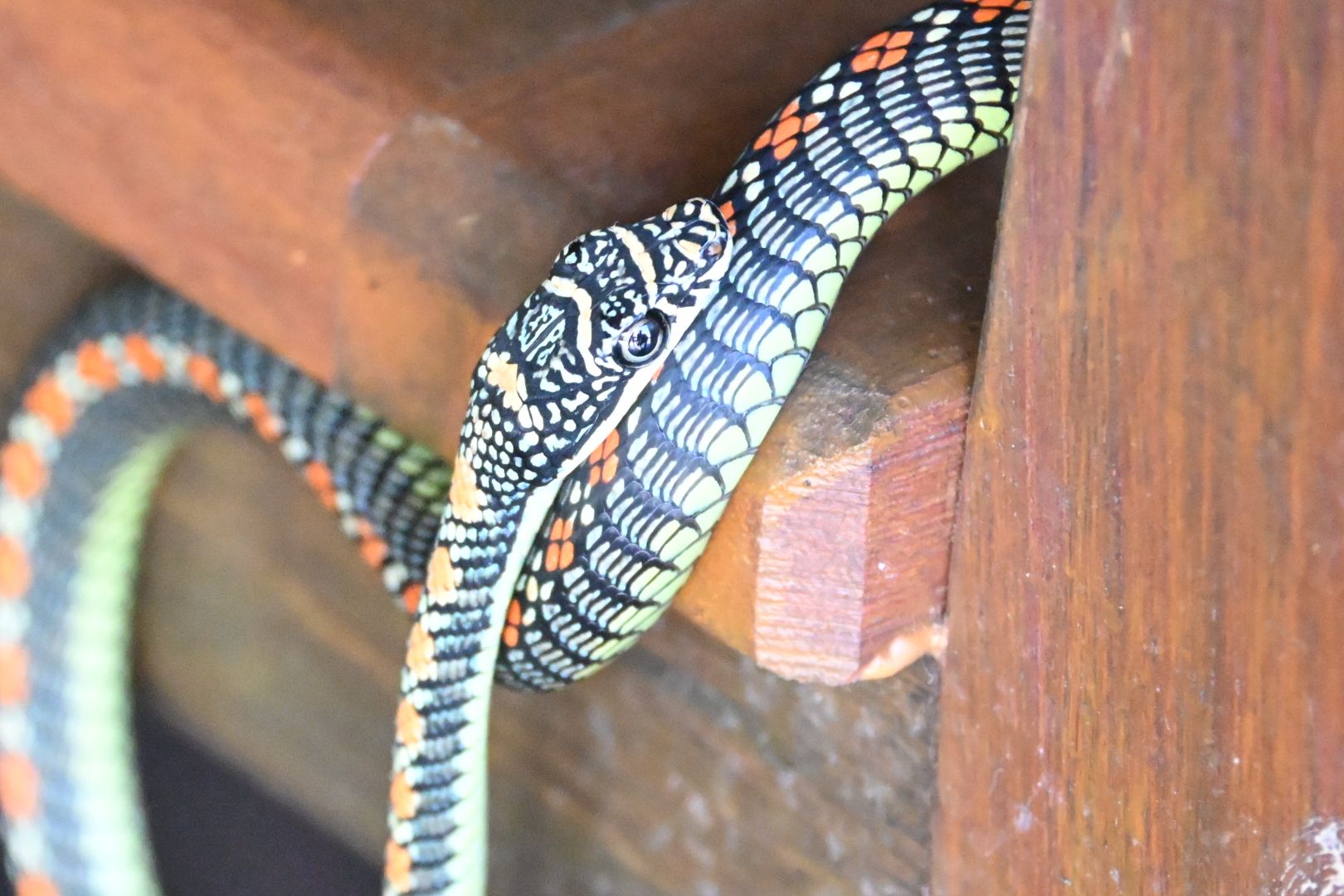 Heute sind wir via Boot nach Sepilok gefahren. Hier gibt es eine Rettungsstation für den Malaysischen Sonnenbären, der vom Aussterben bedroht ist. Nebenan ist die Orang Utan Auffangstation. Der Park umfasst 43qkm, ist also riesig. Auf dem Weg dorthin haben wir eine Paradiesschlange gesehen, die sich im Speiseraum verirrt hatte.