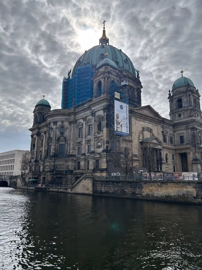 Am nächsten Morgen hatte ich erstmal eine Onlinebesichtigung für ein Zimmer in London, schlappe 1600 Pfund für 15 Quadratmeter. Die Mietpreise in Berlin können mich wohl nicht so schnell schocken. Ich aß einen Joghurt und ein paar Heidelbeeren, um mir kurz darauf ein Pain au chocolat und einen Cappuccino to go zu gönnen, auf dem Fußweg in die Stadt. So konnte ich besonders viel vom Flair aufnehmen und zu Fuß brauchte ich nur 10 Minuten länger als mit der Bahn. Der Weg war schön, die Sonne schien. Ich hatte die ganze Zeit den Fernsehturm im Blick und meinen Kaffee fest in der Hand. Angekommen in Berlin-Mitte erkundete ich die Gegend rund um die Hackeschen Höfe und ging in einige Läden. Auch die Hackeschen Höfe erkundete ich und kaufte ein Mitbringsel für eine Freundin. Mein wichtigstes Verkehrsmittel an dem Tag war der Fußbus und so lief ich Richtung Humboldt-Uni, weil ich nachmittags noch mit der Fachschaft der MeKuWi der HU verabredet war. In der Nähe des Doms war eine riesige Buchhandlung, in der ich eine Menge Zeit verbrachte, bevor ich den Dom (von außen) in all seiner Pracht bestaunte. Alleine unterwegs sein war sehr entspannt, denn so konnte ich bestimmen, worauf ich Lust hatte. In der Nähe des Doms ist auch die HU, wo ich mir im überteuerten Humboldtforum etwas zu essen holte. Der Salat war aber sehr lecker und ich war sogar relativ gesättigt. Eine Stunde hatte ich noch zum Treffen zu überbrücken und lief herum. In der Nähe des Forums gelangte ich in einen Teil der Stadt, der so anders aussah. Fast wie eine kleine Altstadt, ich kann es leider nur beschreiben, weil ich keine Fotos gemacht habe. Aber glaubt mir, es sah echt ziemlich cool aus und verrückt, dass solche Stadtteile parallel voneinander existieren können. Dort holte ich mir einen Crêpe mit Zimt und Zucker und setzte mich auf eine Bank an der Spree, um people watching zu betreiben.