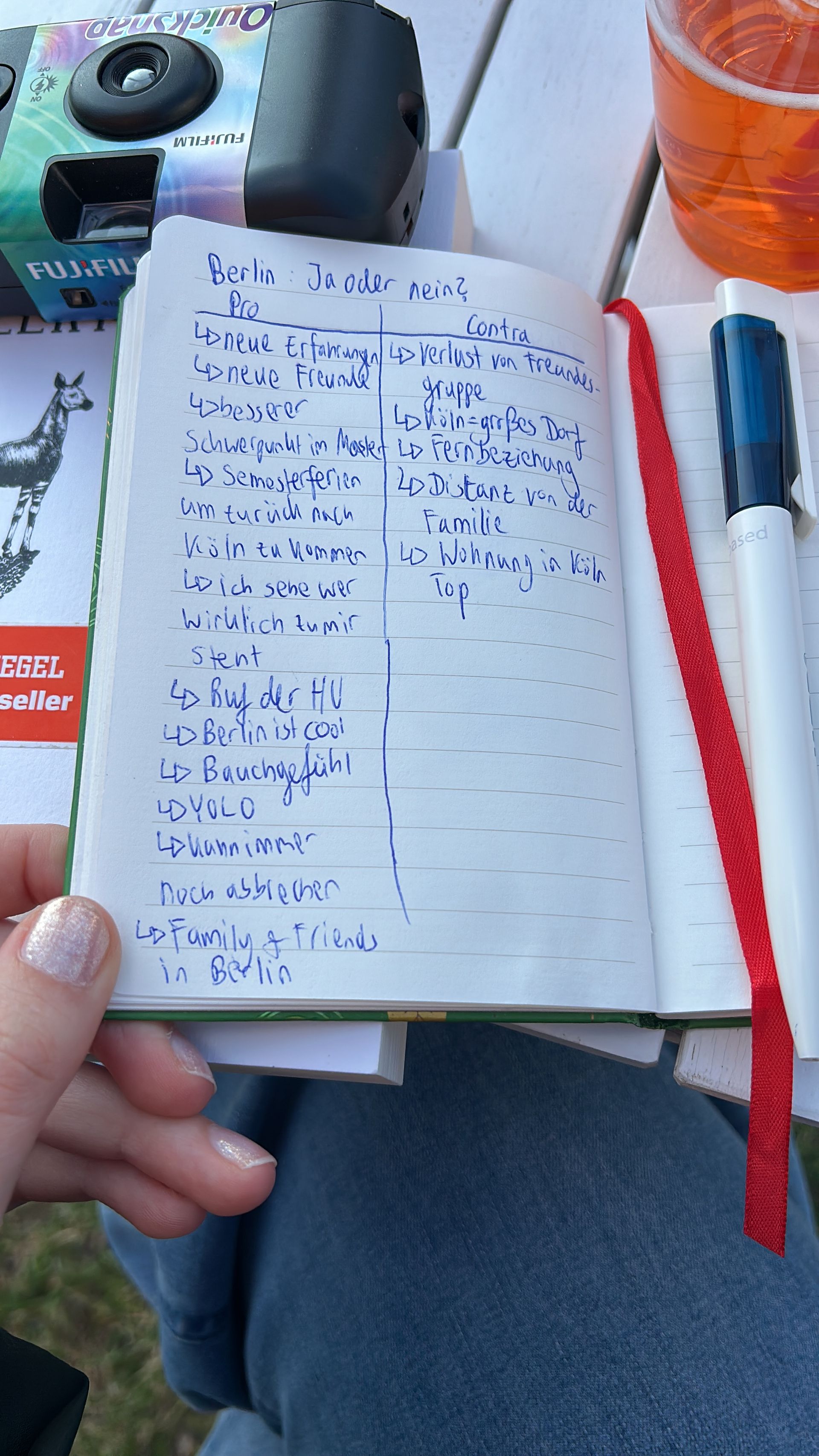 Das Treffen mit der Fachschaft war ein voller Erfolg, wir unterhielten uns fast zwei Stunden lang über den Masterstudiengang und vieles andere. Sie waren sehr sympathisch und haben mir alle meine Fragen beantwortet. Ich habe sogar noch eine Führung durch die medienwissenschaftliche Sammlung bekommen. Durch das Gespräch habe ich schon einen groben Eindruck gewonnen und ein gutes Bauchgefühl noch dazu. Nach den ganzen Eindrücken war ich auch schon mit meinem Cousin verabredet, dem ich vorher noch ein kleines Geschenk kaufen wollte. Dafür suchte ich eine unabhängige Buchhandlung auf Google Maps. „Sonnenhaus“ hieß die Buchhandlung, die ich ansteuerte. Dort angekommen unterhielt ich mich ausführlich mit der Buchhändlerin über meinen deutschen Lieblingsautor Benedict Wells, der regelmäßig in dieser Buchhandlung Bücher gekauft hat. Ein Zeichen vom Schicksal?Geplättet vom ganzen Laufen freute ich mich sehr auf das Kaffeetreffen mit meinem Cousin Laurenz. Das Buch, das ich ihm schenkte, hatte er zum Glück noch nicht gelesen (Hard Land – Benedict Wells). Wir unterhielten uns sehr angeregt. Abends probierte ich noch Berliner Bier und fiel müde und zufrieden ins Bett.