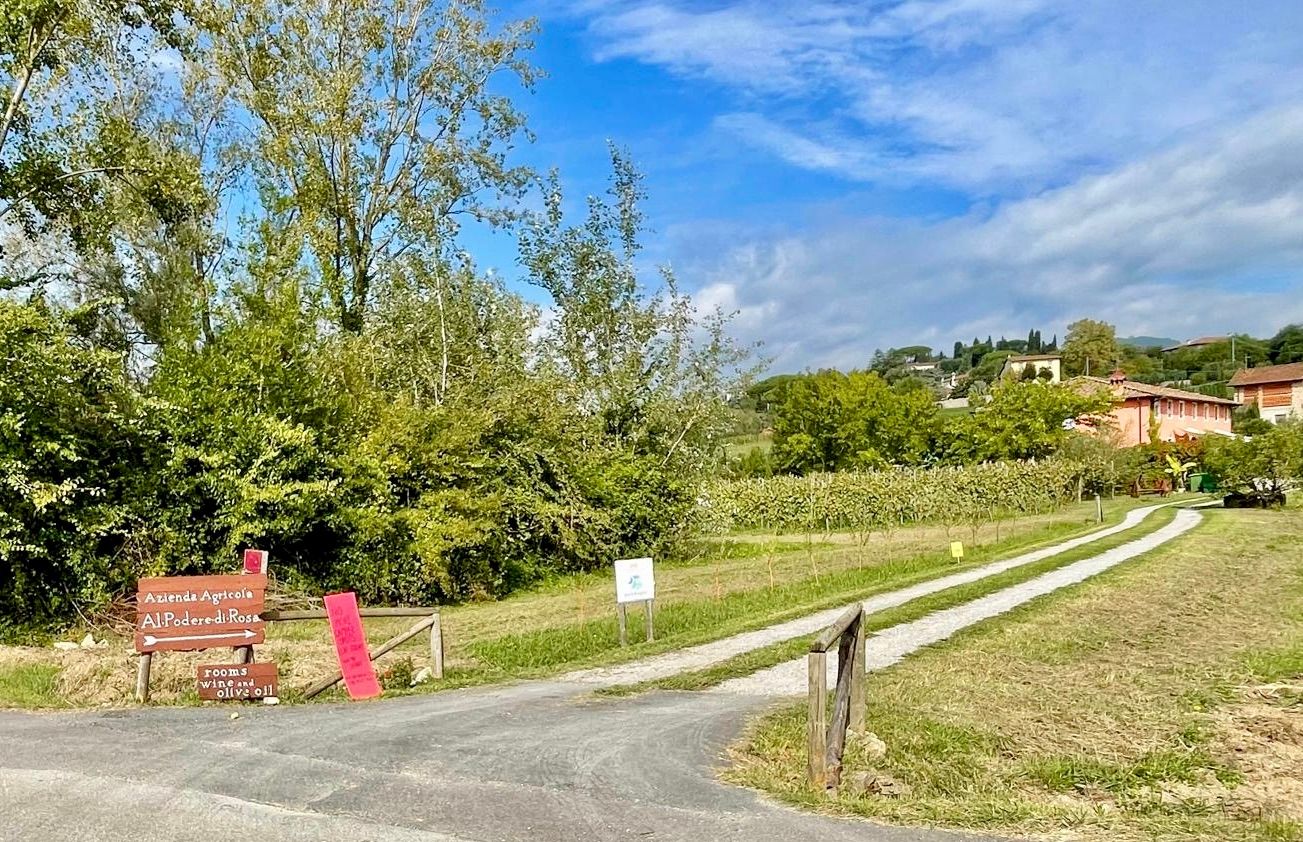 Zunächst lief alles wunderbar. Wir kamen problemlos aus dem zugeparkten Hinterhof unserer Autowerkstatt – mitten im Zentrum von Lucca – und fanden dank Google Maps mühelos den Weg zu unserem Ziel. Schon von Weitem sah ich eine braune Tafel mit weißem Pfeil und auf dem Gelände daneben einige Wohnmobile stehen. Doch die Auffahrt war viel zu eng! Wie sollte ich mit meinem „Sattelschlepper“ da herumkommen?