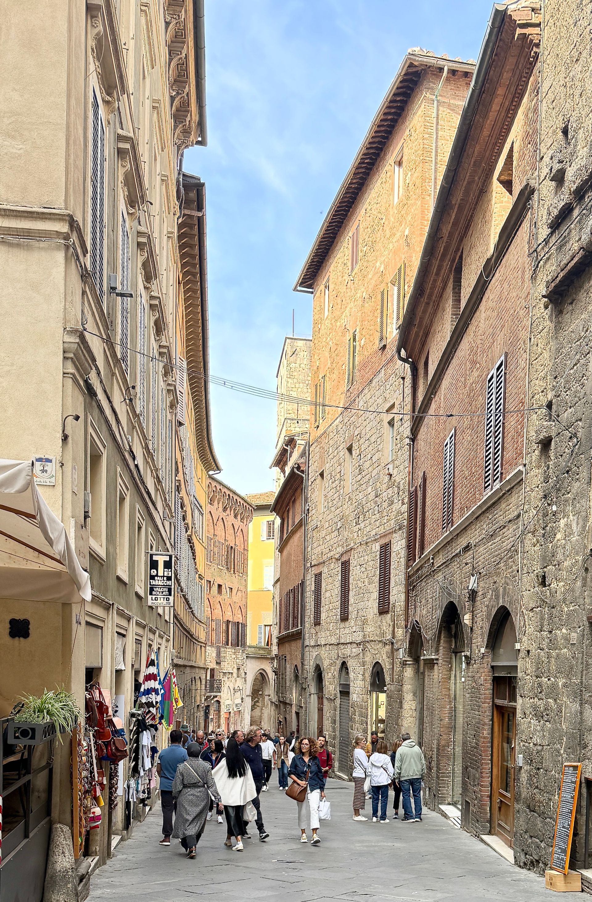 Da sind die historischen Bauwerke, erstaunlich gut erhalten, und überall junge Menschen. Siena ist eine Universitätsstadt – fast ein Drittel der etwas über 50 000 Einwohner studiert hier. Das spürt man: in den Restaurants, in den Geschäften, in jeder der unzähligen engen Gassen. Überall pulst das Leben, hallt Lachen wider, scherzen Freunde miteinander. Das steckt an.