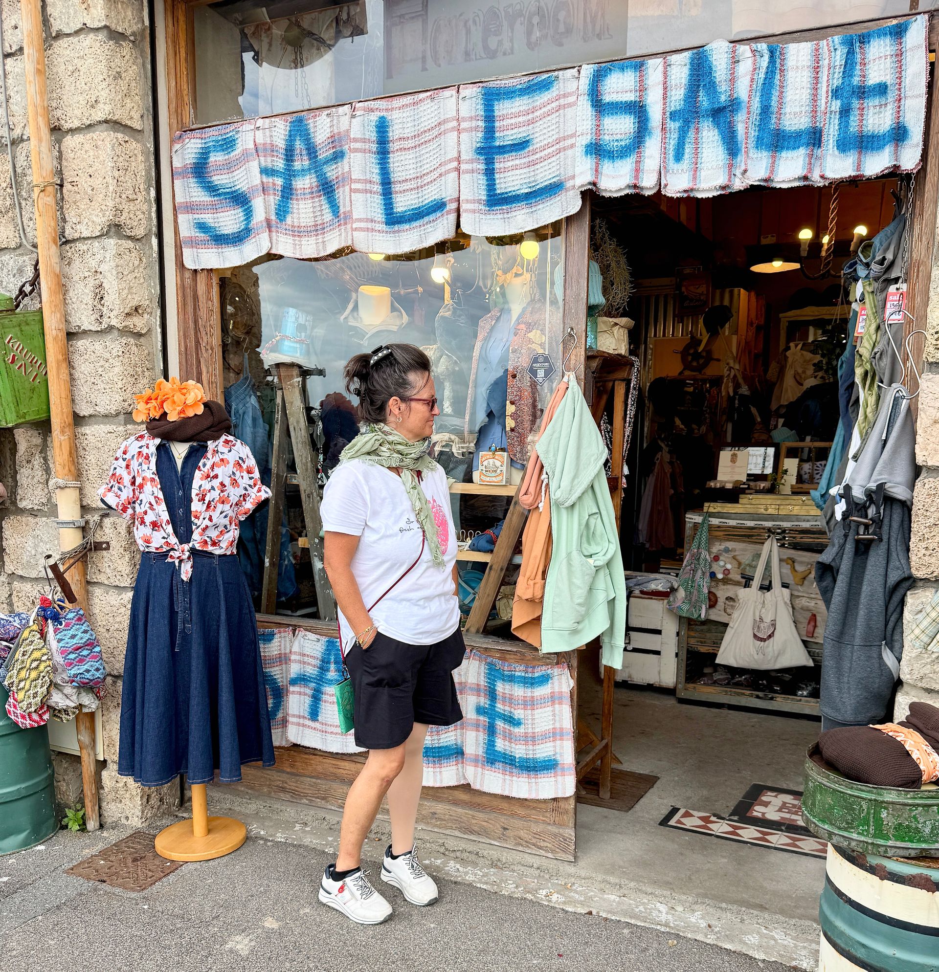Die charmante kleine Altstadt von Porto Ercole liegt etwa drei Kilometer von unserem Stellplatz entfernt. Wir hätten sie vielleicht gar nicht besucht – doch zum Glück war heute Wochenmarkt, und dafür ist meiner Icke kein Weg zu weit. Auf die Fahrräder, die wir uns auf dem Stellplatz hätten leihen können, verzichten wir lieber. Beim Ausflug nach Orbetello hatte mein Gefährt unterwegs einen Platten, und wir mussten den gesamten Rückweg schieben. Das muss sich nicht wiederholen.