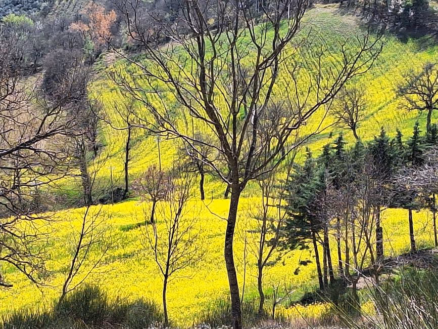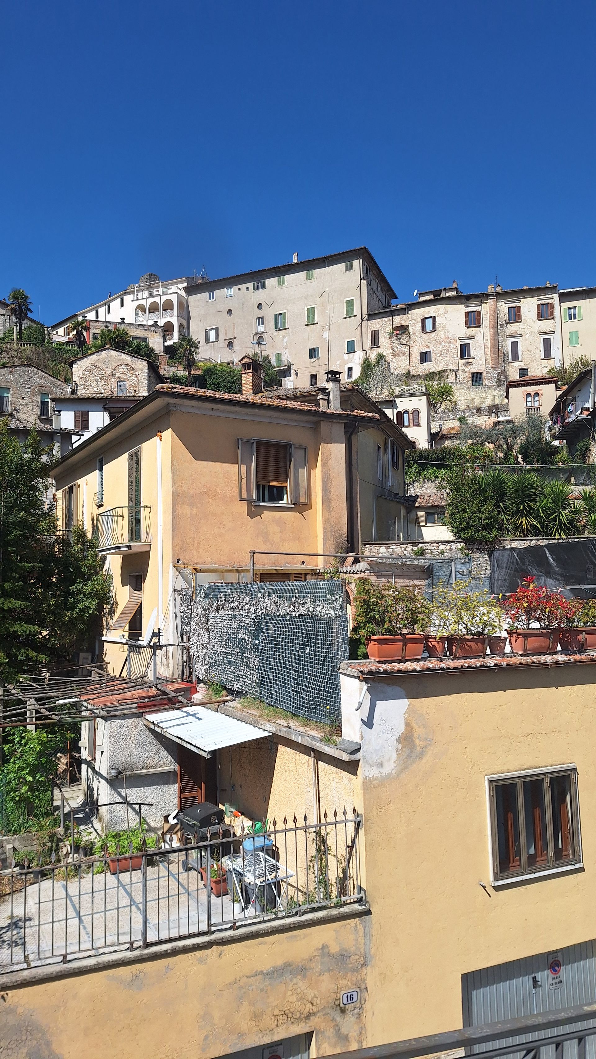 Die Etappe von Stroncone wird mit über 1000 Höhenmetern und einer Distanz von weit über 20 km als die härteste des gesamten Weges von Florenz über Assisi nach Rom beschrieben. Grund genug für uns nach Alternativen zu suchen. Da gibt es doch das gut funktionierende System der Busse in Italien. Also mit dem Bus wieder nach Terni (2,50€) dann mit dem nächsten Bus von Terni nach Calvi (4,80€ für 30 km). Das Besondere daran war, dass wir fast die gesamte Strecke die einzigen Fahrgäste waren. Eine sehr lohnenswerte Busfahrt über enge Straßen, entlang steiler Hänge, durch kleine Städte. Wobei der Bus kaum durch die Stadttore passte, da weniger als eine Hand Platz zwischen den Mauern.