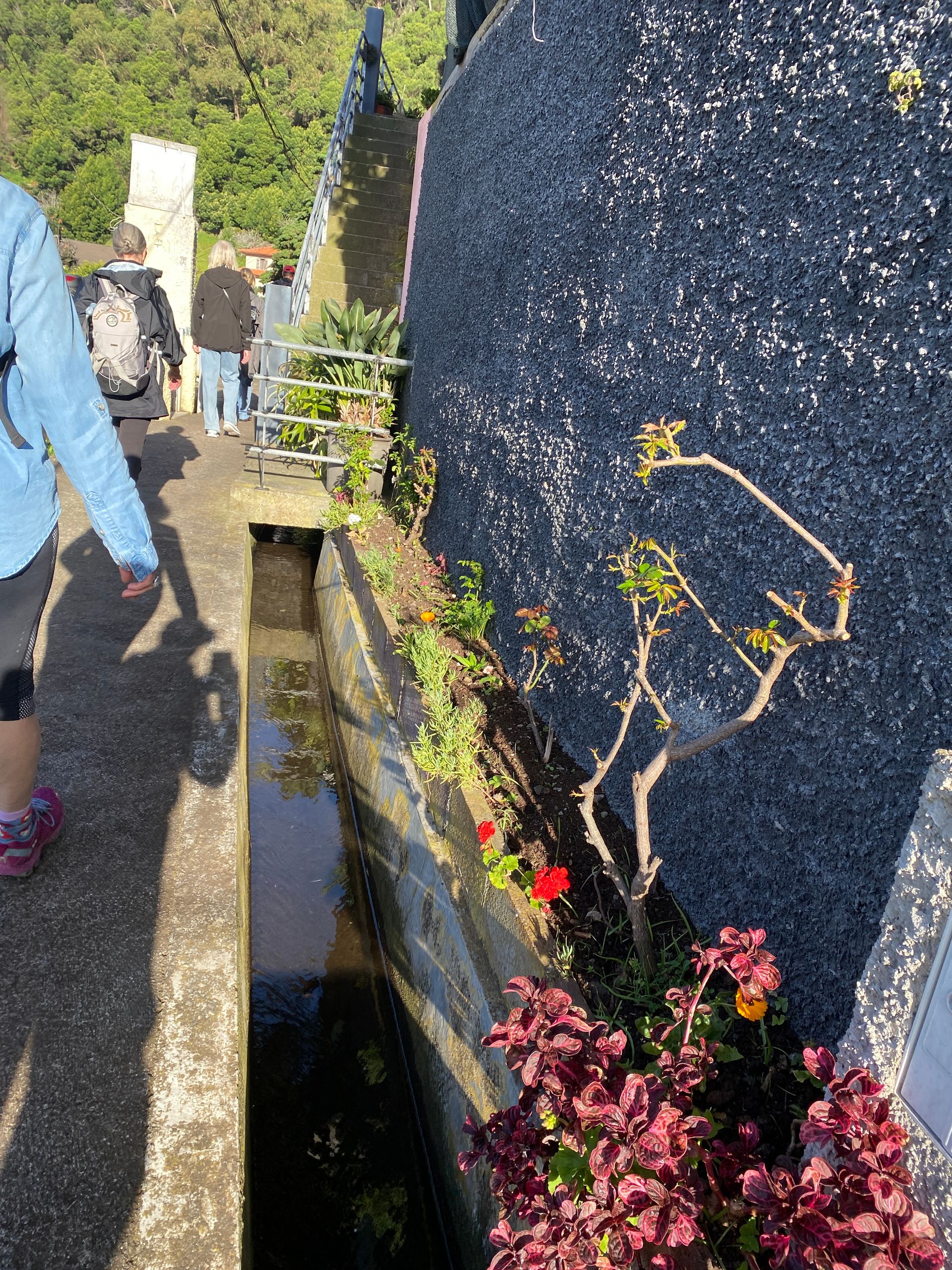 Der Wanderführer war recht zügig unterwegs, lieferte aber immer wieder Erklärungen über verschiedene Pflanzen am Wegesrand; auch zu den Levadas gab es einiges zu erfahren. Selbst in ganz kleinen Gärten werden hier Avocados, Mispeln, Mangos, Papayas und Zuckerrohr angepflanzt. Wir konnten auch die Pflanzung neuer Süßkartoffeln beobachten.