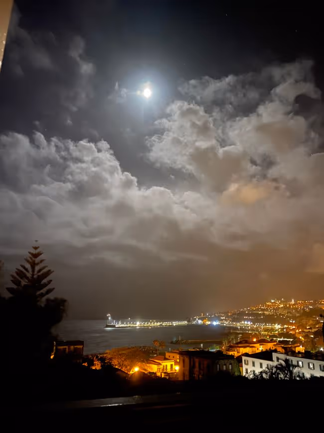 Es war eine sehr stürmische Nacht in Funchal. Morgens parkte das nächste Kreuzfahrtschiff im Hafen ein. Der Himmel klarte immer mehr auf, einige Möwen zogen ihre Kreise und ein bisschen Regenbogen war zu erkennen. Das waren gute Vorzeichen für einen regenfreien Wandertag.