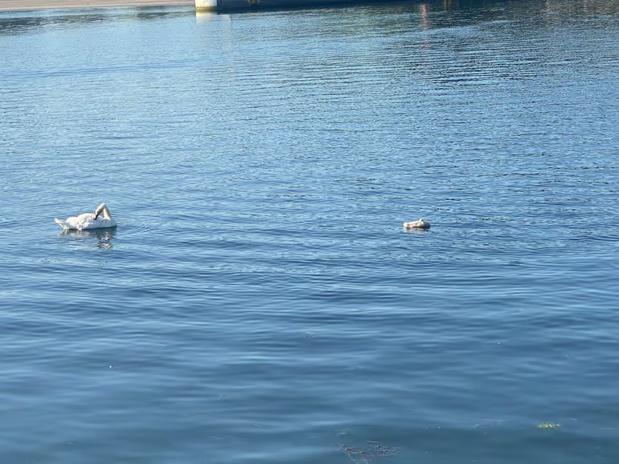 einem Bein und hielt Wache bei schlafenden Artgenossen. Mama Schwan
