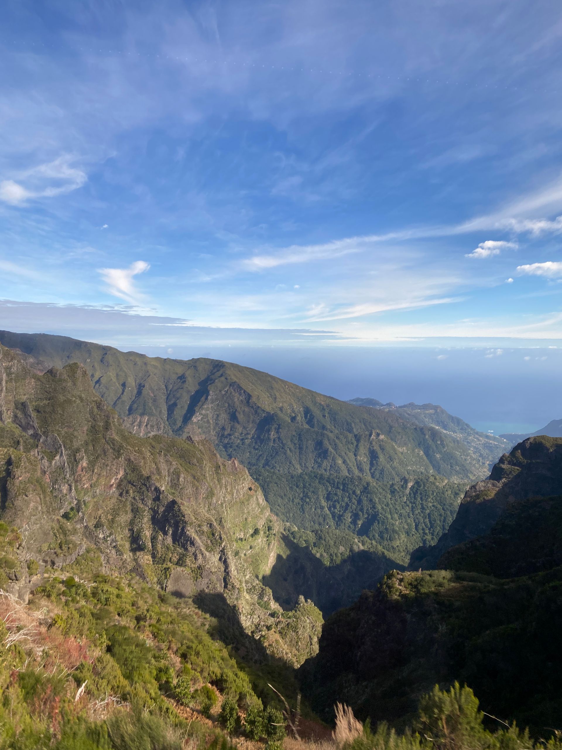 sowie Ausblicke auf kleine Ortschaften. Der Bus brachte uns nach SANTANA. Hier sind noch die mit Stroh gedeckten Häuschen erhalten, manche farbenfroh gestrichen.