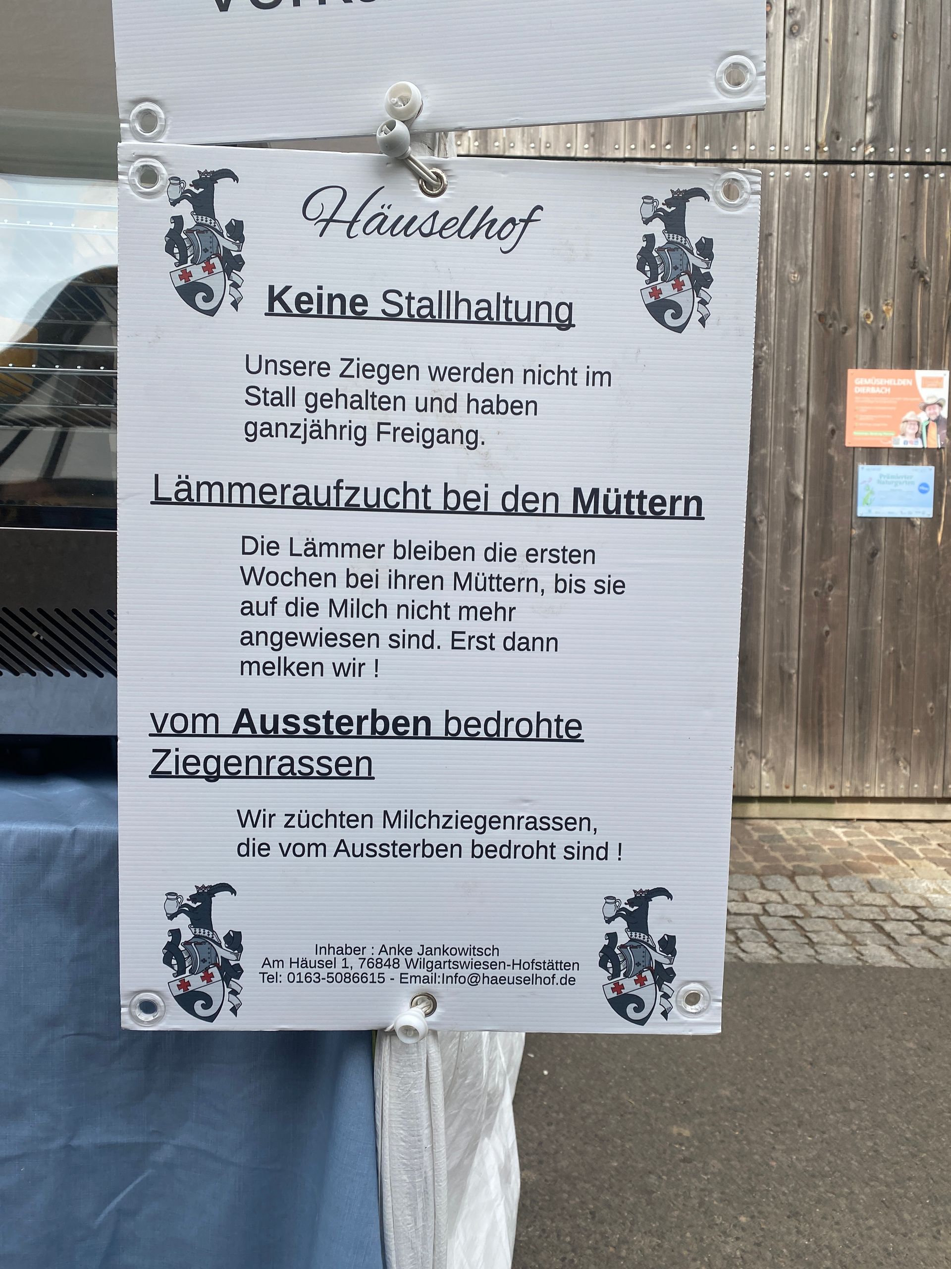 Schön ging es weiter: Ziegenkäse vom HÄUSELHOF aus Wilgartswiesen-Hofstätten, der die Ziegenlämmer lange Zeit bei den Müttern lässt. Und ein Ostfriesisches Milchschaf in der Herde hält. Davon hatte ich vor langer Zeit in Niedersachsen auch einige, um die Wiese kurz zu halten.