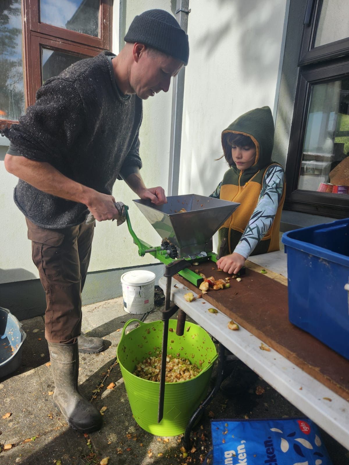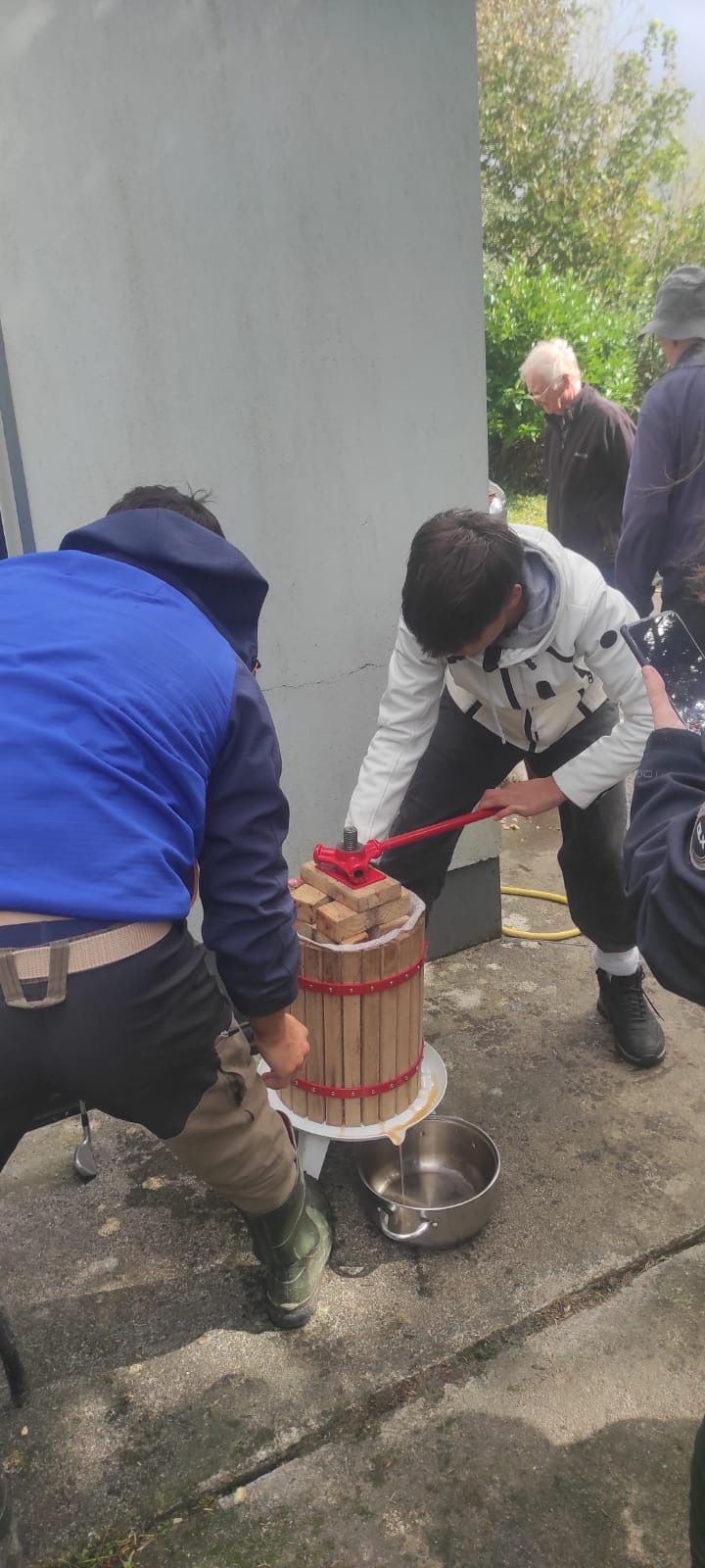Zarah und Michael haben uns mitgenommen zu Tom, einem alten irischen Mann, der auf dem Land lebt mit Tieren und einer großen Apfelbaumwiese. Wir haben einen ganzen Tag damit verbracht zusammen mit anderen Freunden die Äpfel zu pflücken um dann daraus Apfelsaft zu machen. Wir haben die Äpfel erst grob, danach feiner geschnitten, dann gestampft und anschließend gepresst. Am Ende hatten wir über 100l Apfelsaft rausgekommen. Das beste war das Pizza essen am zum Abschluss.