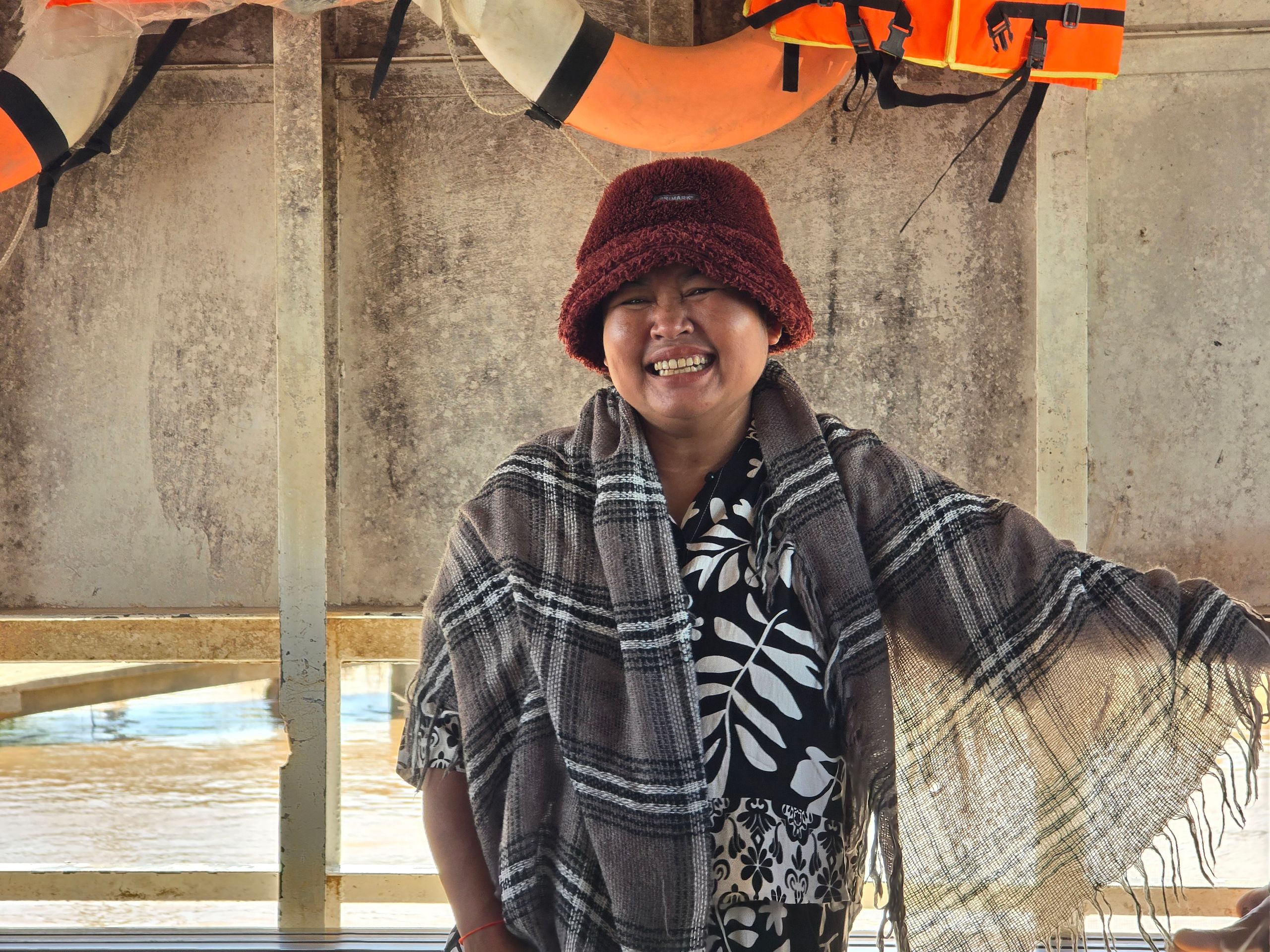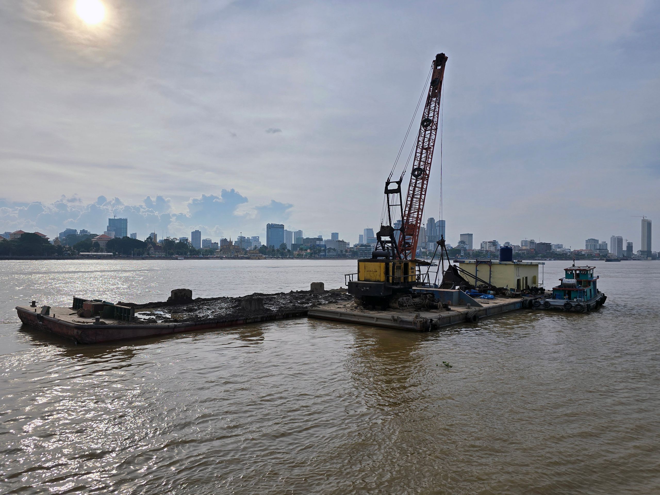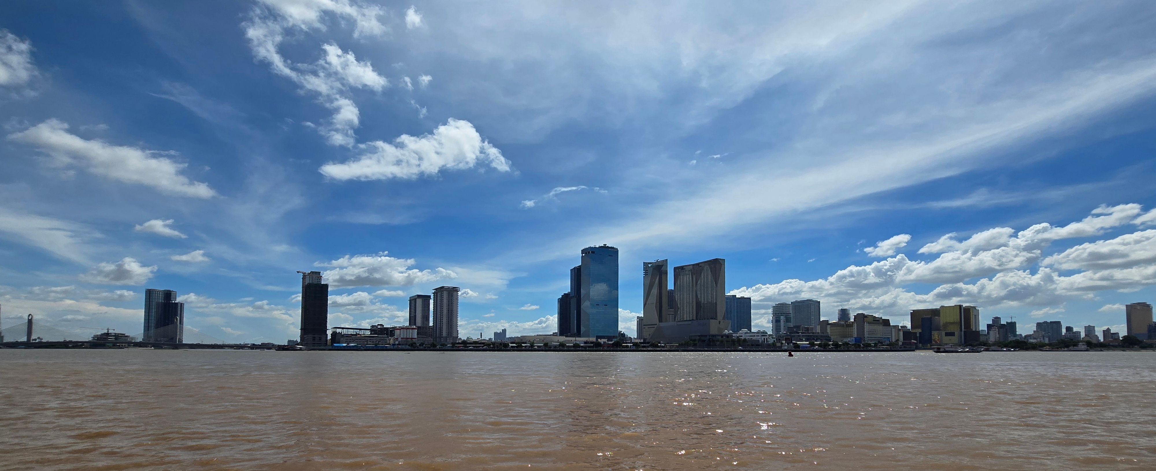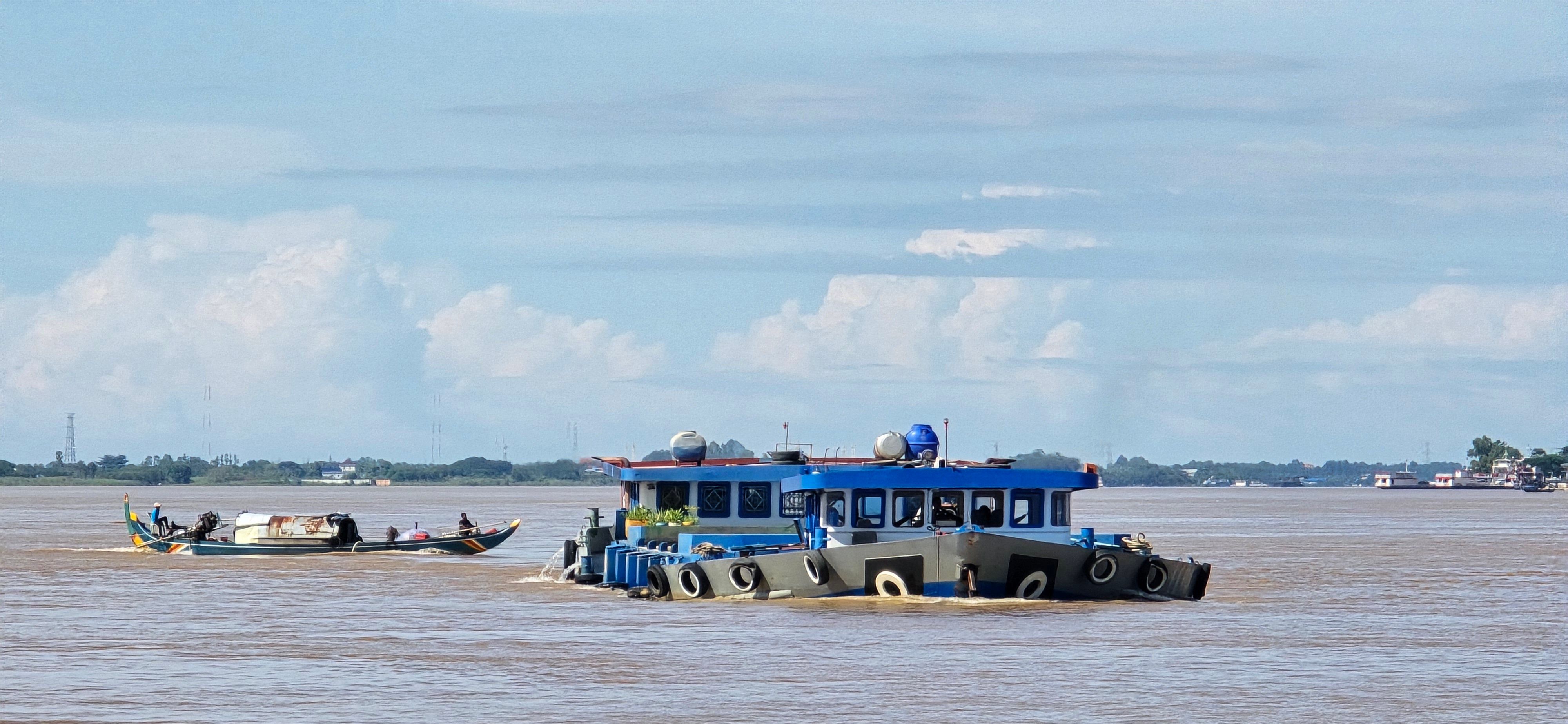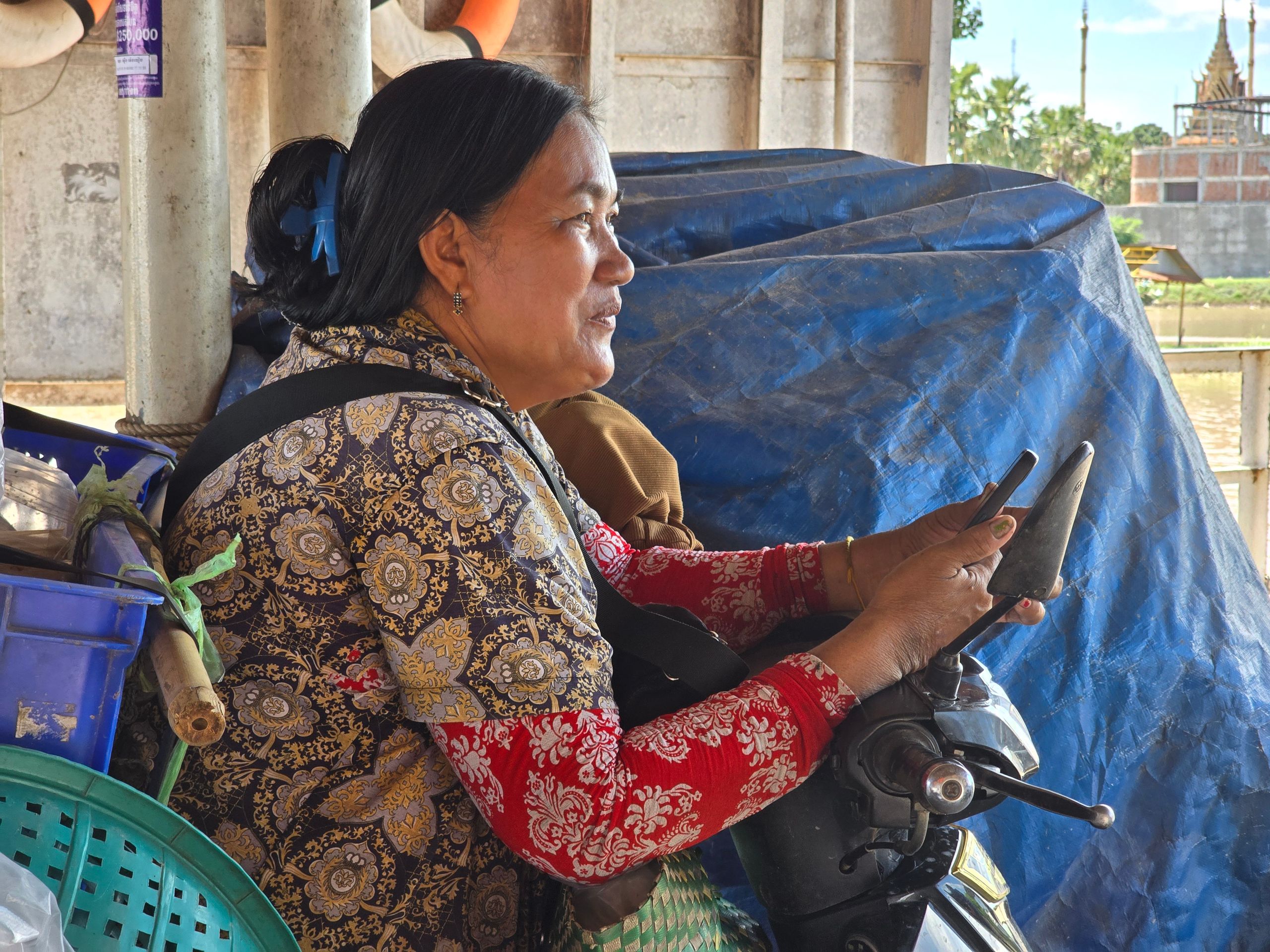 Phnom Penh wächst zur Westseite des Mekong; am der Stadt gegenüber liegenden Ostufer geht es unmittelbar ins grüne, landwirtschaftlich geprägte Umland. Das erhöht den Reiz der weithin sichbaren Skyline der City. Da wir sehr viel mit dem Moped unterwegs sind, ergeben sich vielfach Überfahrten: Begegnungen, Momente des Innehaltens, die wir sehr genießen.