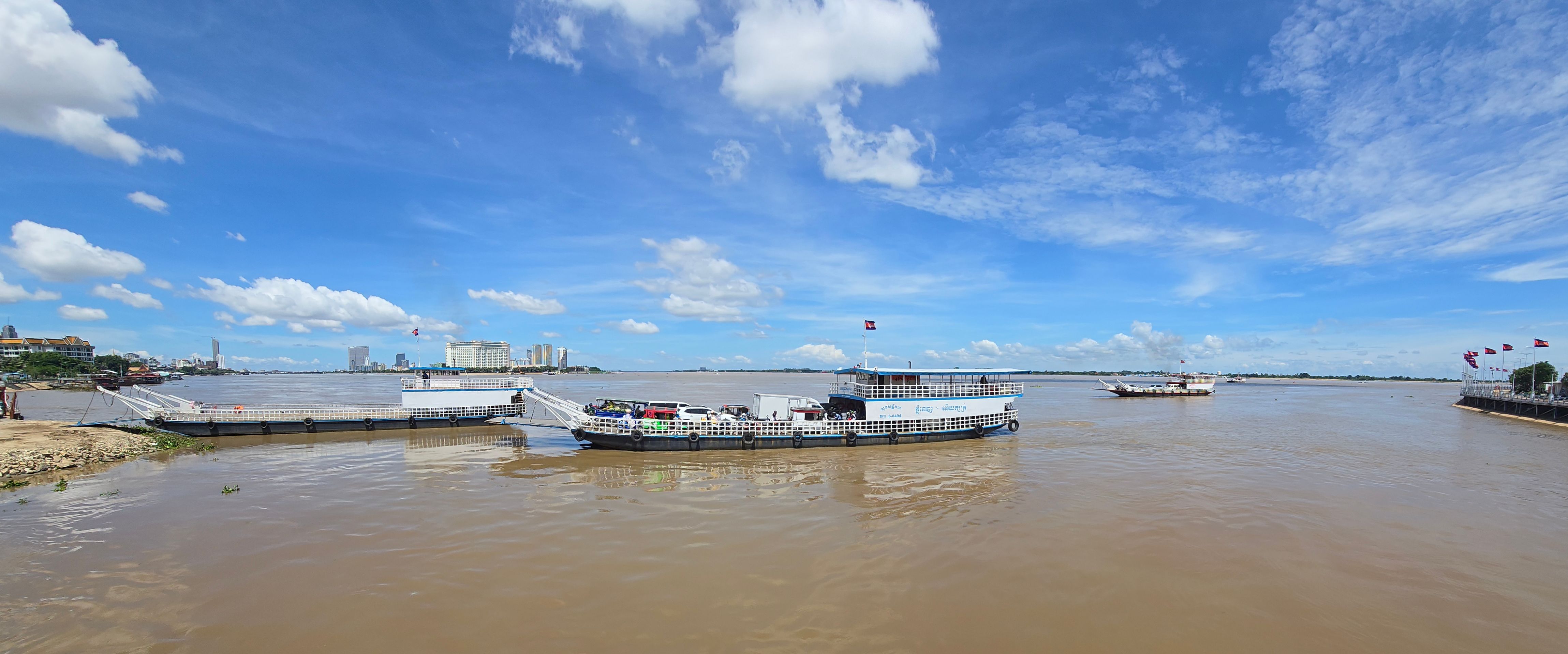 Aufgrund der Lage Phnom Penhs am Zufluss des Tonle Sap zum Mekong ergibt sich eine mächtige Wasserstraße. Über einzelne Arme des Flusses gibt es Brücken, ergänzt durch Fähren zu den Flussinseln. Über den Hauptfluss, den Mekong selbst, gibt es keine Brücken, er kann nur per Schiff gequert werden.