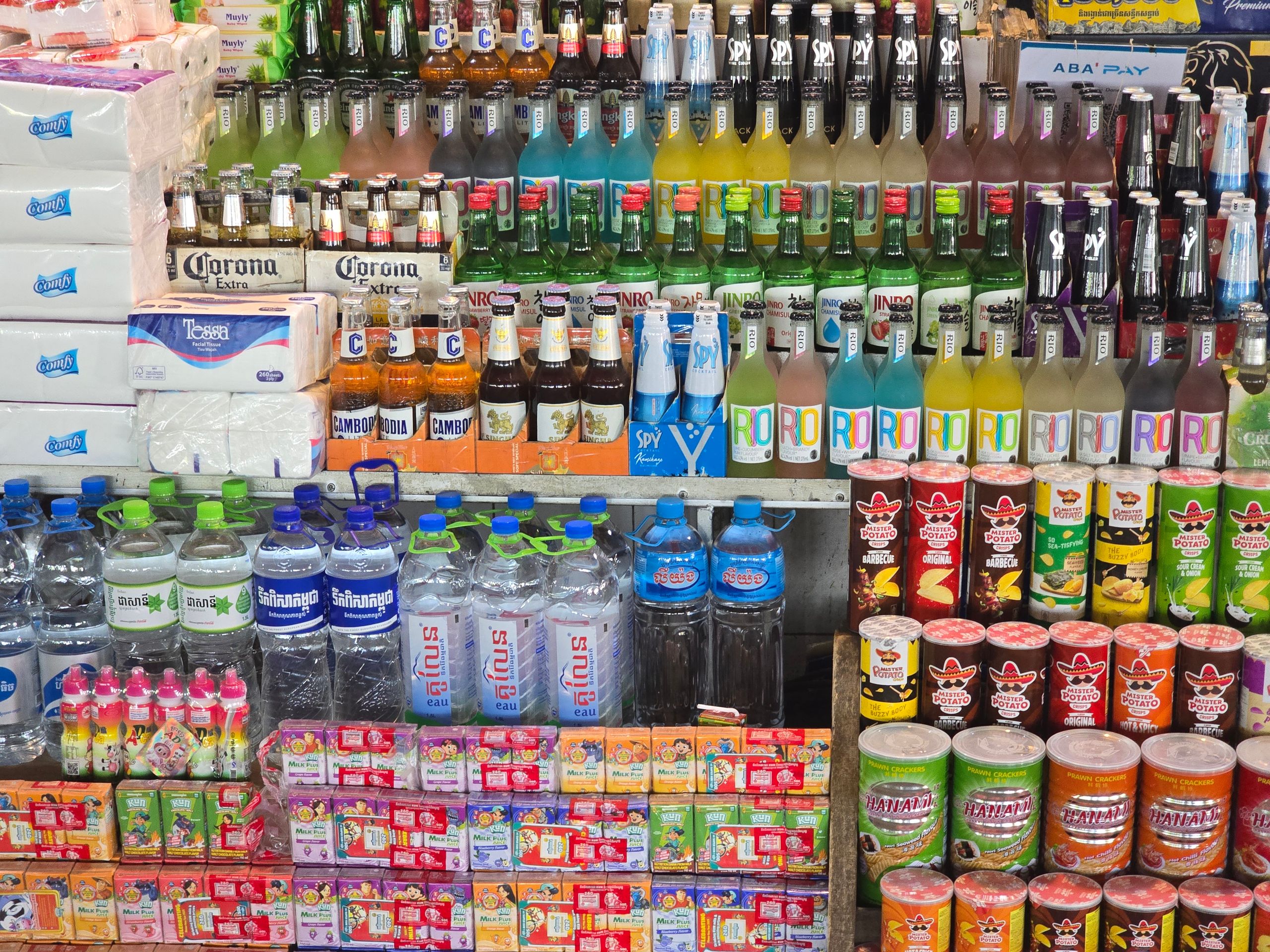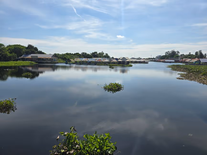 Wir besuchen ein beliebtes Wochenendausflugsziel: Koki Beach, ein paar Kilometer südlich Phnom Penh. Allein - wo ist der Beach? Der "Strand", das sind offene, luftige Hütten auf Stelzen links und rechts des Flusses, wo man sich im Schatten in Hängematten legen kann.