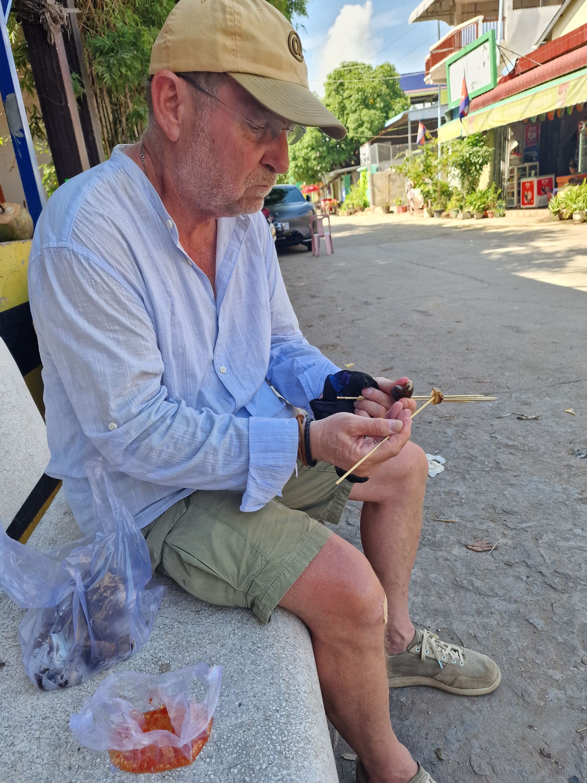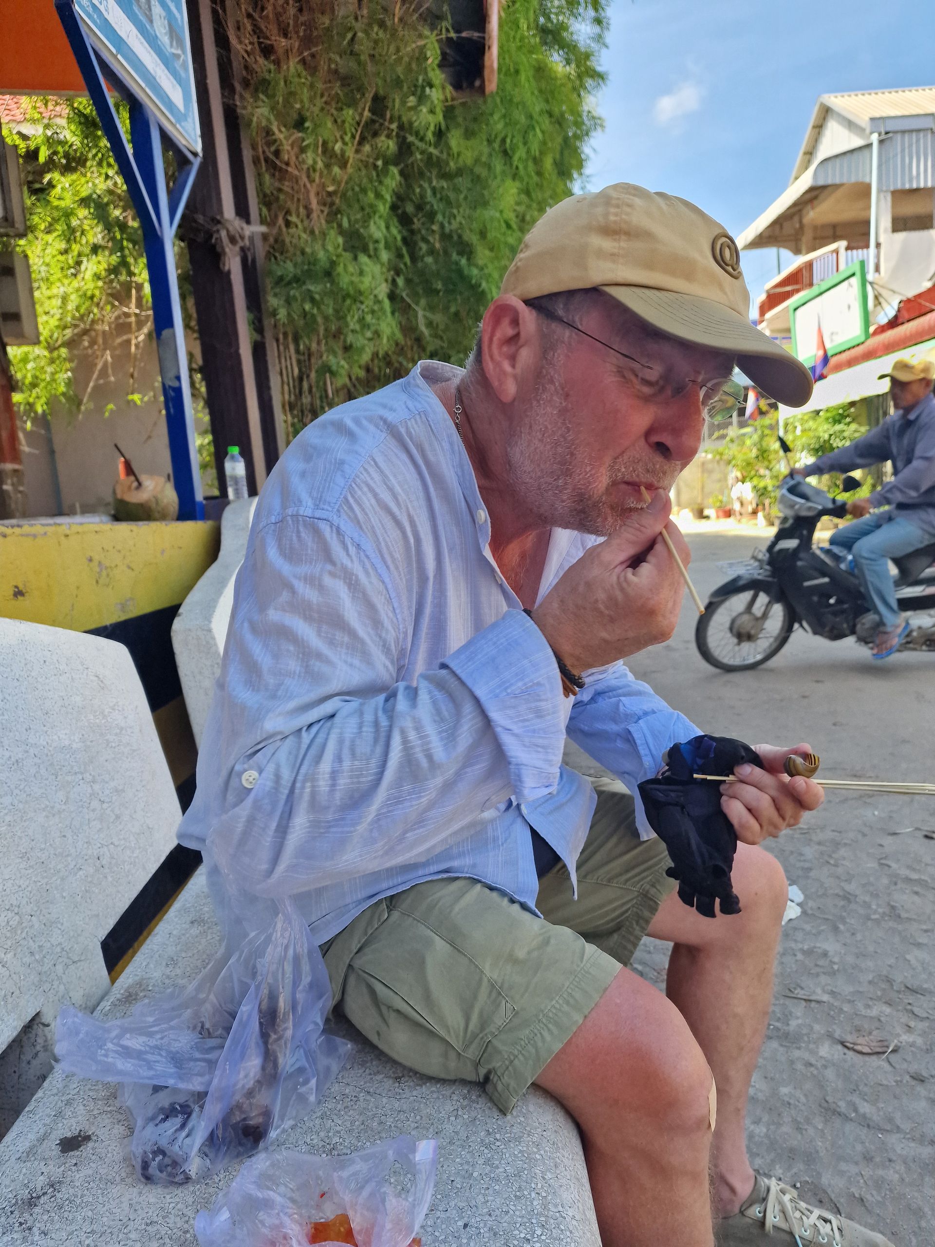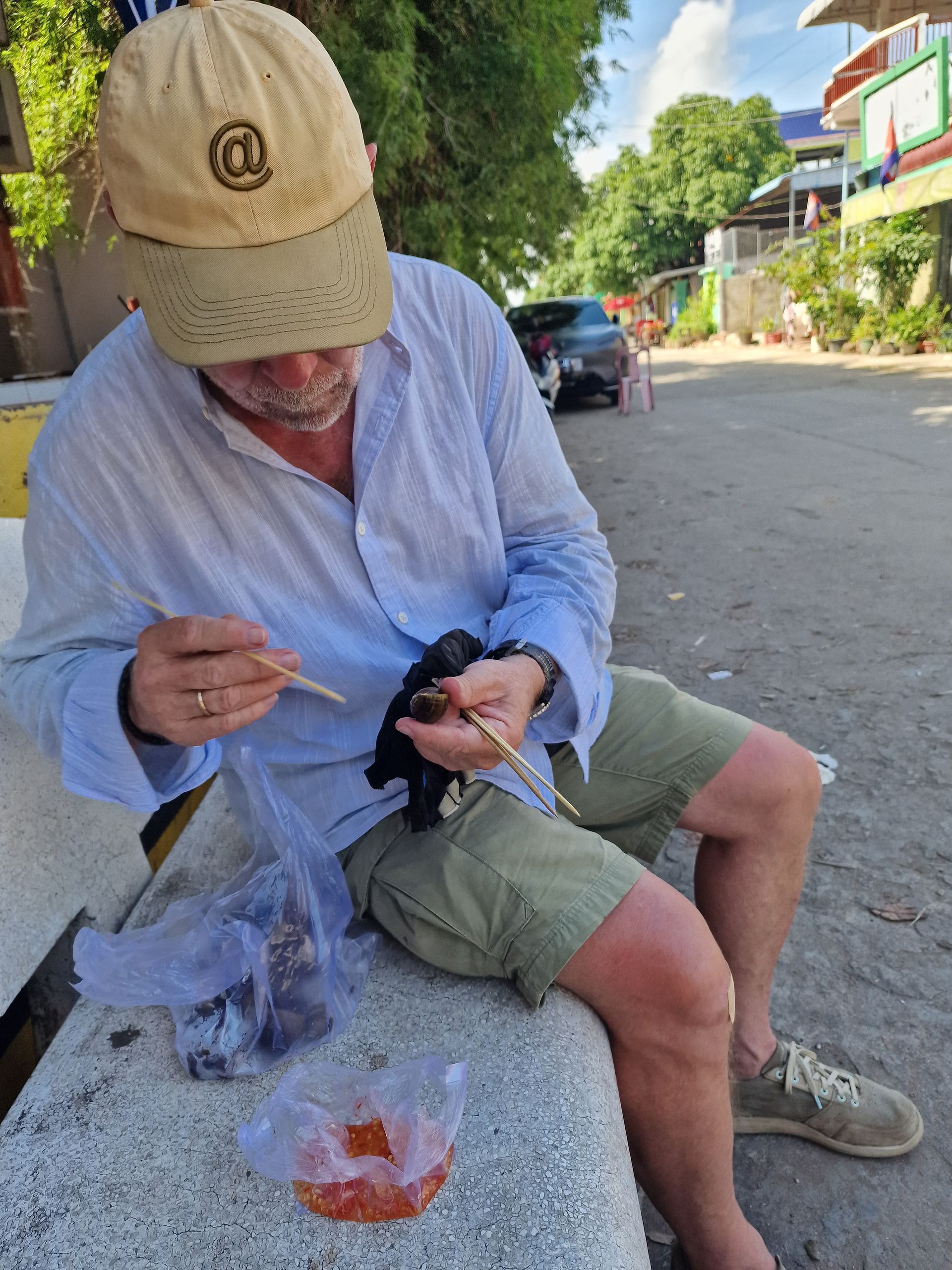 Wir sind früh am Morgen am Koki Beach. Der Markt bereitet sich vor auf den kommenden Ansturm aus der City vor. Ich versuche mich an Schnecken. Die Verkäuferin verliert ihren offensichtlichen Missmut nicht, obwohl ich mich redlich mühe, das Fleisch aus den Schneckenhäusern zu pulen. Anja ist für die Schnecken weniger zu begeistern.