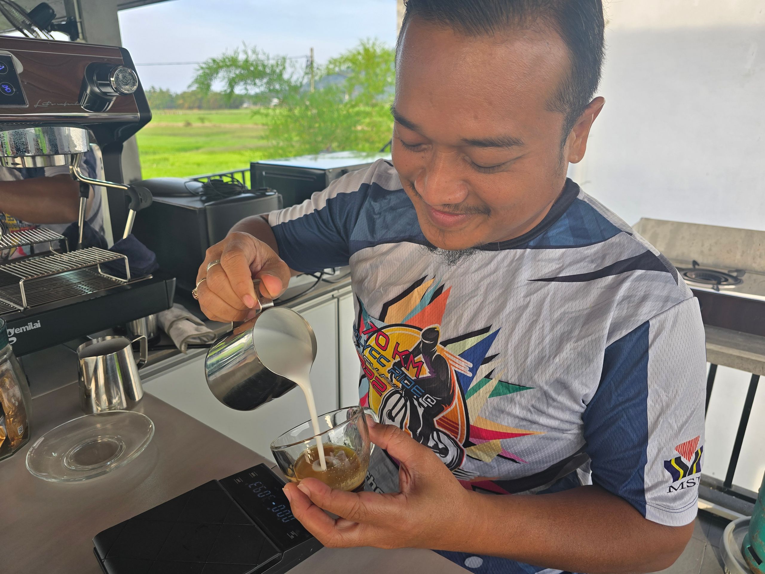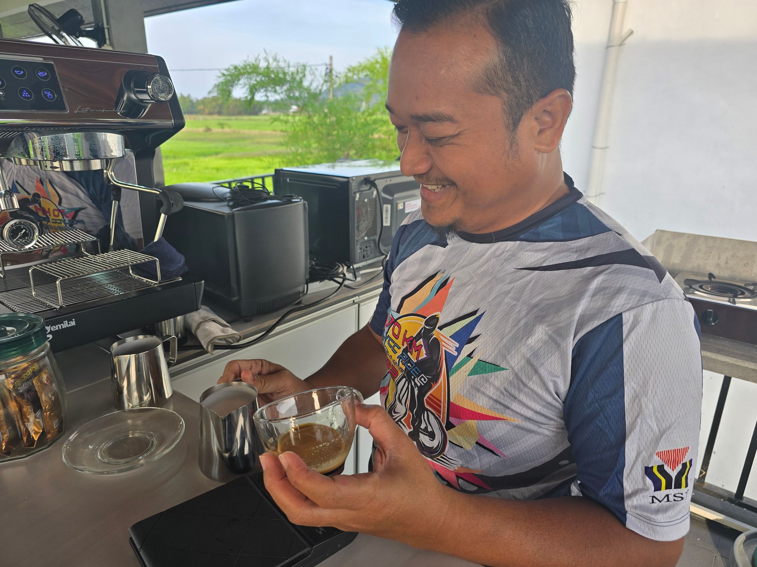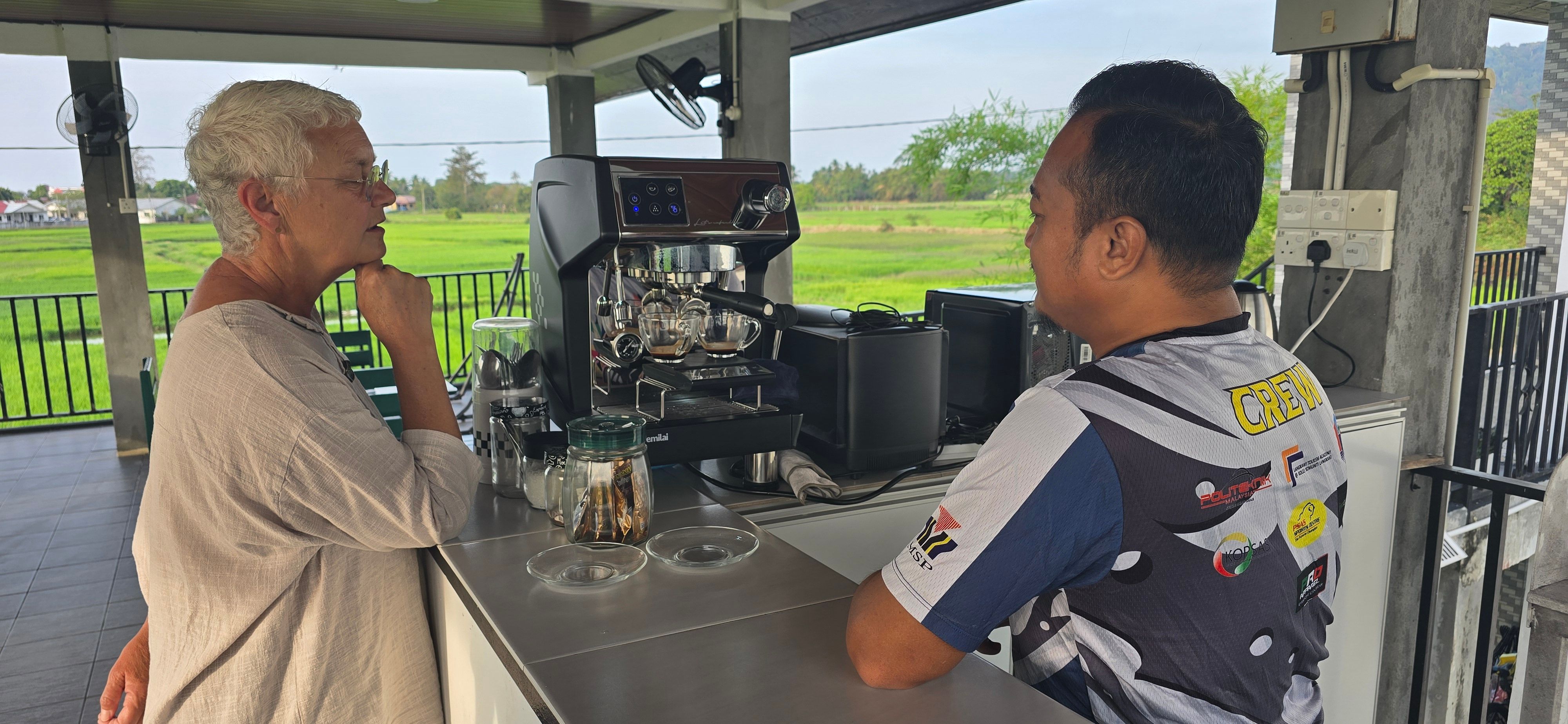 Da ich Strandurlaub möglichst meide, wo ich - im Gegensatz zu Anja - eh nur verbrenne, fällt die Wahl auf das LamanLeman, ein Homestay inmitten von Reisfeldern. Sulaiman und Julita heißen uns herzlich willkommen. Sulaiman beherrscht die Kunst der Zubereitung eines perfekten Cappuccino, er unterrichtet an der Tourismus-Akademie. Auch ein Scooter, die beste Art Langkawi zu erkunden, steht bei unserer Ankunft schon bereit.
