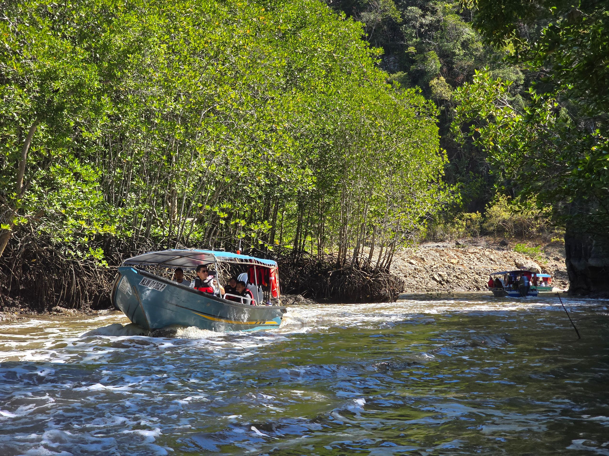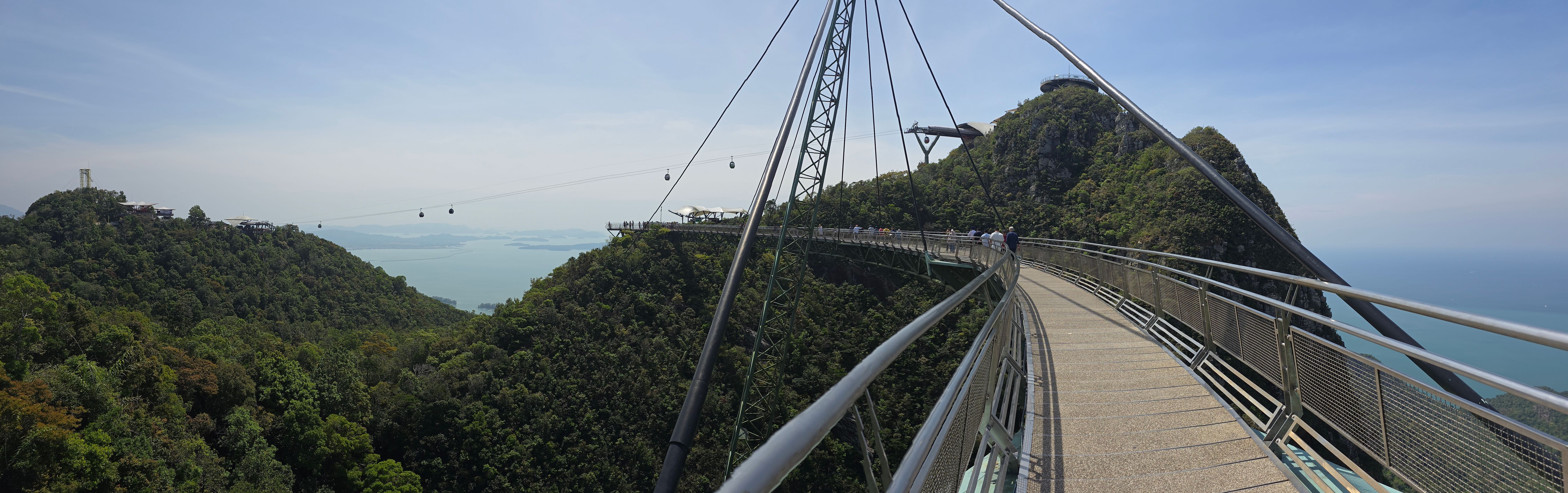 In der folgenden Woche entdecken wir Langkawi auf ausgedehnten Touren, die uns abwechselnd mal zu einem der touristischen Hotspots, mal zu einem der Strände rund um die Insel führen. Highlight im Westen der Insel ist die Sky-Cab-Seilbahn hinauf zum Eagle's Nest Skywalk und zur Langkawi Sky Bridge inmitten eines Naturparks. Im Osten Langkawis befindet sich der Kilim Geoforest Park: Karstfelsen und Mangroven. Der höchste Berg der Insel ist der Gunung Raya, den wir glücklicherweise nicht zu Fuß besteigen müssen.