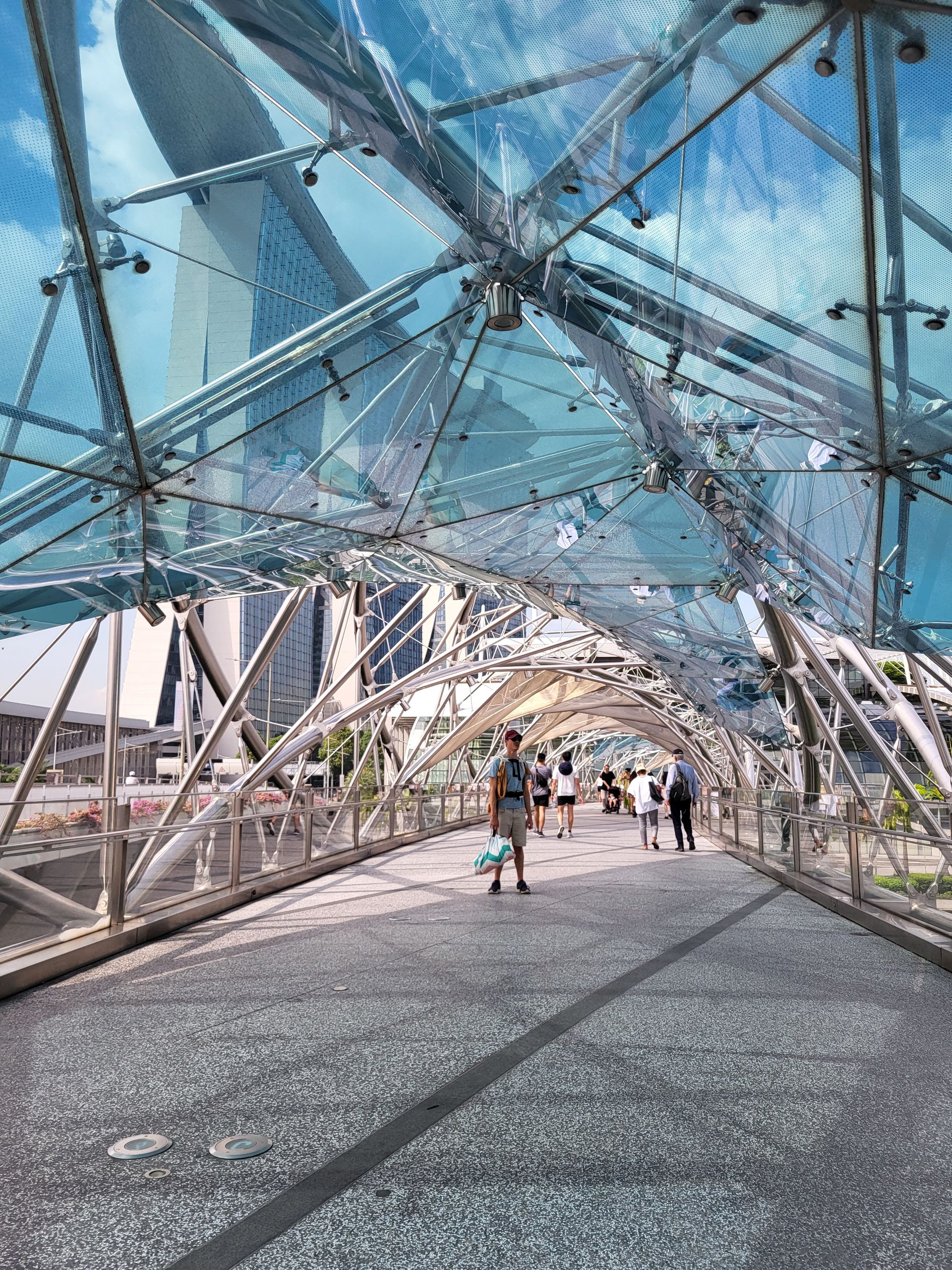 Aber zumindest der Weg über die Helix Bridge bot uns einen schönen ersten Blick auf das Zentrum.