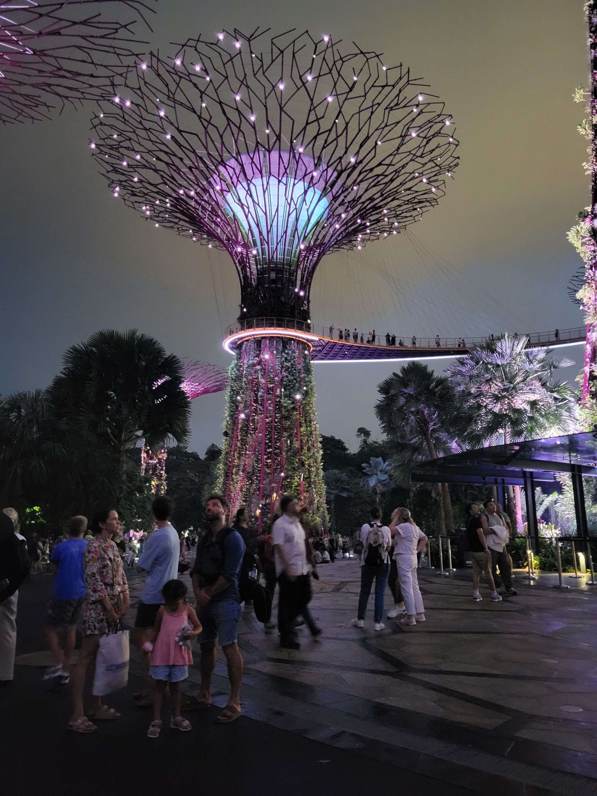 Abends waren wir noch einmal in den Gardens by the Bay, aktuell findet nämlich jeden Abend eine 15-minütige Musik- und Lichtershow bei den Supertrees statt, aktuell zum Titel "Enchanted Forest", also verzauberter Wald. Die ersten 5 Minuten fanden wir auch richtig super, Baby M leider nur zum Teil. Während schöne und leichte Musik gespielt wurde, schaute sie sich mit großen Augen und offenem Mund um, sobald es etwas düsterer wurde, fing sie an zu weinen. Die Höhle des Berglöwen war dann leider der Endgegner..