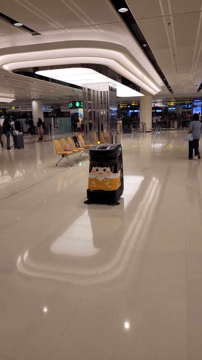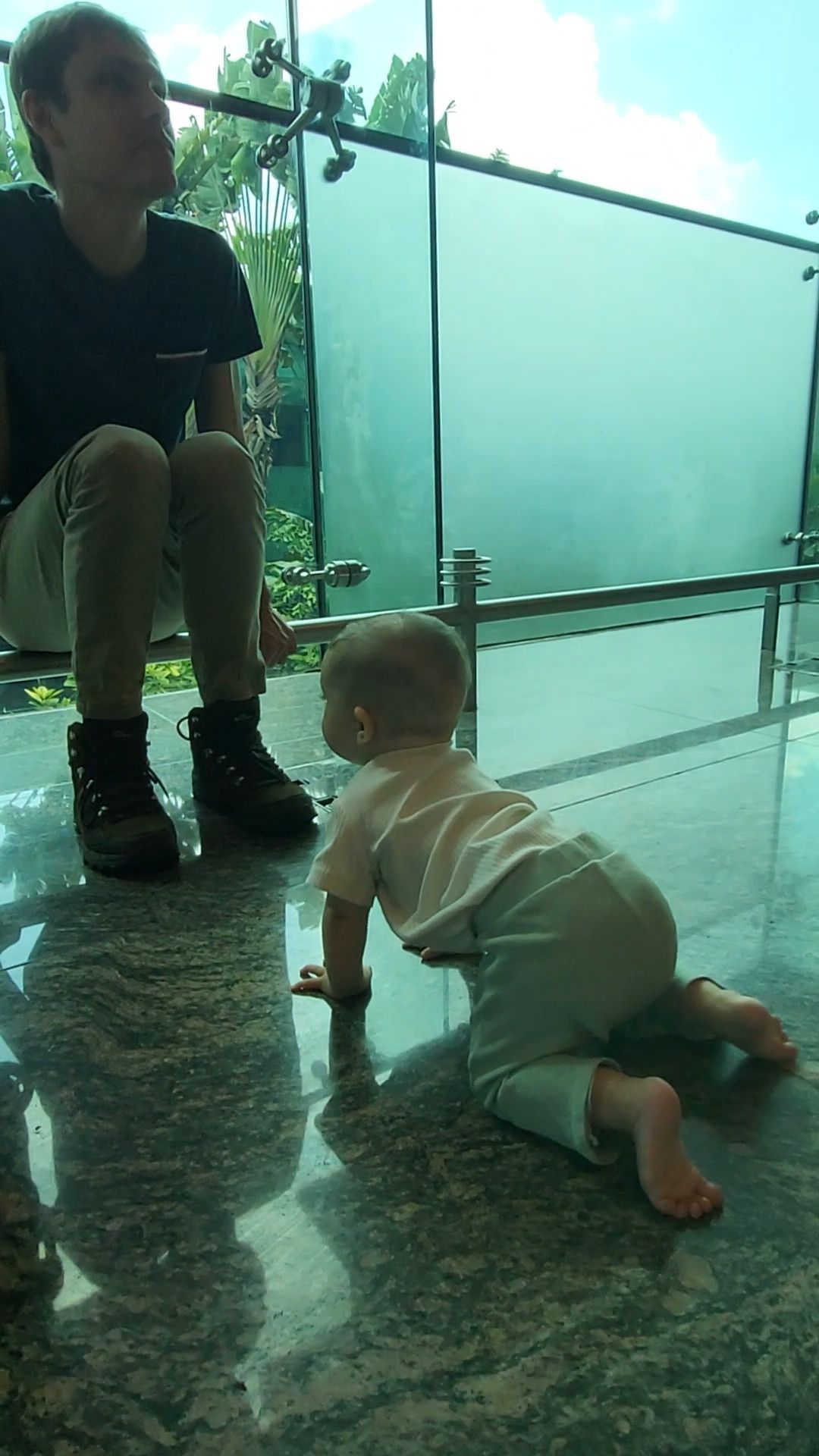 Und dann war der kurze Stoppover in Singapur schon vorüber und wir fuhren zum Flughafen. Da überraschte uns Baby M mit ihrem neuesten Kunststück, man kann nun ein paar Schritte krabbeln, bevor man sich wieder auf den Bauch legt und weiterrobbt. Jetzt haben wir also ein Krabbelkind