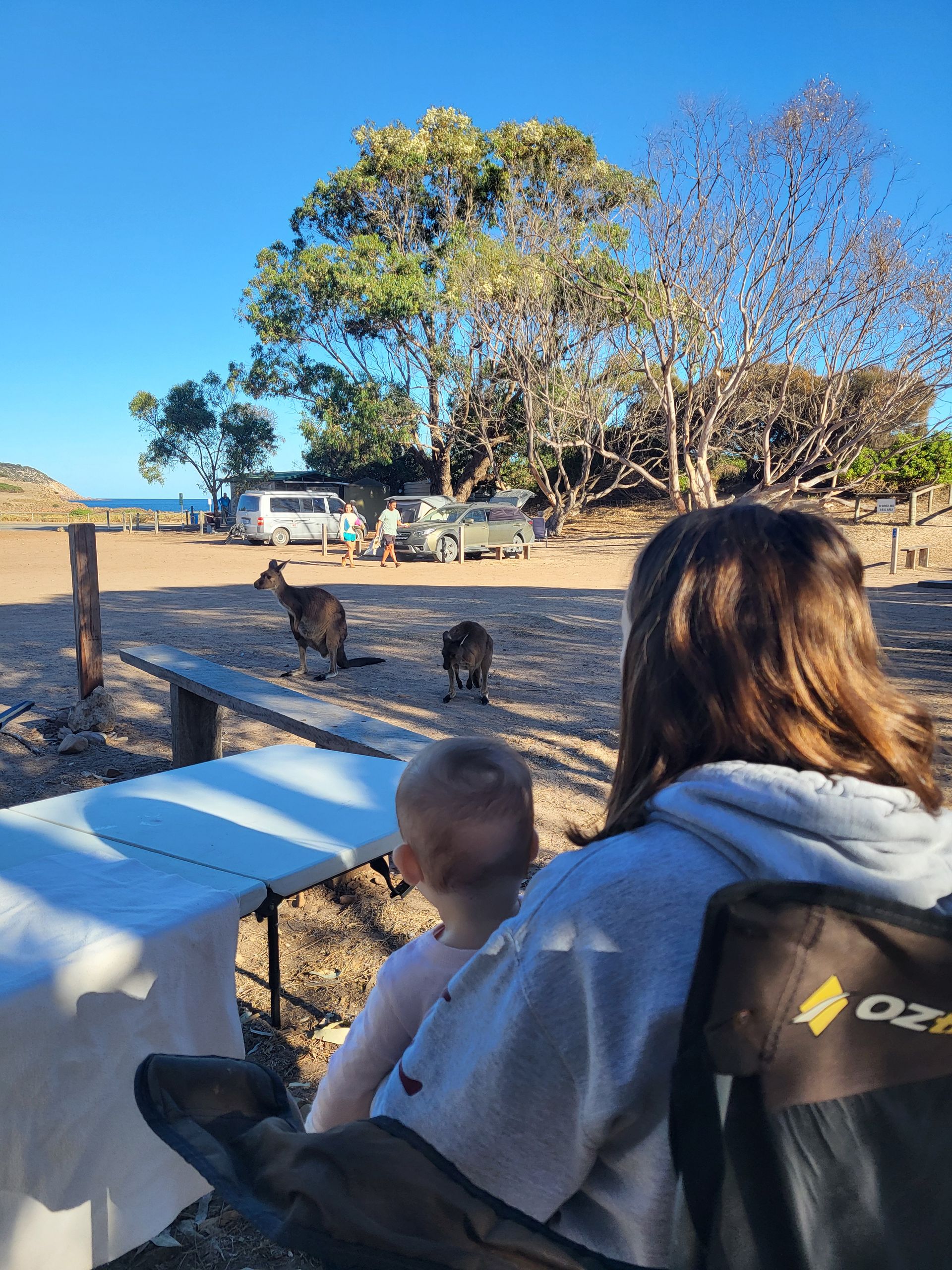 Jedenfalls haben wir uns auf diesen Parkplatz gestellt um da den Rest der Nacht zu verbringen, aber so wirklich gut geachlafen, haben wir da nicht. Früh um 7 sind wir dann an den Strand und versuchten da noch einmal einzudösen, allerdings erfolgslos. Wir sind dann wieder in die Küche und haben unsere Handys geladen (ein weiterer Vorteil) und uns etwas zu essen gemacht.