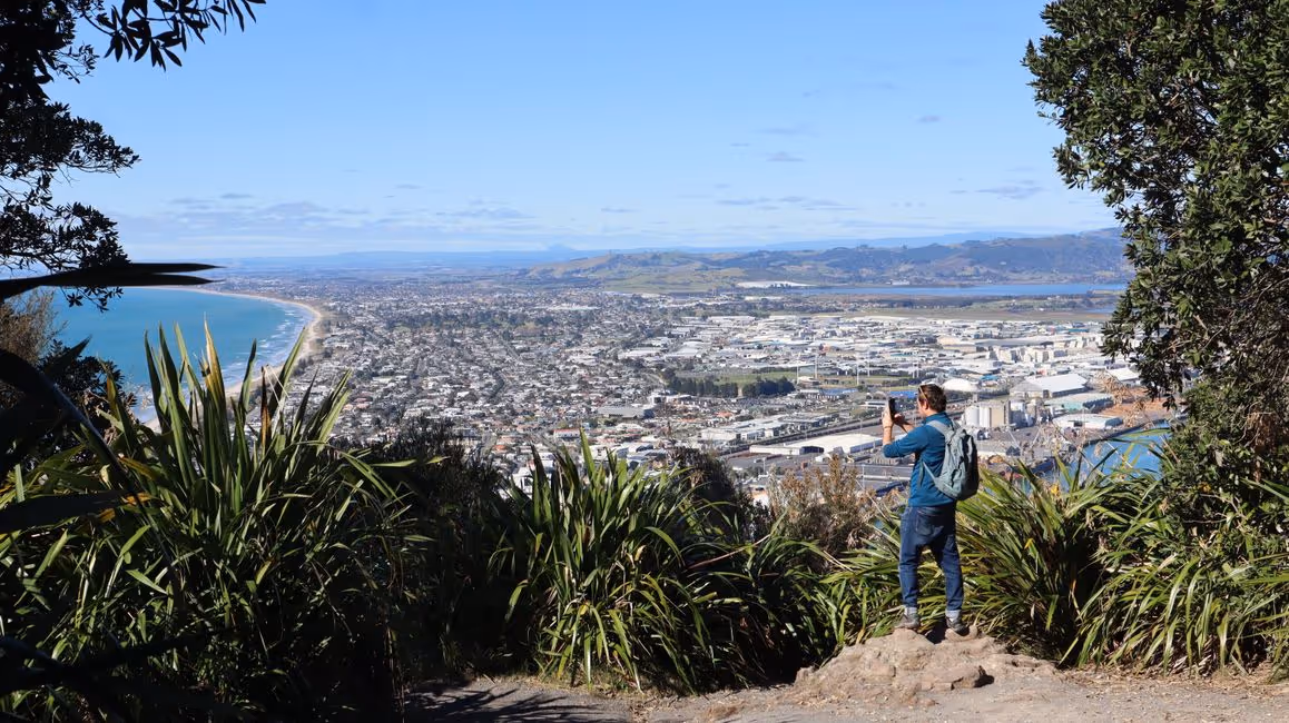 Wir gönnten uns erstmal ein gutes Frühstück in einem kleinen Café, bevor wir zum Mount Maunganui fuhren. Dort machten wir eine kleine Wanderung um und auf den markanten Berg. Ein kleines Highlight war die Robbe, die Julian am Fuße einer Statue entdecken konnte. Die Aussicht vom Berg selber war ganz schön, haute uns aber nicht aus den Socken.